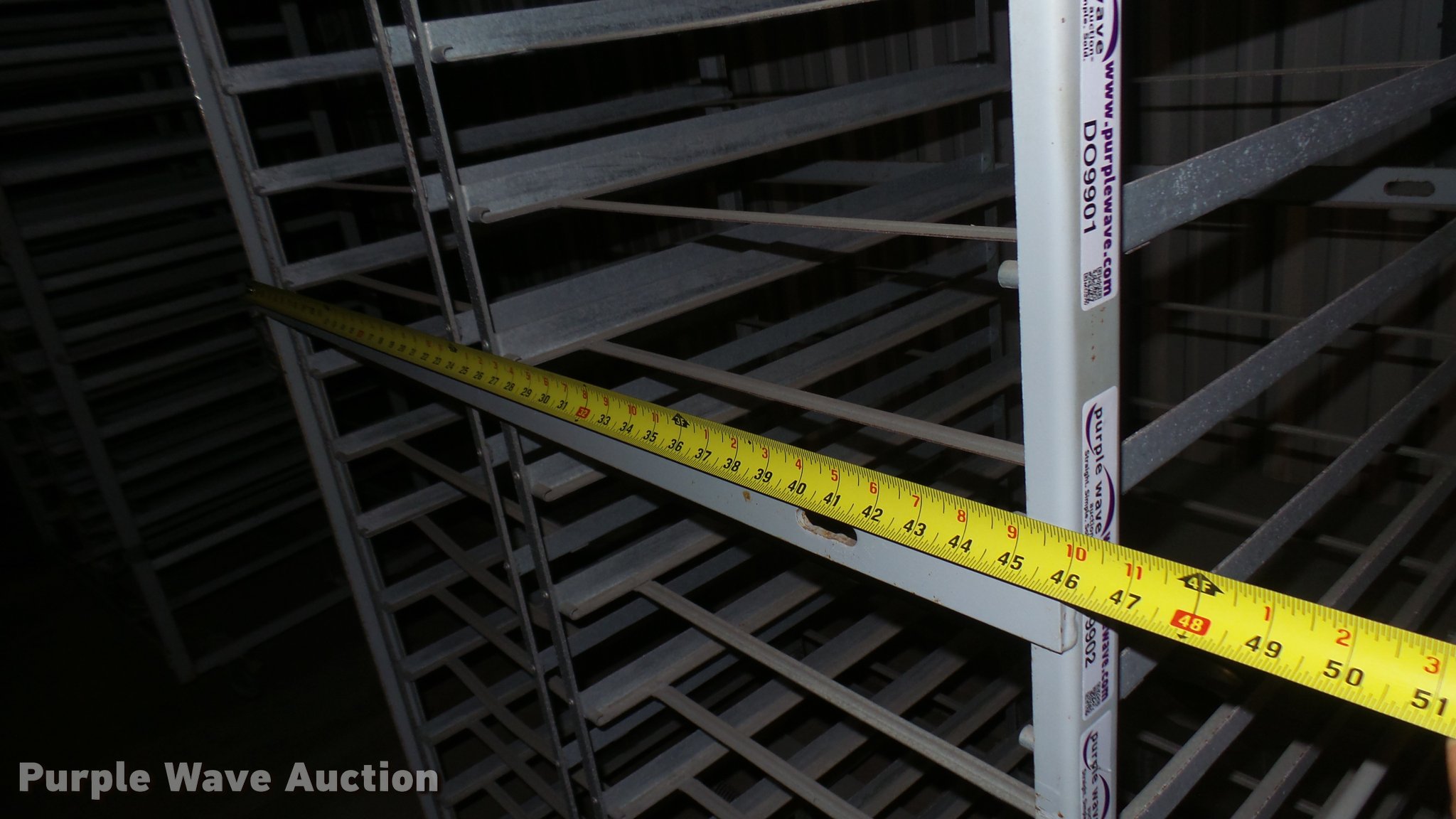 Purple Wave is selling a used Livestock Equip. in Kansas. This item is a (4) metal hatchery egg racks with the following: 46" x 32" x 82"H, Wheels