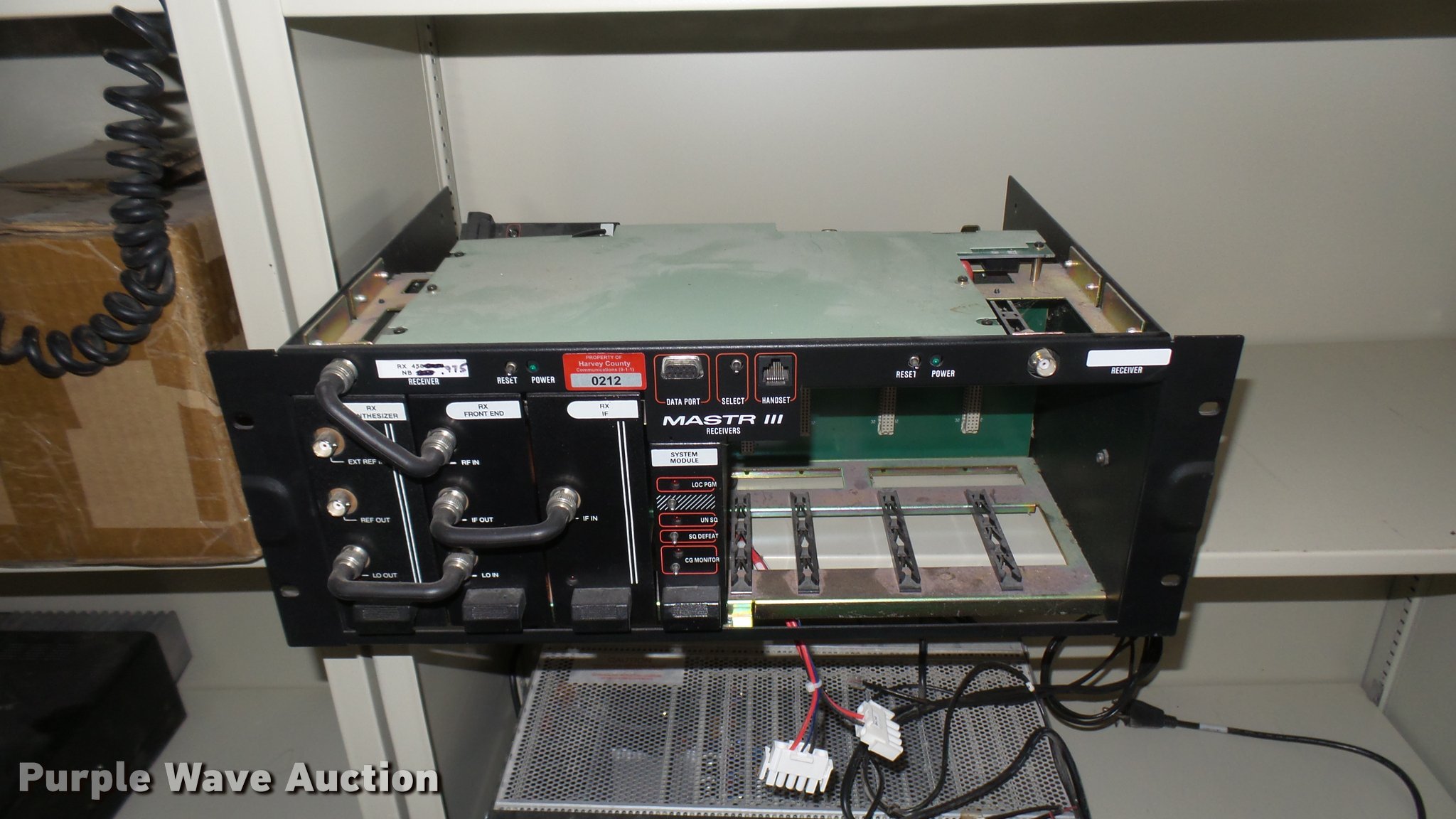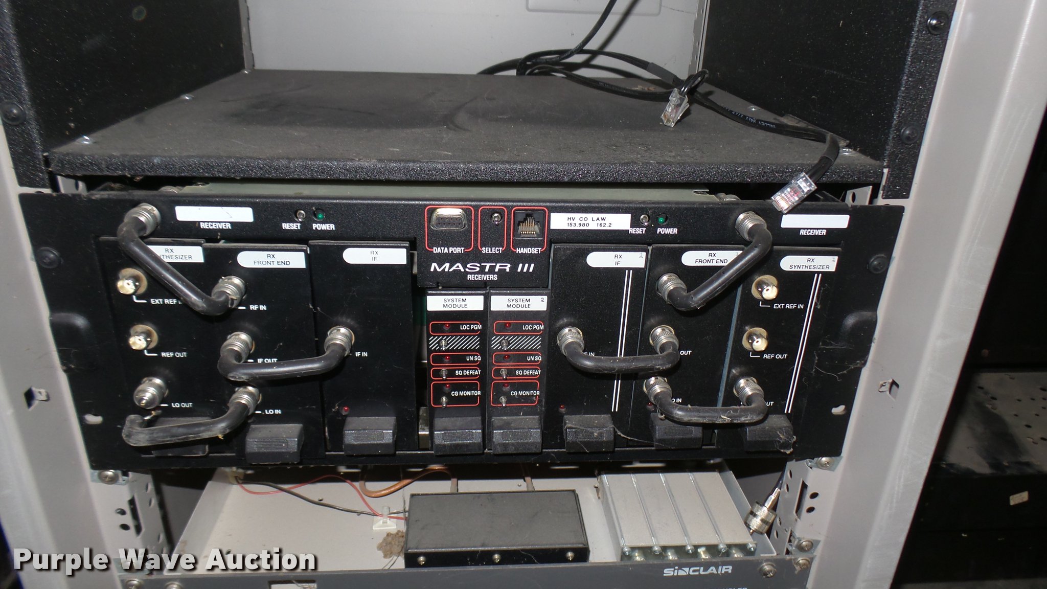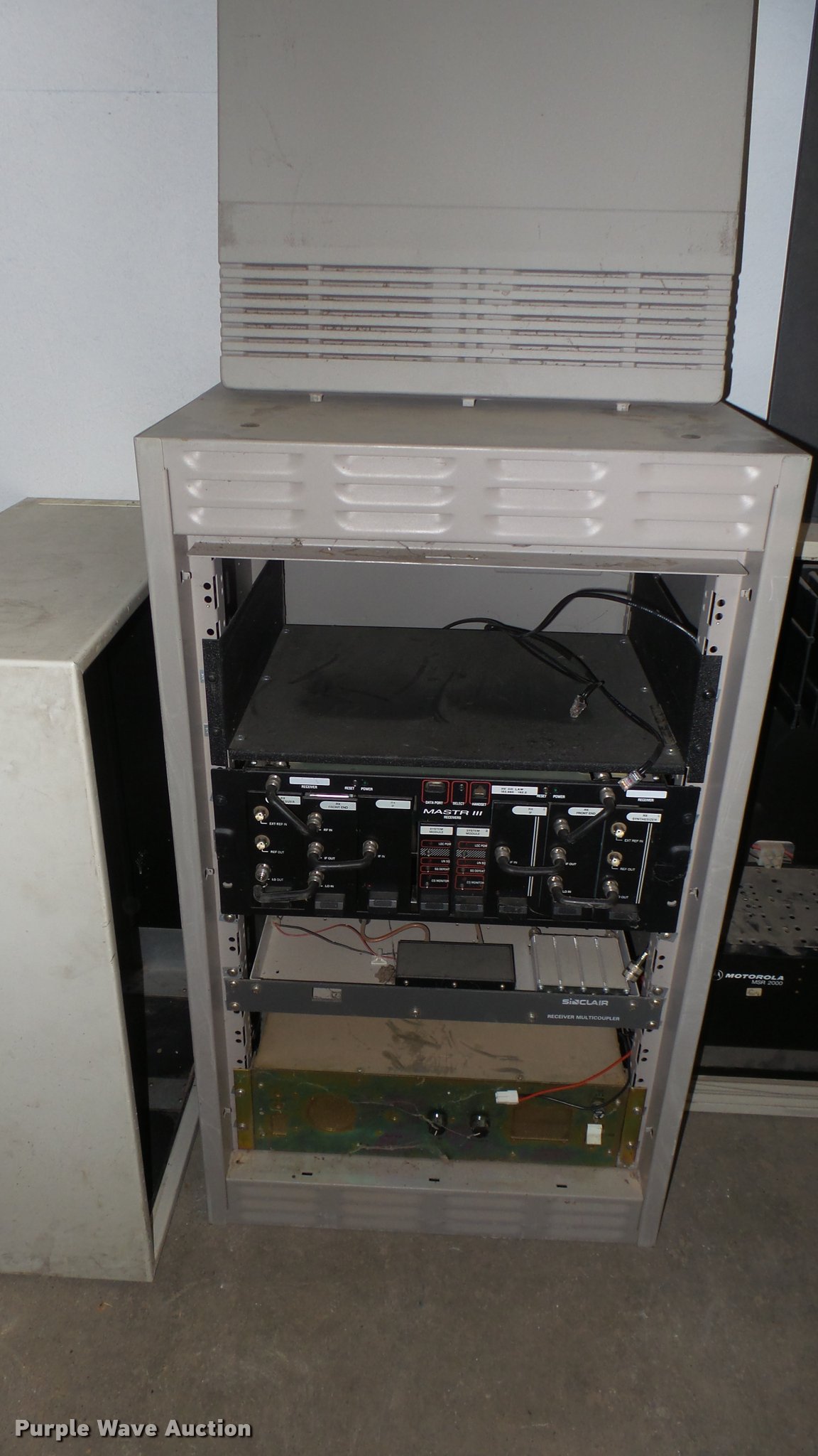 Purple Wave is selling a used Electronics in Kansas. This item is a Communication equipment with the following: MASTR3 remote receiver in wall mount cabinet, Empty Motorola small cabinet, (2) MASTR3 dual remote receivers in cabinets with Sinclair VHF multicoupler, MSR2000 VHF Repeater, MASTR3 100w Repeater with Voting Comparator, 1 Receiver card, not in rack