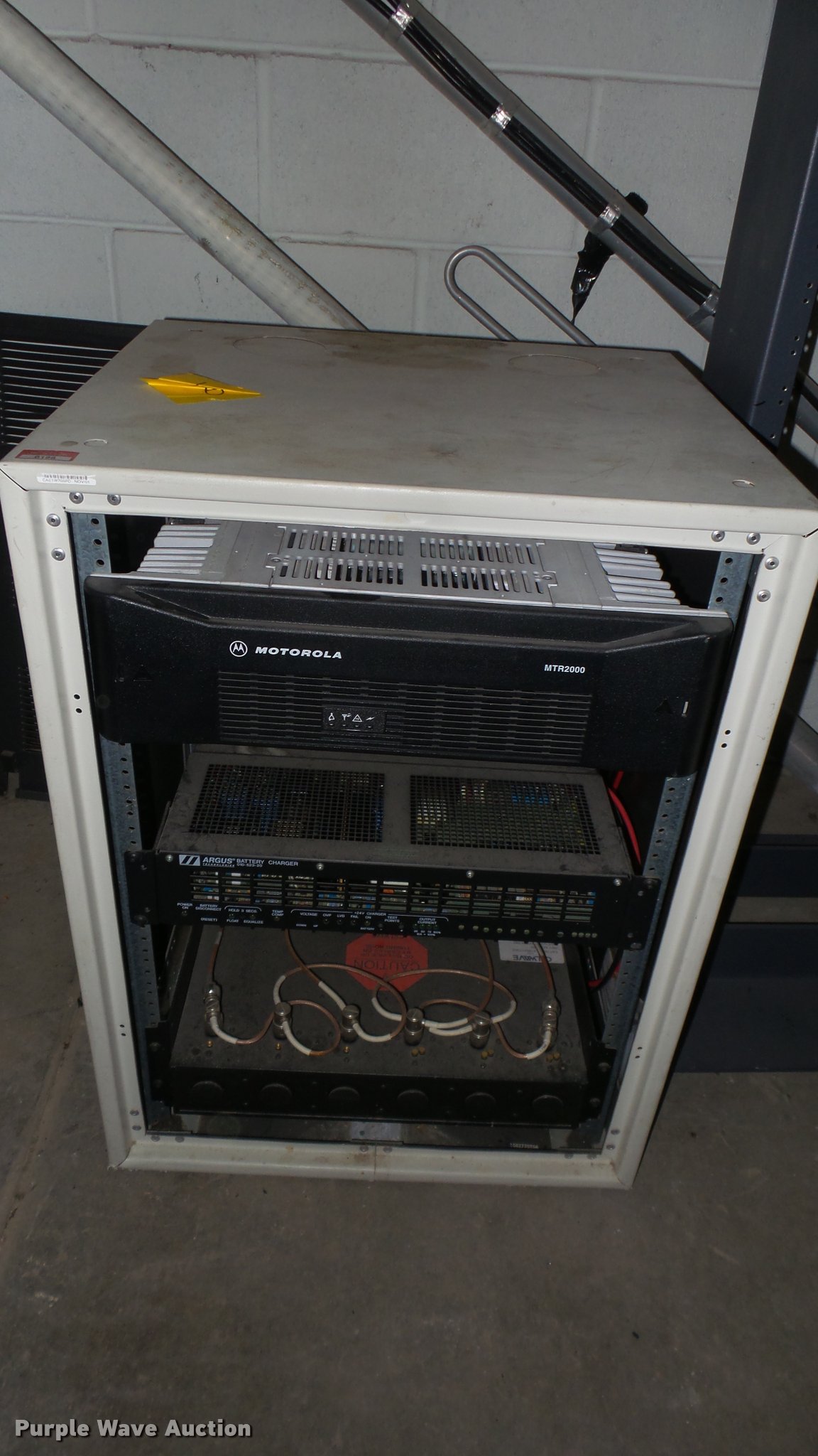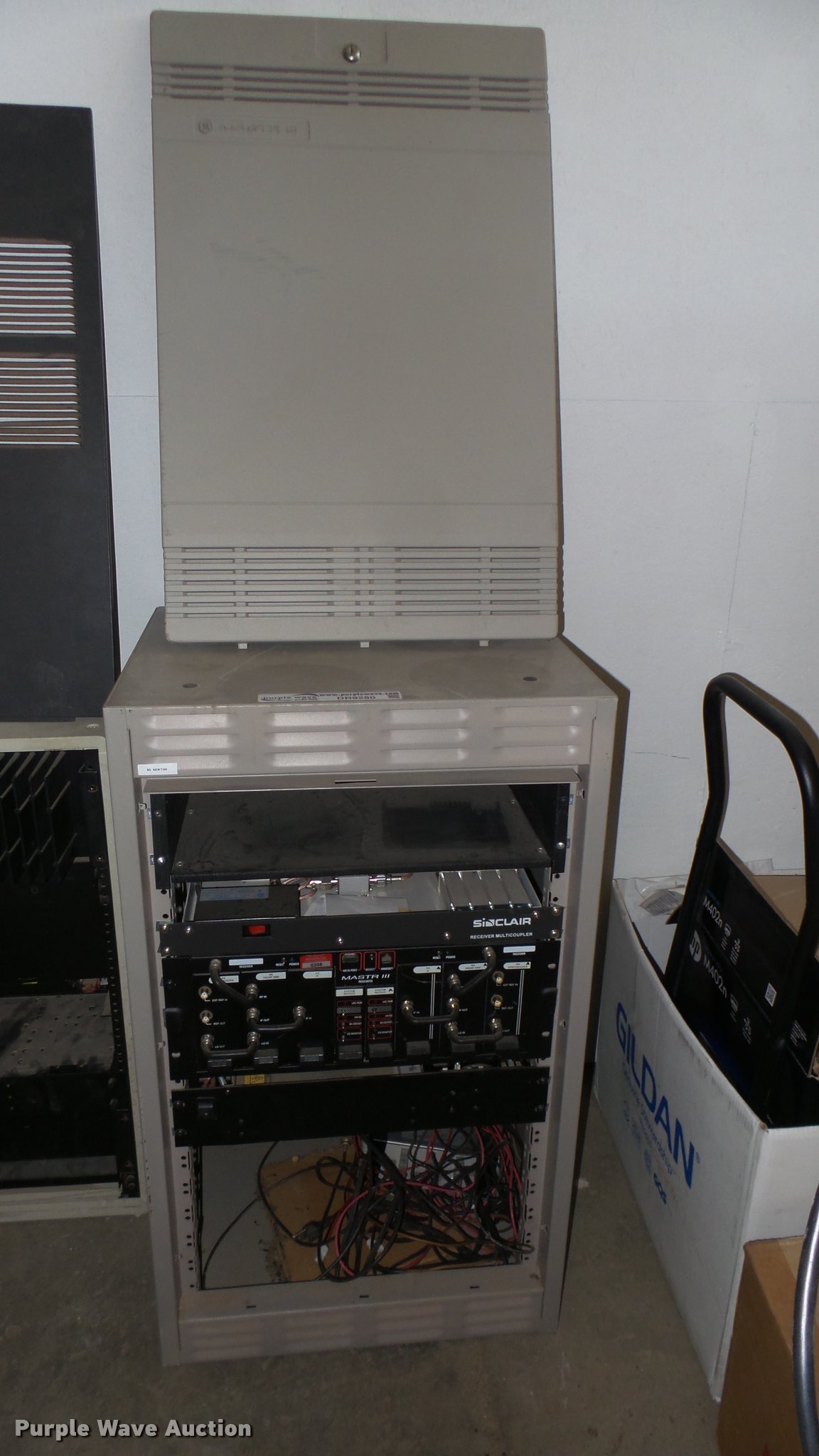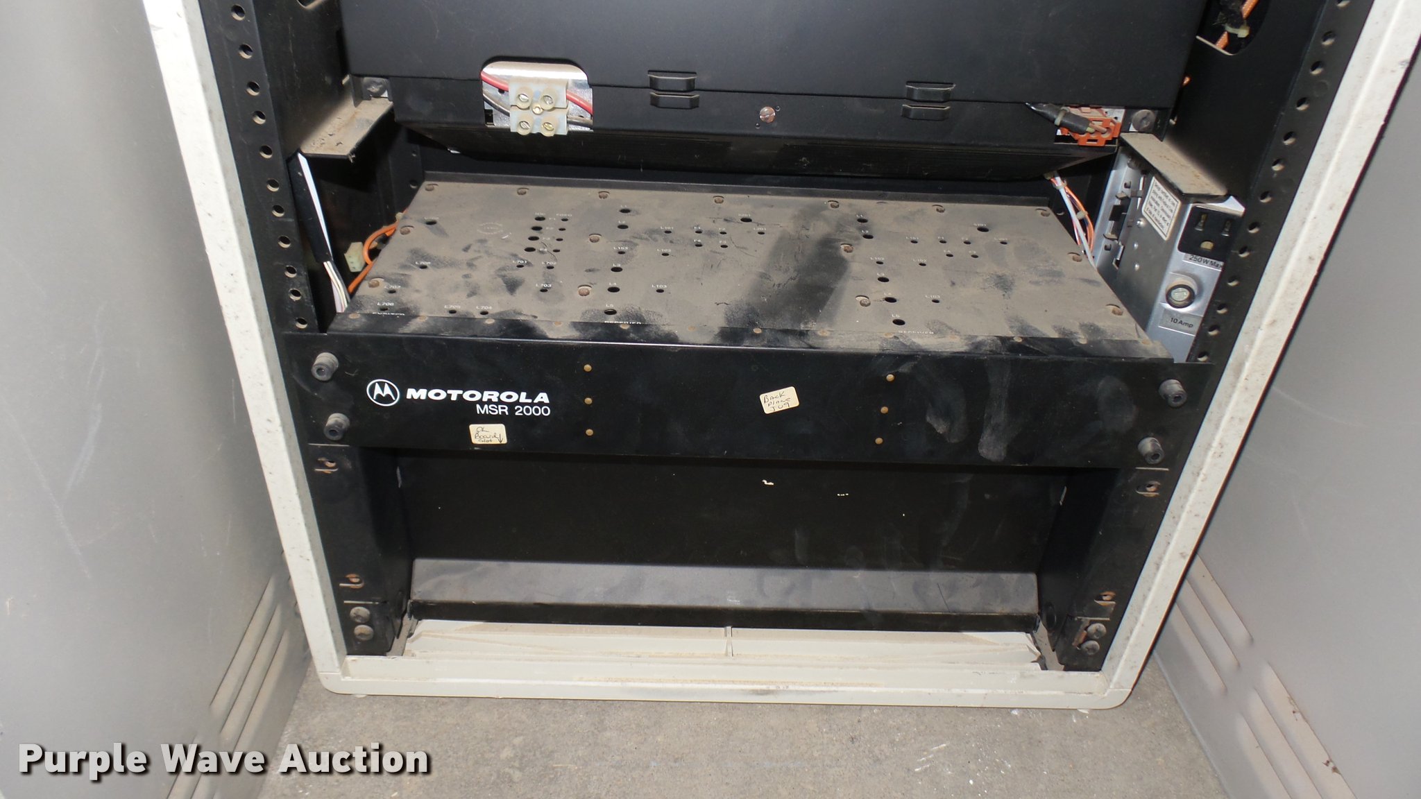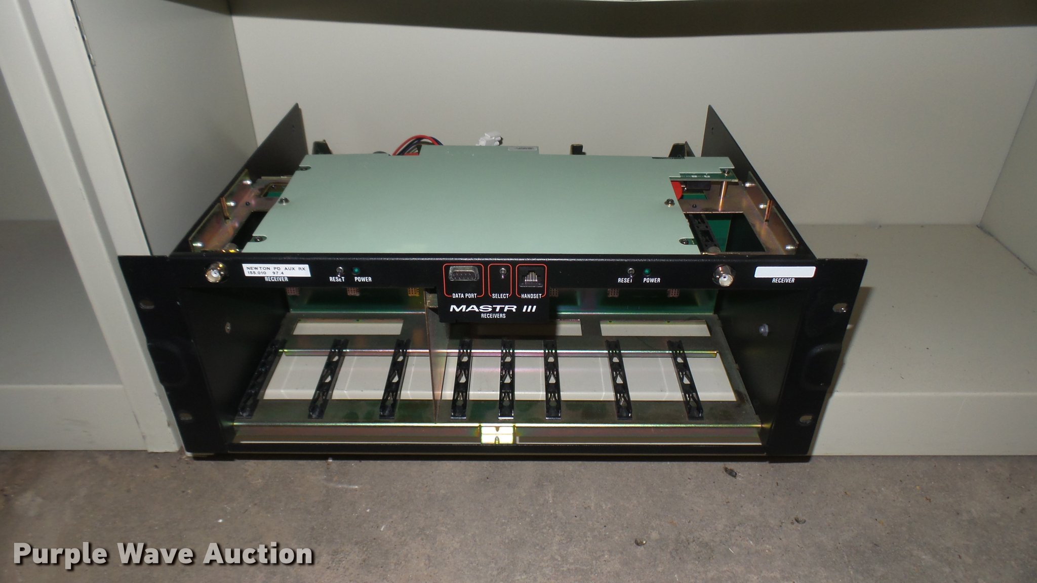 Purple Wave is selling a used Electronics in Kansas. This item is a Communication equipment with the following: MASTR3 remote receiver in wall mount cabinet, Empty Motorola small cabinet, (2) MASTR3 dual remote receivers in cabinets with Sinclair VHF multicoupler, MSR2000 VHF Repeater, MASTR3 100w Repeater with Voting Comparator, 1 Receiver card, not in rack