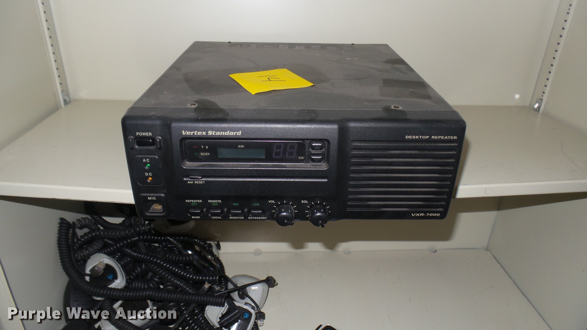 Communication equipment. MASTR3 remote receiver in wall mount cabinet, Empty Motorola small cabinet, (2) MASTR3 dual remote receivers in cabinets with Sinclair VHF multicoupler, MSR2000 VHF Repeater, MASTR3 100w Repeater with Voting Comparator, 1 Receiver card, not in rack. or cabinet (2) VHF Duplexers, Vertex VXR7000 16 channel 25w repeater, Motorola mobile microphones. Harvey County Communications. Newton, KS 67114