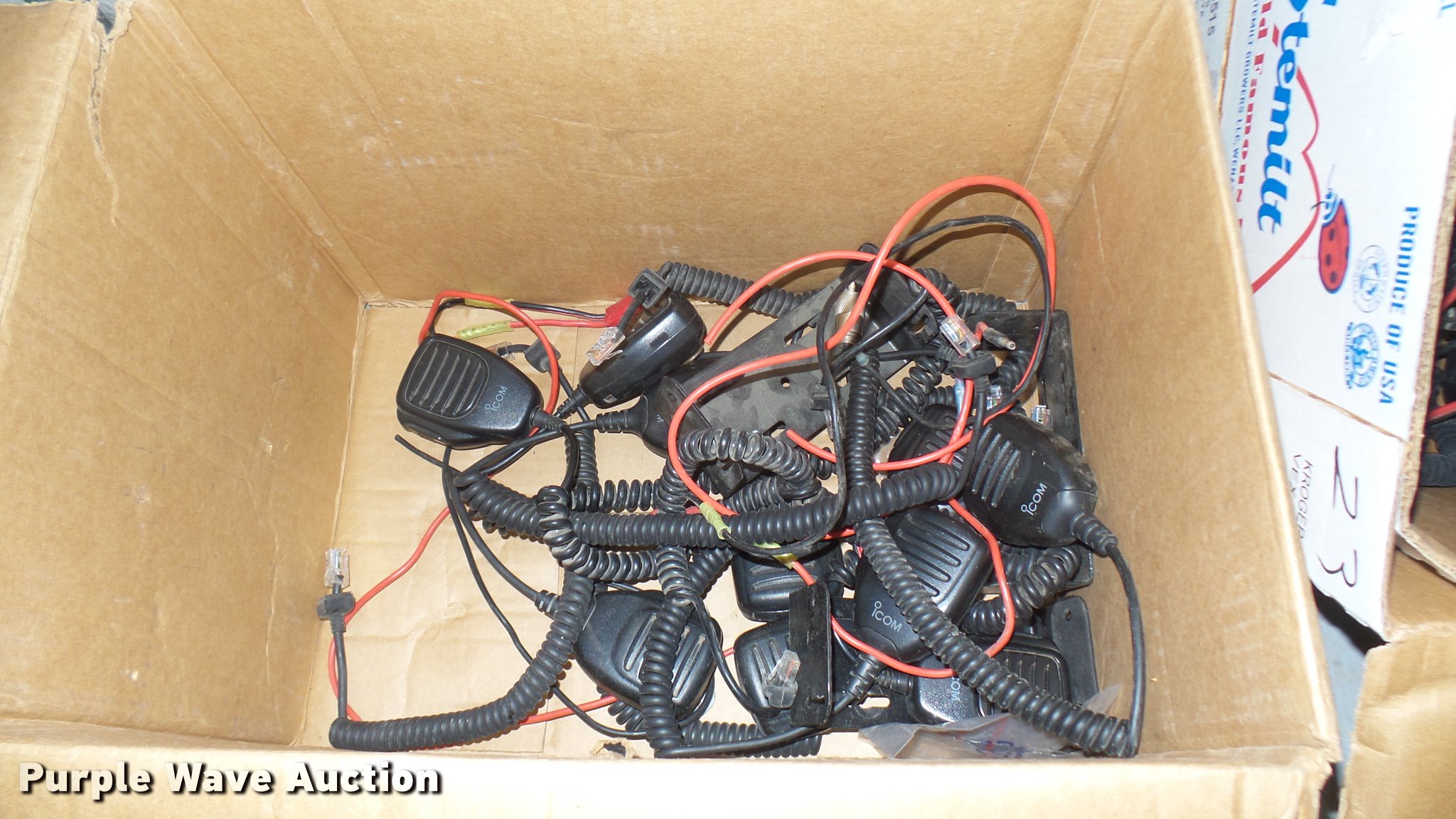 Communication equipment. Assorted Icom F121S, F320S and F5021; Motorola Maxtrac and M1225 Mobiles, Assorted mics and brackets and remote interface boxes. Harvey County Communications. Newton, KS 67114