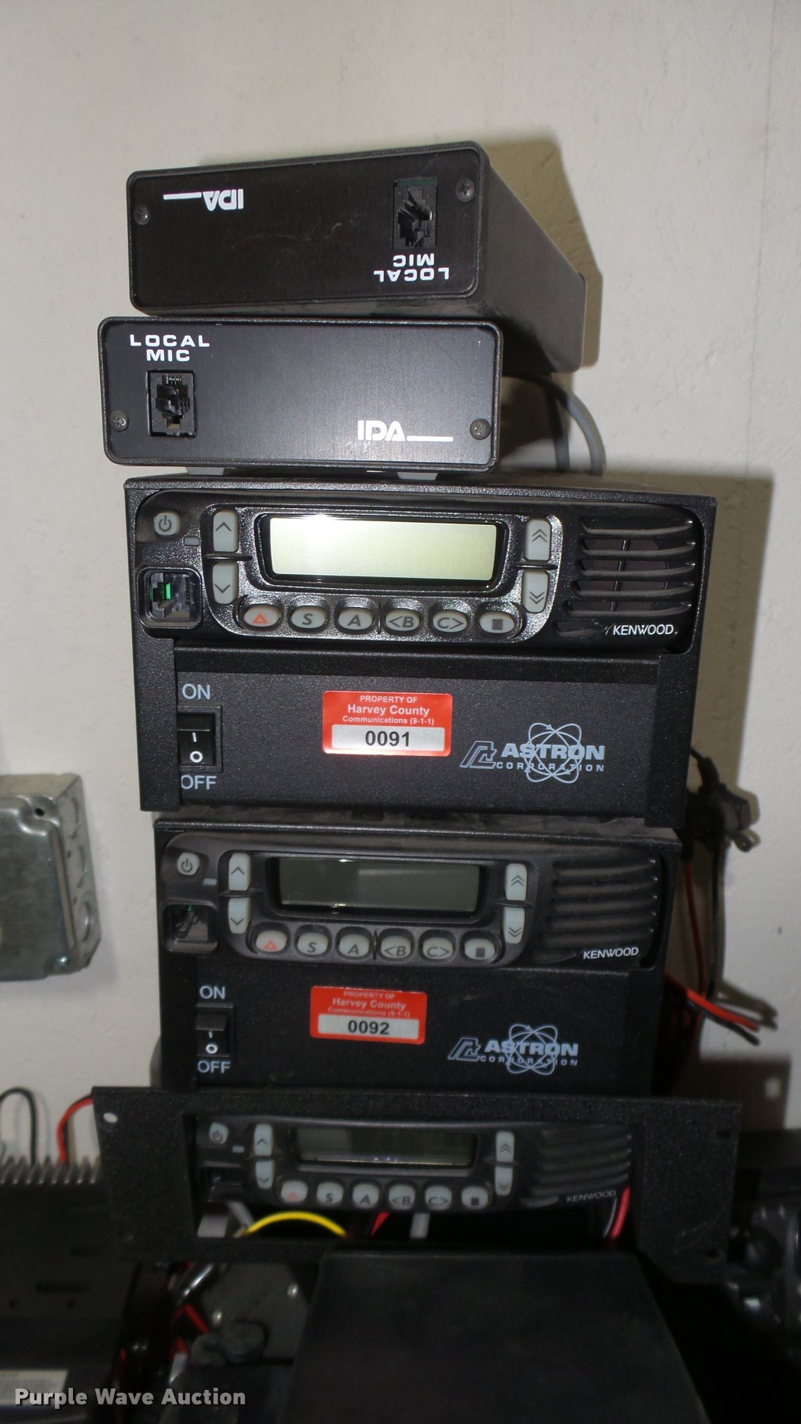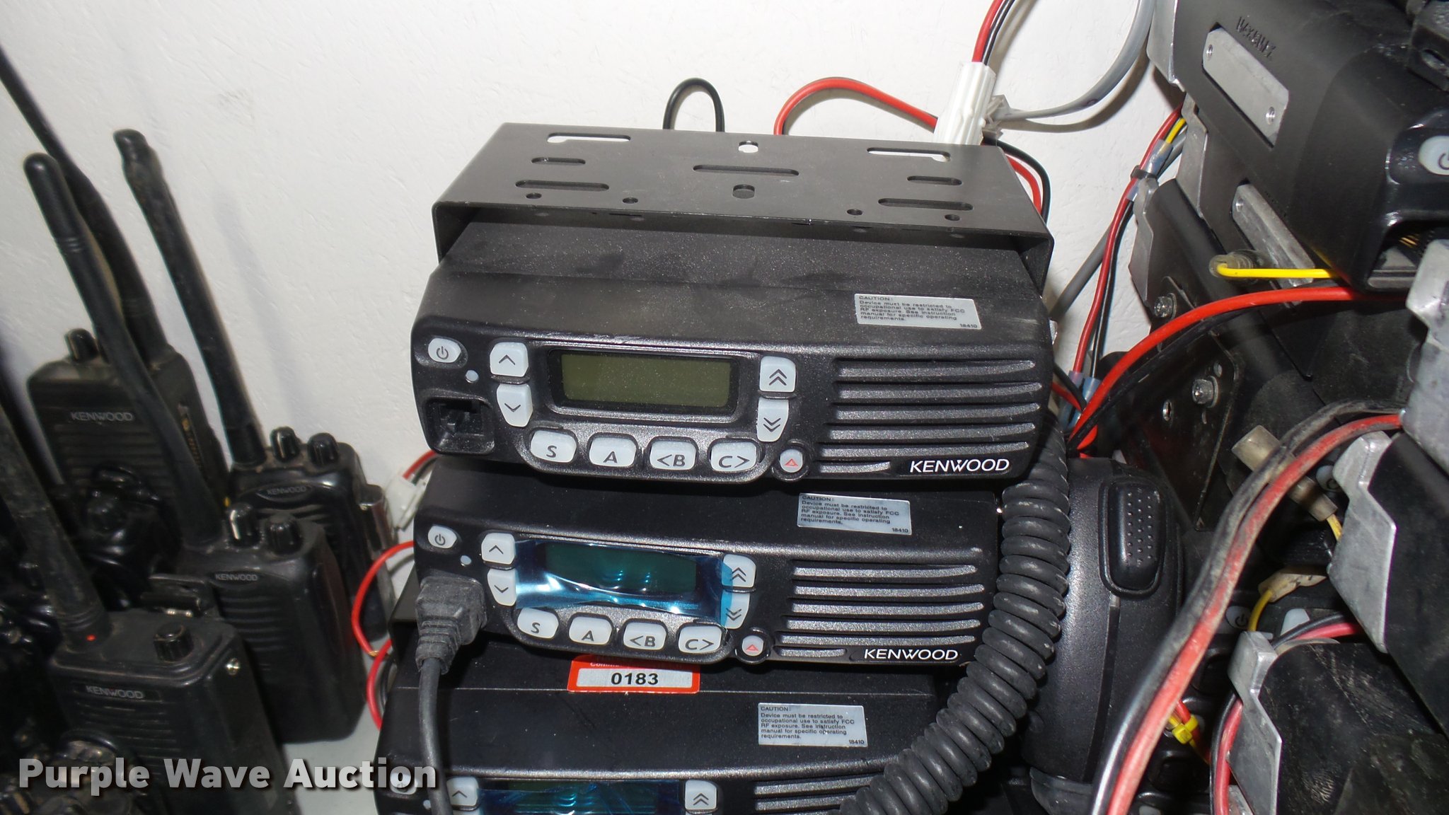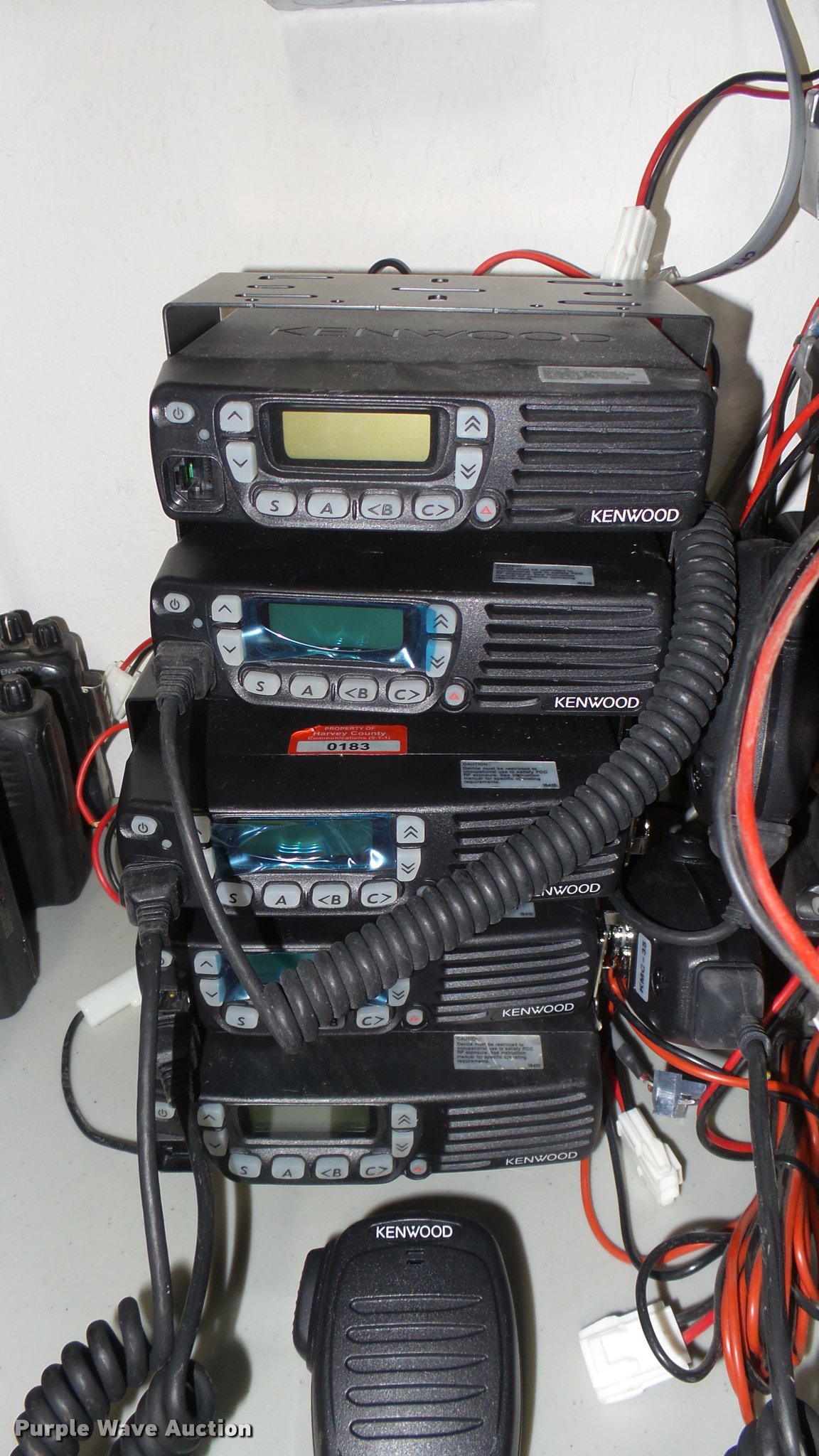 Purple Wave is selling a used Electronics in Kansas. This item is a Communication equipment with the following: Assorted Kenwood TK7160 and TK-7180 mobiles, Some with mics, power cables, and remote interface boxes