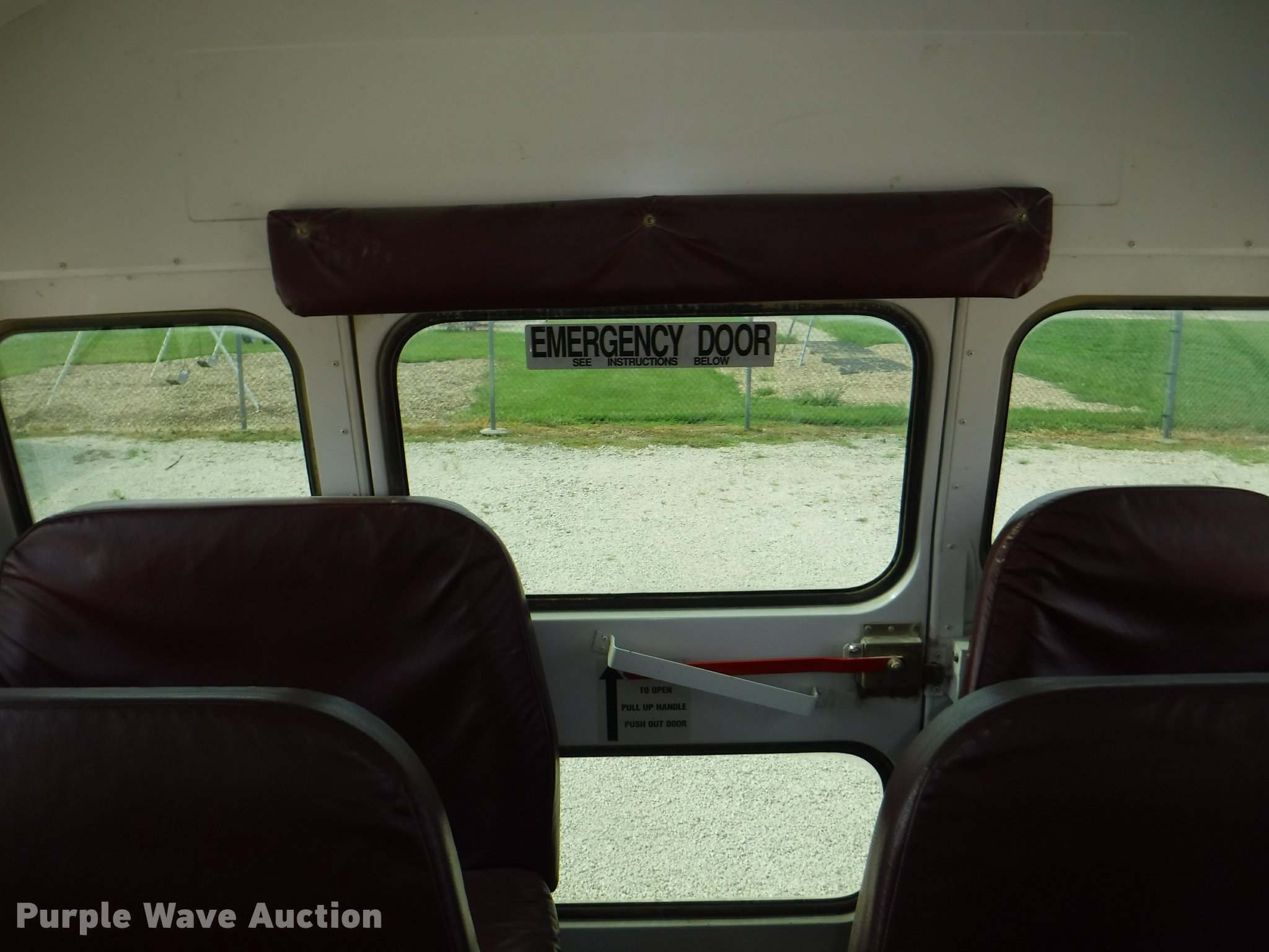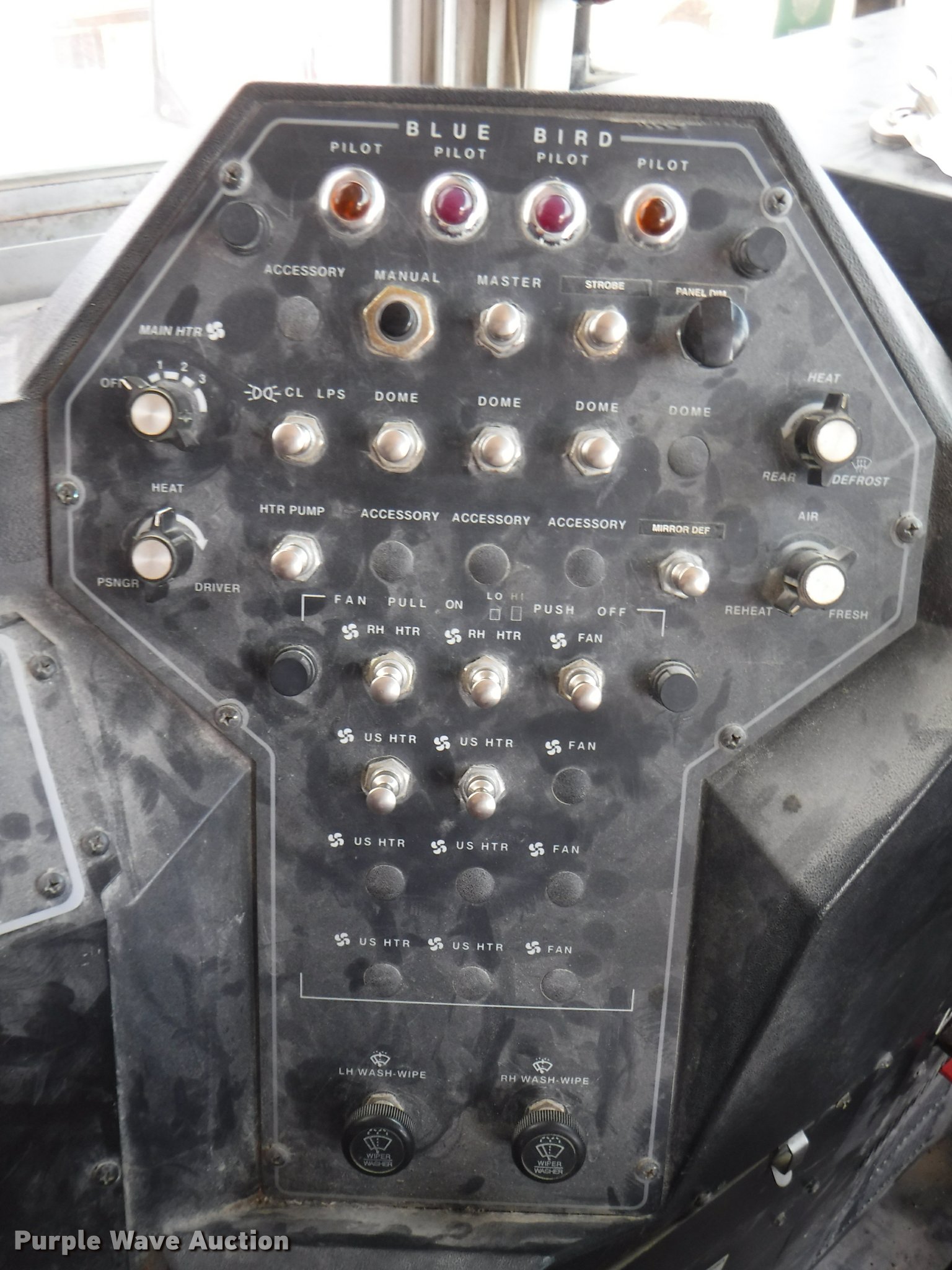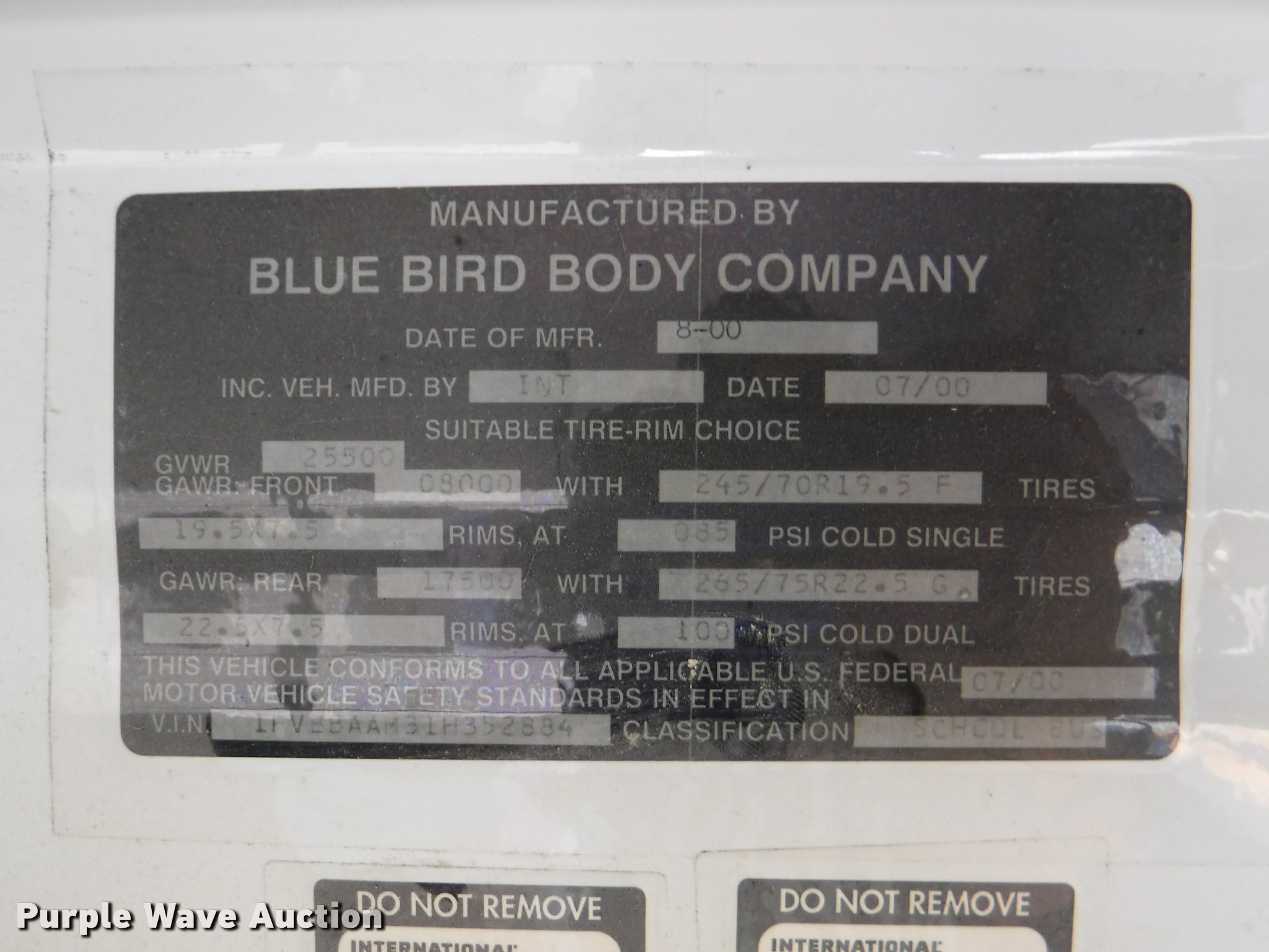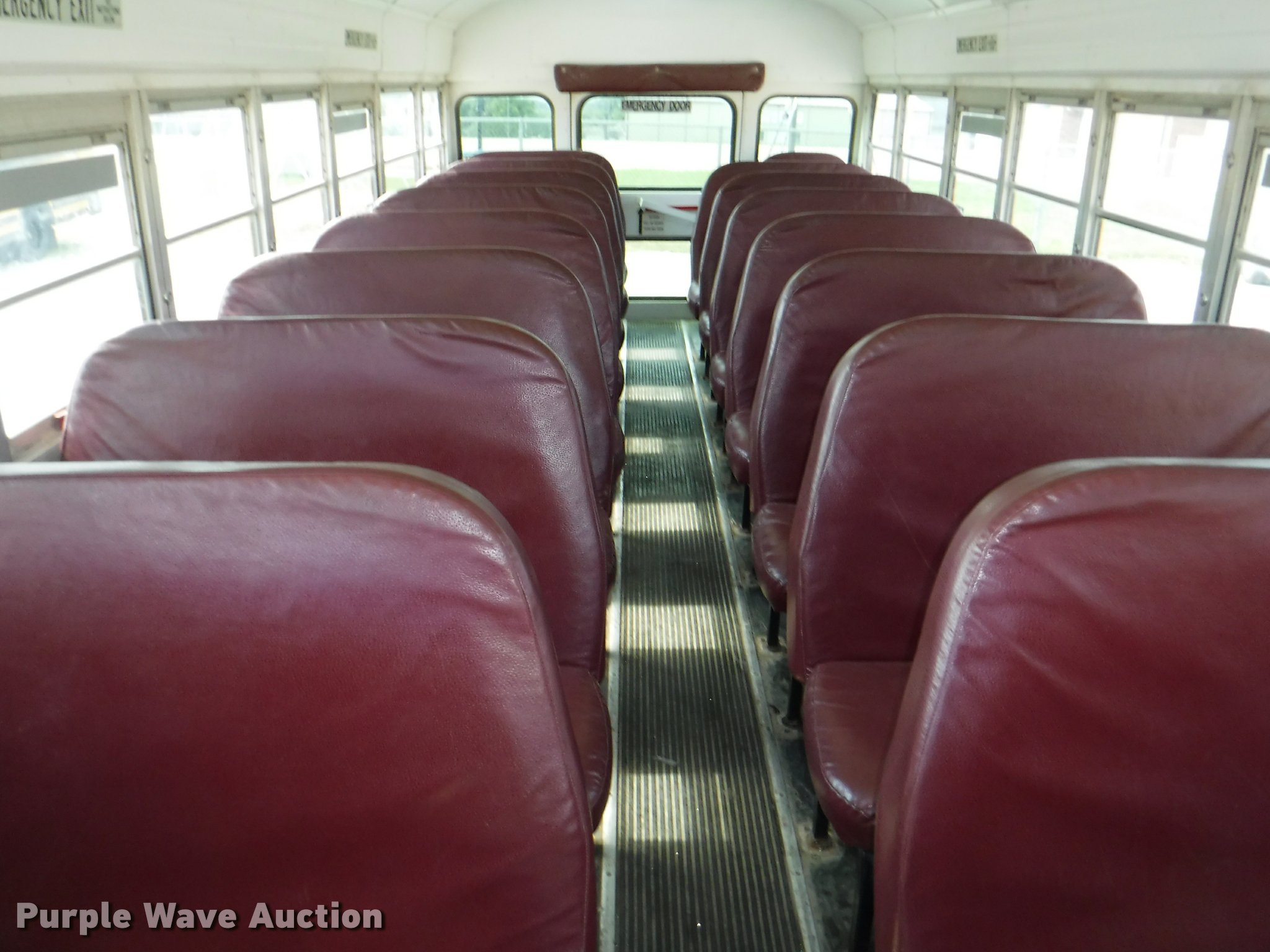 Purple Wave is selling a used Bus in Kansas. This item is a 2001 International 3800 Blue Bird school bus with the following: 174,271 miles on odometer, 5,867 hours on meter, International DT466E 7.6L L6 turbo diesel engine, Automatic transmission, Single axle, Heat, Cruise, AM/FM/cassette, Vinyl interior, 47 passenger capacity, Ceiling, rear, and side emergency exits, Lighted stop sign, Backup alarm, Block heater, Underside luggage storage, Rear tow hooks, Spring suspension, Hydraulic brakes, 194" wheelbase, 11R22.5 tires, GVWR 25,500 lbs, Decals will be painted over, Unit# 00-1