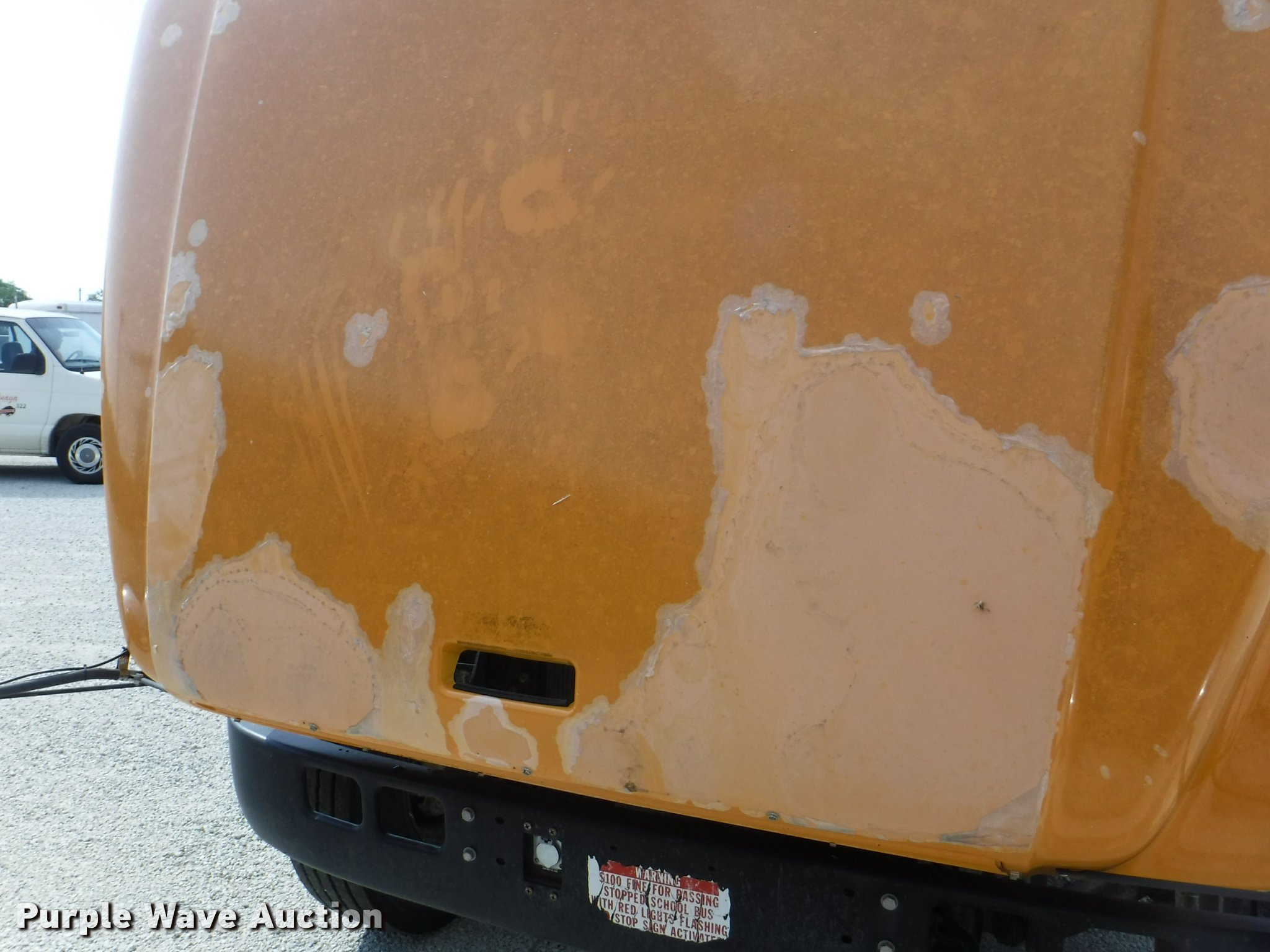 2001 International 3800 Blue Bird school bus. 174,271 miles on odometer, 5,867 hours on meter, International DT466E 7.6L L6 turbo diesel engine, Automatic transmission, Single axle, Heat, Cruise, AM/FM/cassette, Vinyl interior, 47 passenger capacity, Ceiling, rear, and side emergency exits, Lighted stop sign, Backup alarm, Block heater, Underside luggage storage, Rear tow hooks, Spring suspension, Hydraulic brakes, 194" wheelbase, 11R22.5 tires, GVWR 25,500 lbs, Decals will be painted over, Unit# 00-1. Kansas title. Title distribution may be delayed up to 14 days from verification of funds. 1HVBBAAM31H352884. Onaga, KS 66521