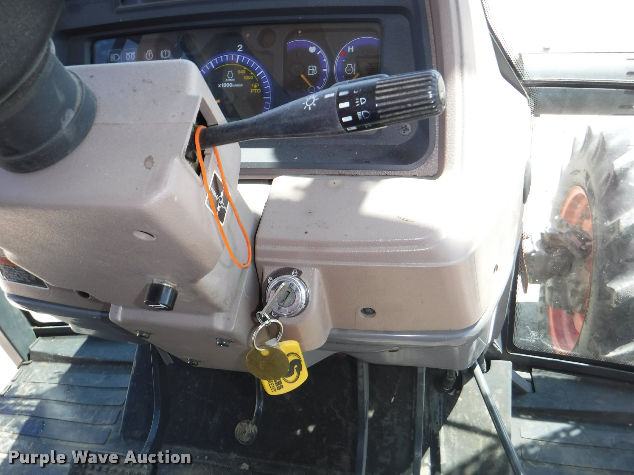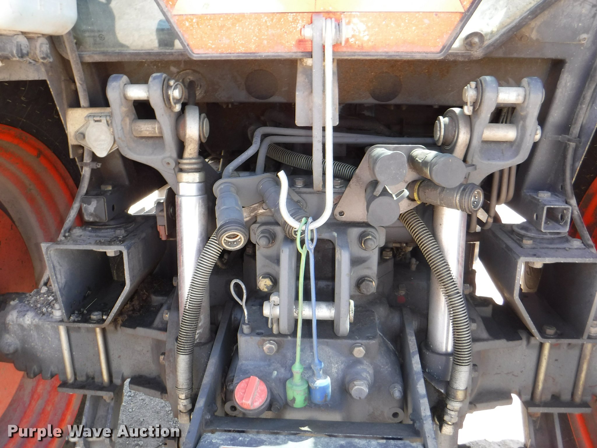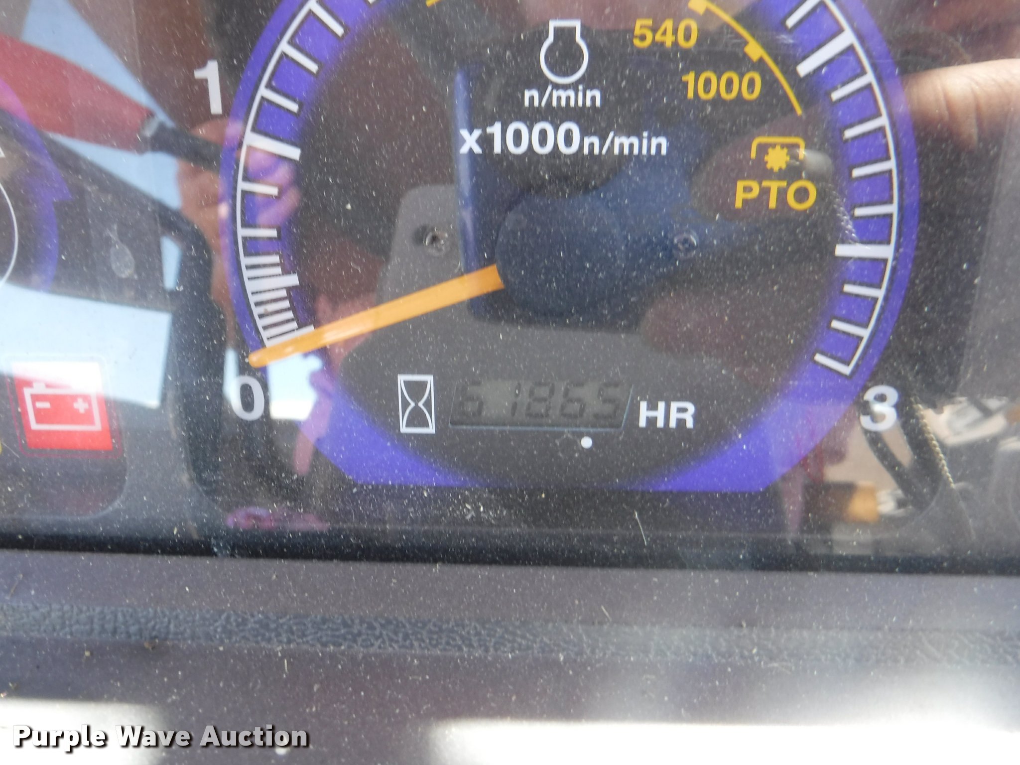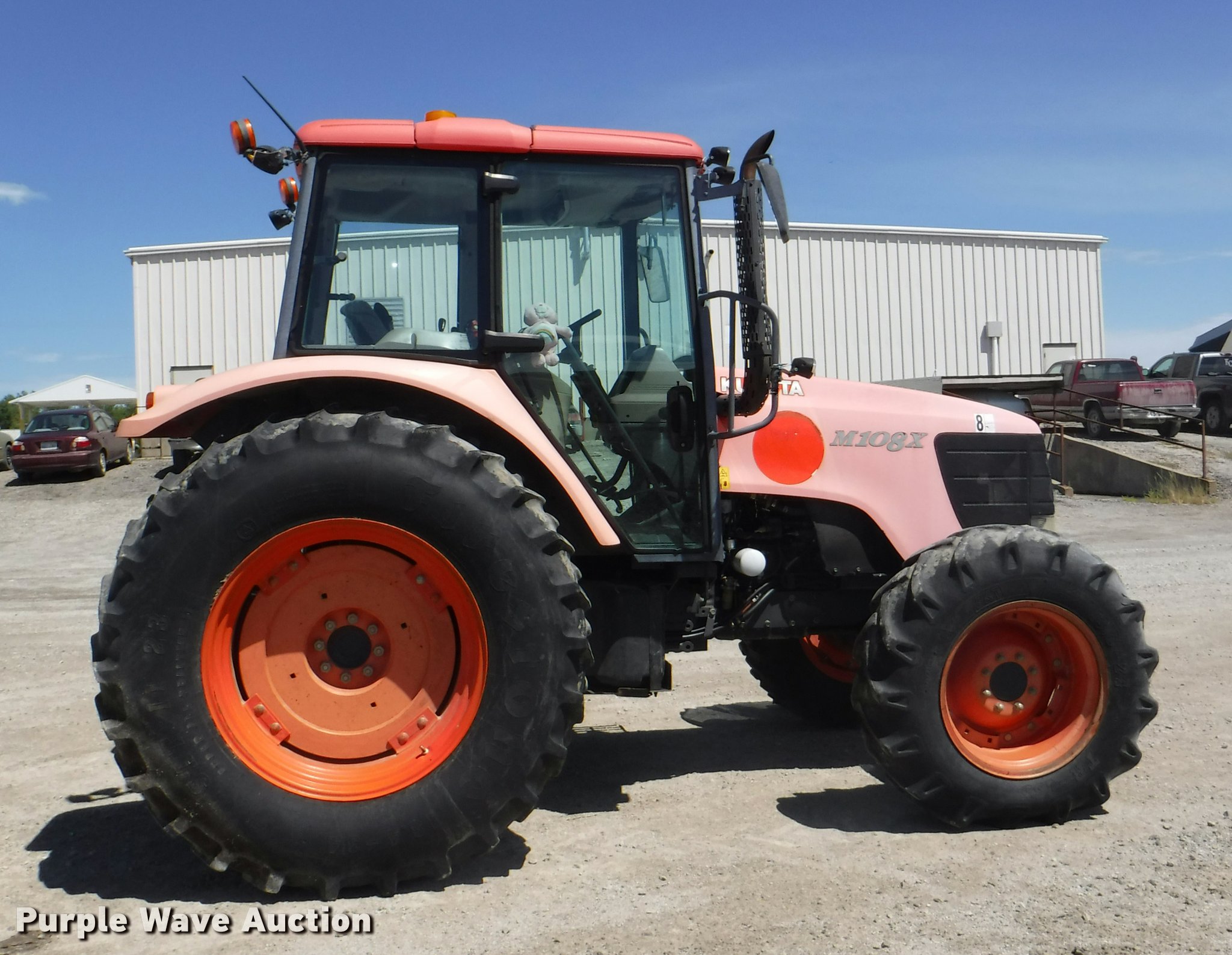 Purple Wave is selling a used Tractor in Kansas. This item is a 2008 Kubota M108X 4WD tractor with the following: 6,186 hours on meter, Four cylinder turbo diesel engine, Model 7N0171, Serial V9800T7N0121, Shuttle shift transmission, AC and heat, AC needs charged, AM/FM/cassette/weatherband, Spring suspension seat, Front and rear work lights, Three point, 540 PTO, Seven pin outlet, (3) rear hydraulic remote sets, Suitcase weights, 13.6-24 front tires, 18.4-34 rear tires, Non-operational PTO pump, Serial M108X50281, Unit# 89