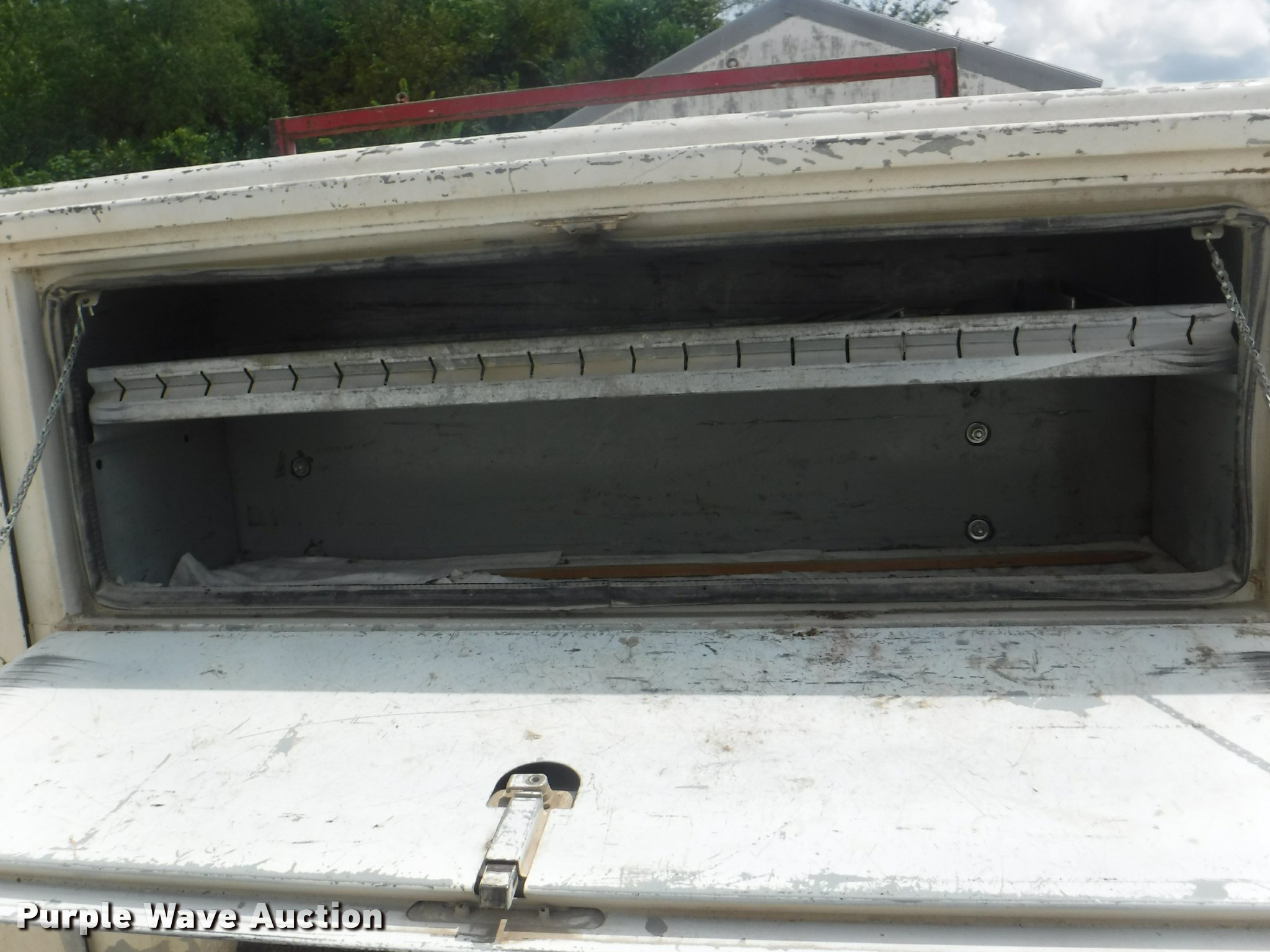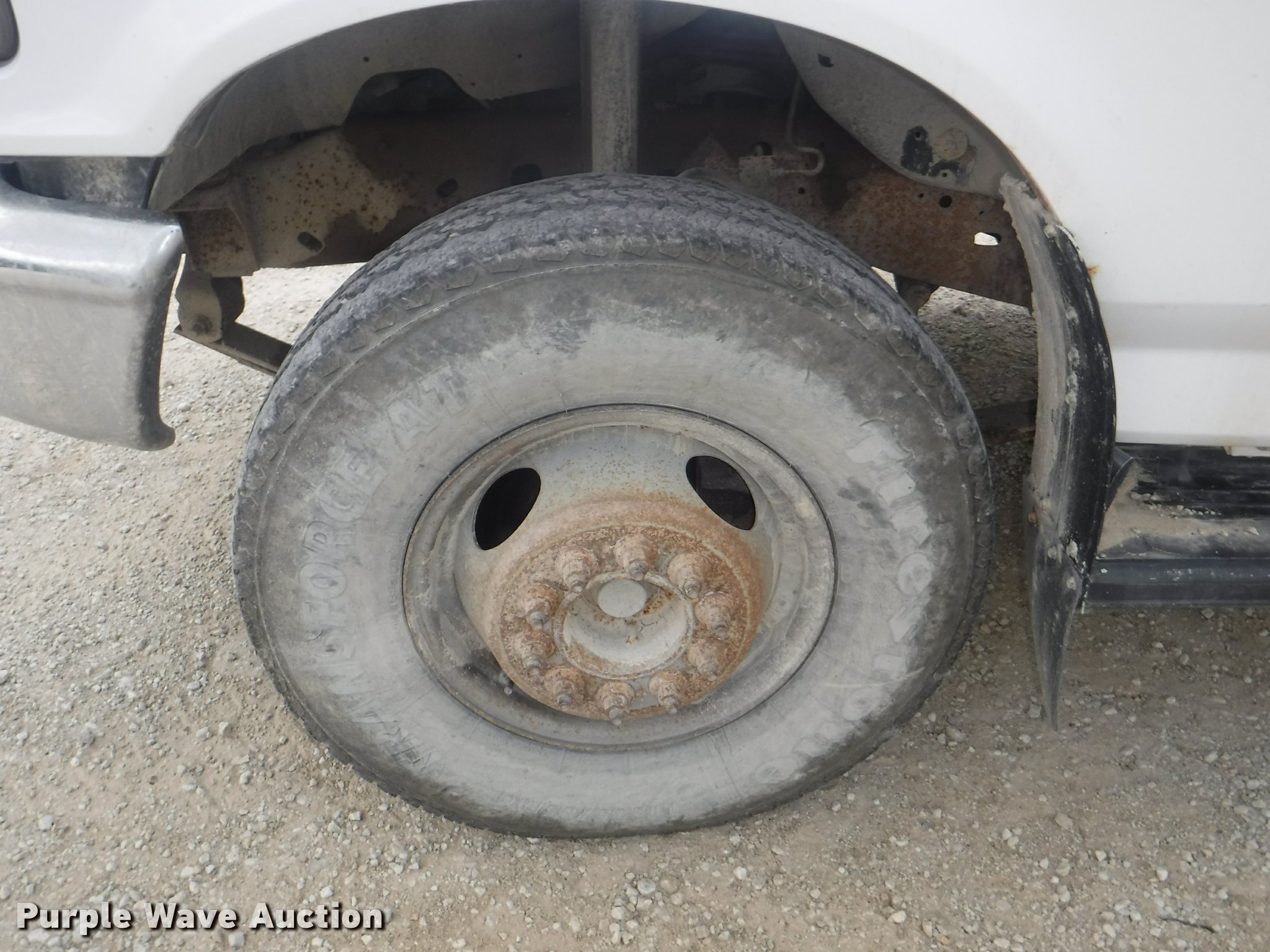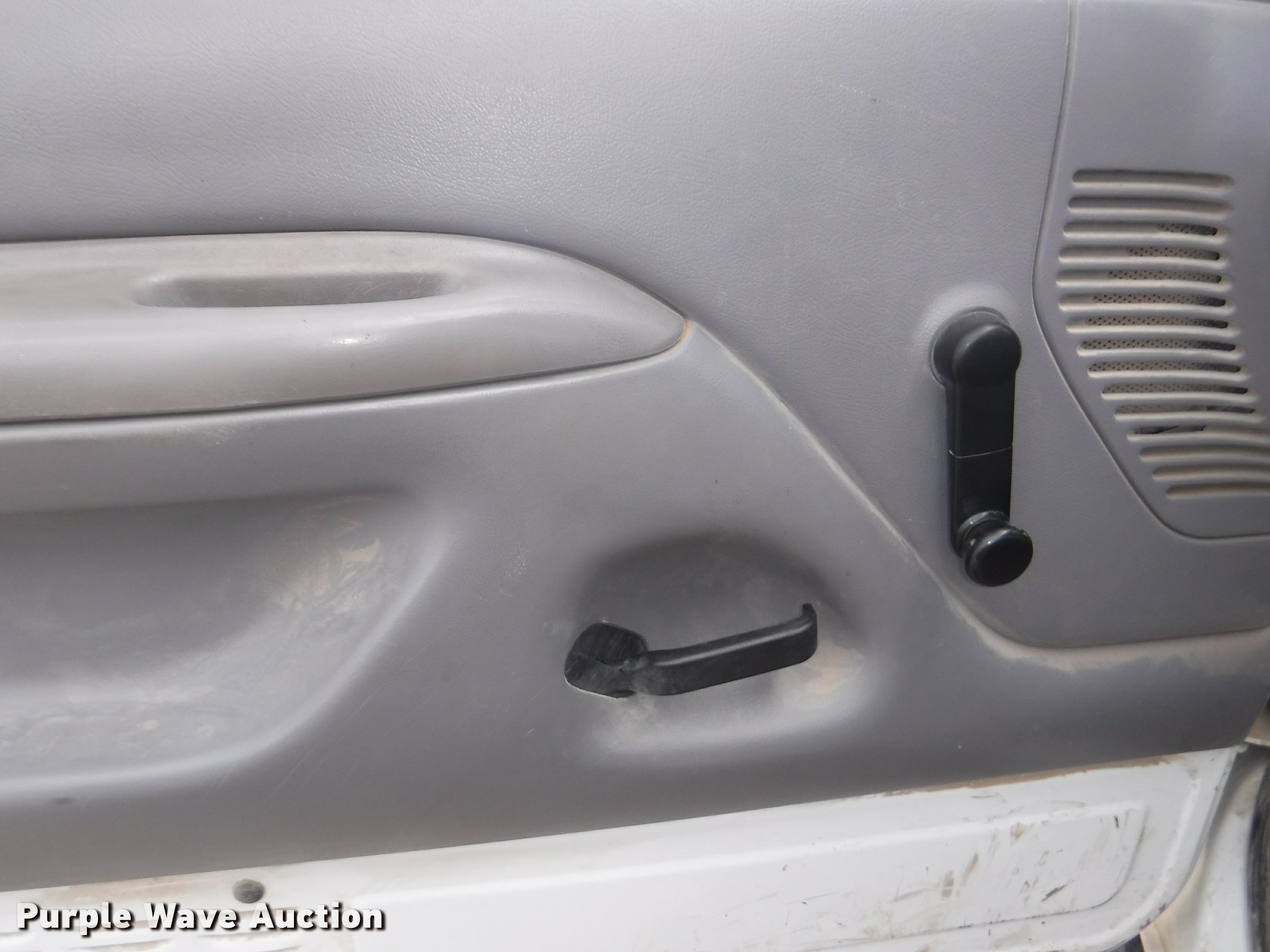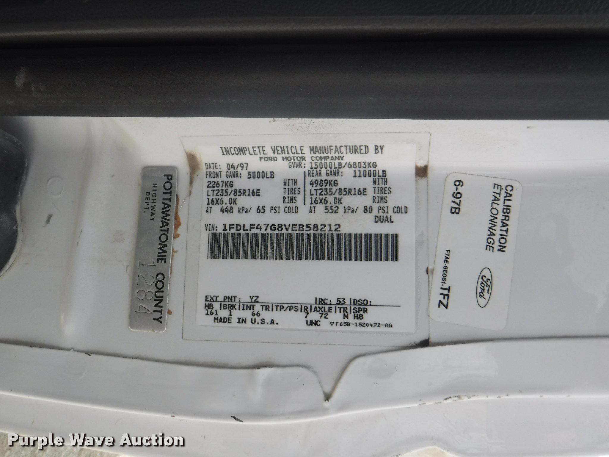 Purple Wave is selling a used Service Truck in Kansas. This item is a 1997 Ford F450 Super Duty XL utility truck with the following: 159,869 miles on odometer, 7.5L V8 gas engine, Five speed manual transmission, AC and heat, AM/FM, Manual windows and locks, Vinyl interior, Running boards, Strobe light, Reading 1086DADW utility bed, (6) compartments, Seven pin outlet, Welder ground, Dual fuel tanks, Receiver hitch, Trailer wiring, 235/85R16 tires, Barrel not included, Unit# 35