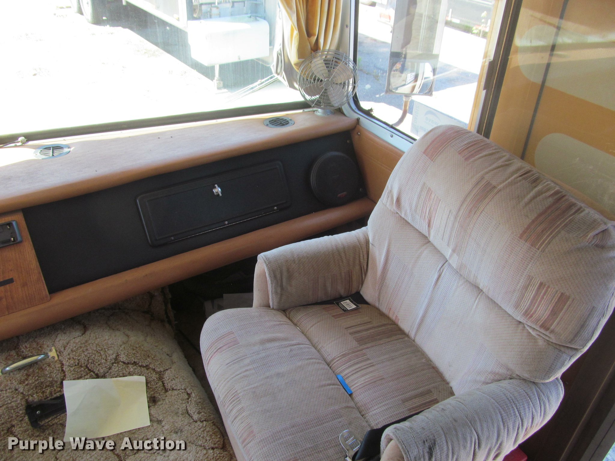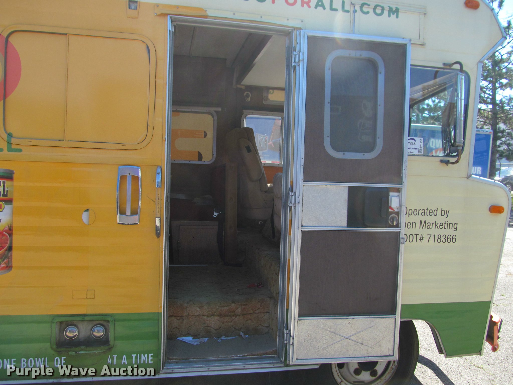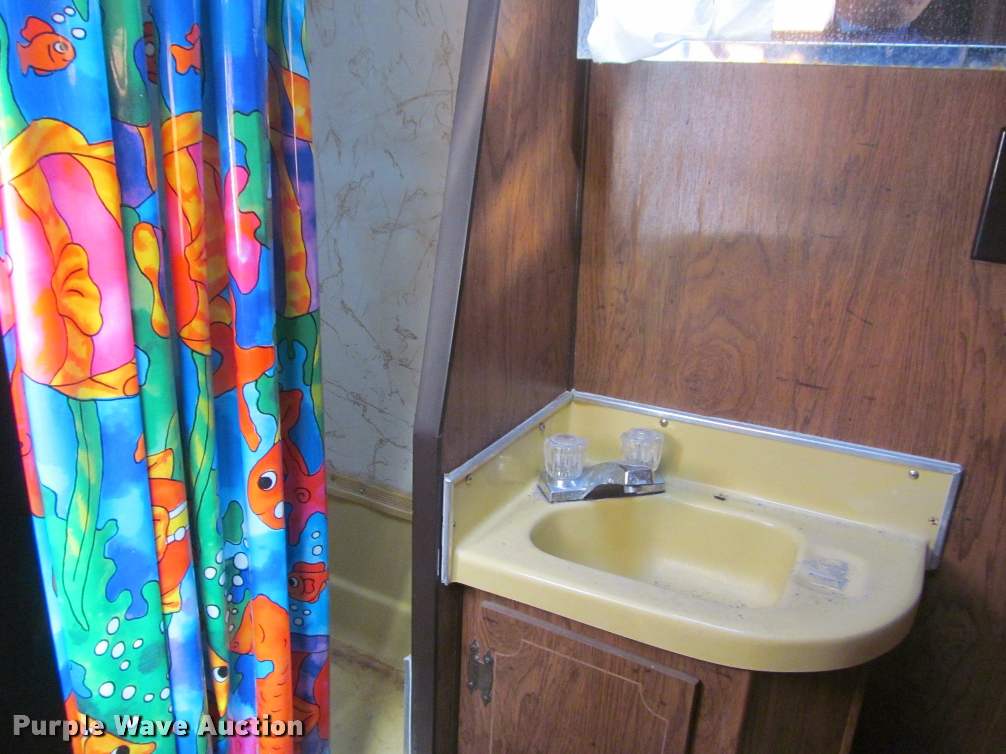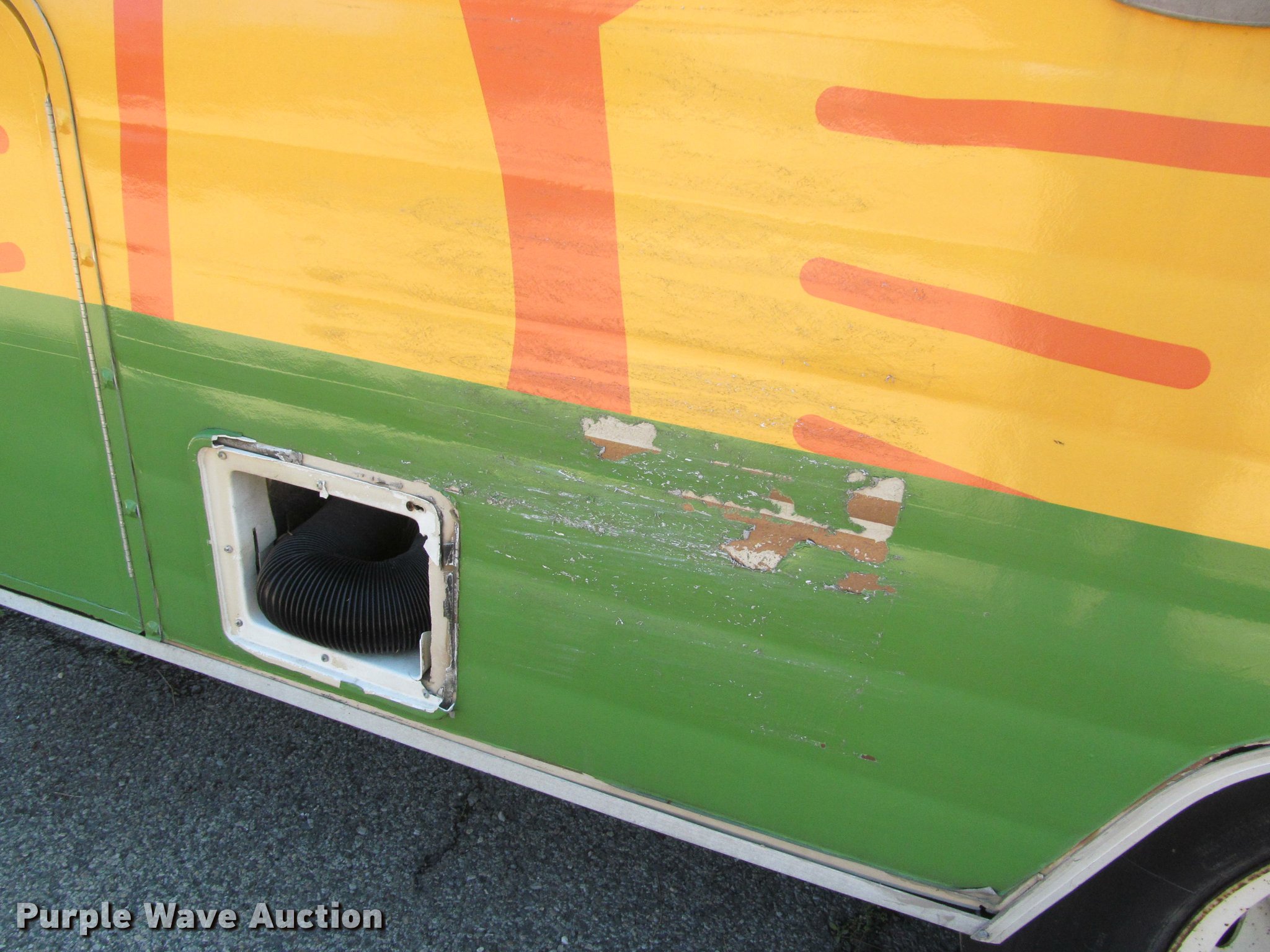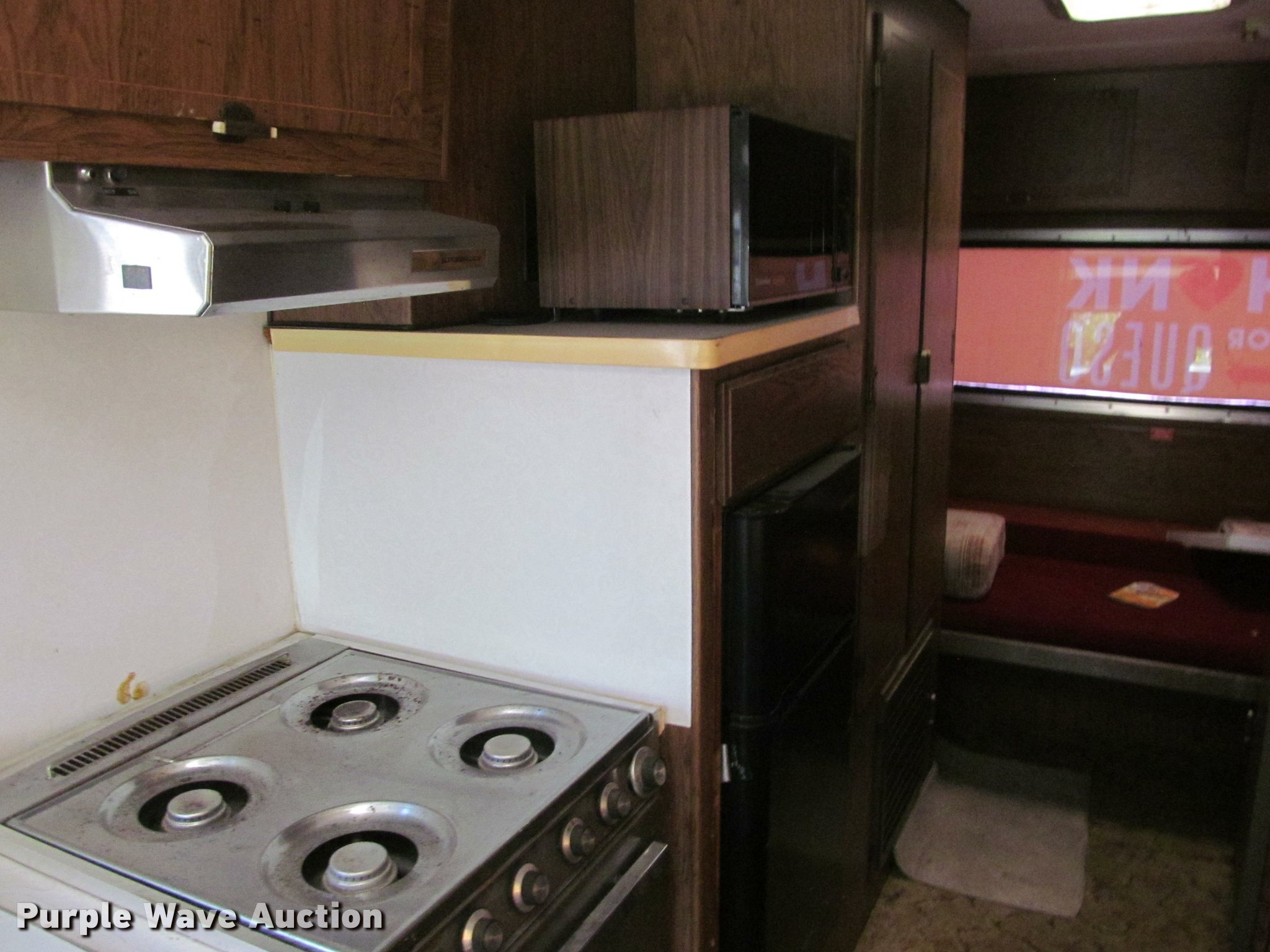 Purple Wave is selling a used RV in Michigan. This item is a 1973 Winnebago Brave RV with the following: 83,767 miles on odometer, Eight cylinder gas engine, Automatic transmission, AC and heat, Manual windows, Cloth interior, Black & Decker mini refrigerator, Wrorgmaster gas stove, Microwave, Onan 40CCK generator, 120V, Single phase, Serial 0772468803, Unknown operating condition, Receiver hitch, Spring suspension, Hydraulic brakes, 7.50R17 tires, GVWR 13,000 lbs, Rear wall separated from side walls, No propane bottles included, Possible engine and transmission issues, Non-operational unit