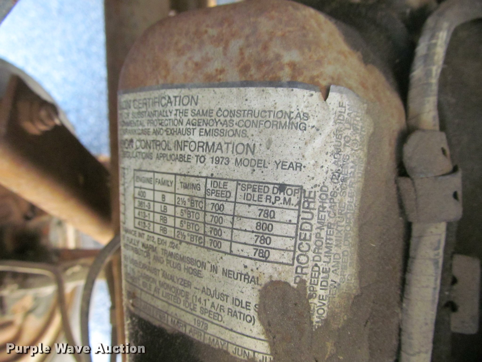 1973 Winnebago Brave RV. 83,767 miles on odometer, Eight cylinder gas engine, Automatic transmission, AC and heat, Manual windows, Cloth interior, Black & Decker mini refrigerator, Wrorgmaster gas stove, Microwave, Onan 40CCK generator 120V, Single phase, Serial 0772468803, Unknown operating condition, Receiver hitch, Spring suspension, Hydraulic brakes, 7.50R17 tires, GVWR 13,000 lbs, Rear wall separated from side walls, No propane bottles included, Possible engine and transmission issues, Non-operational unit. Iowa In-Transit title. 3322312236664. Epsilon. Auburn Hills, MI 48326