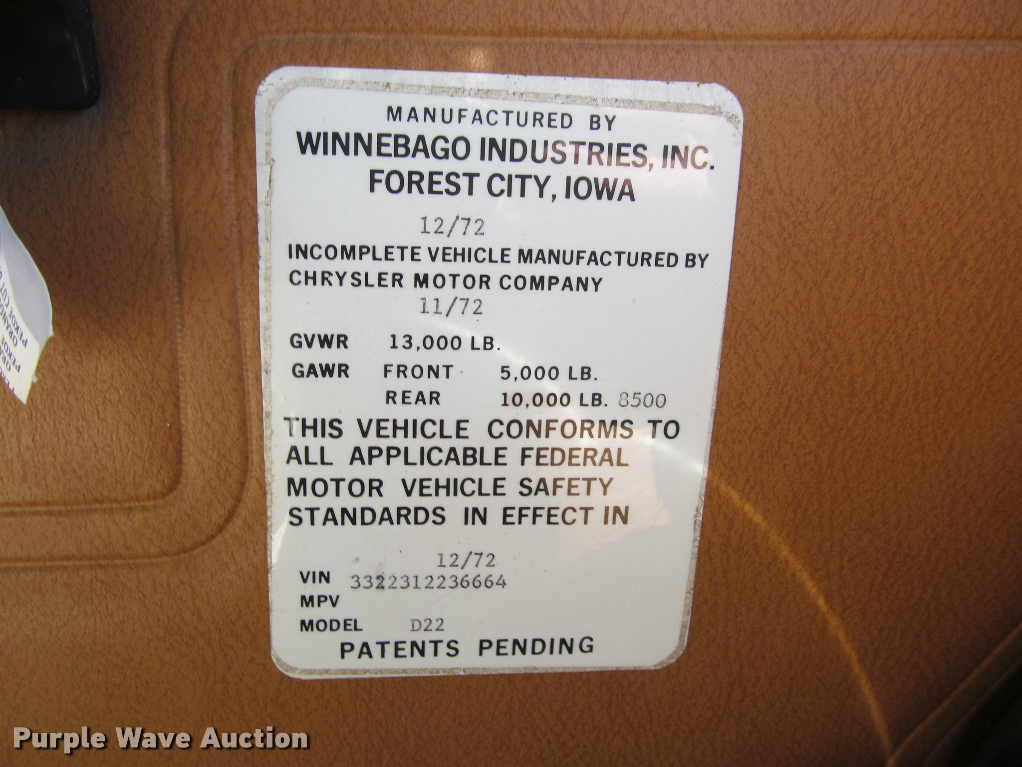 1973 Winnebago Brave RV has sold in Auburn Hills, Michigan for $55. Item DA1012 sold on September 13th, 2017.