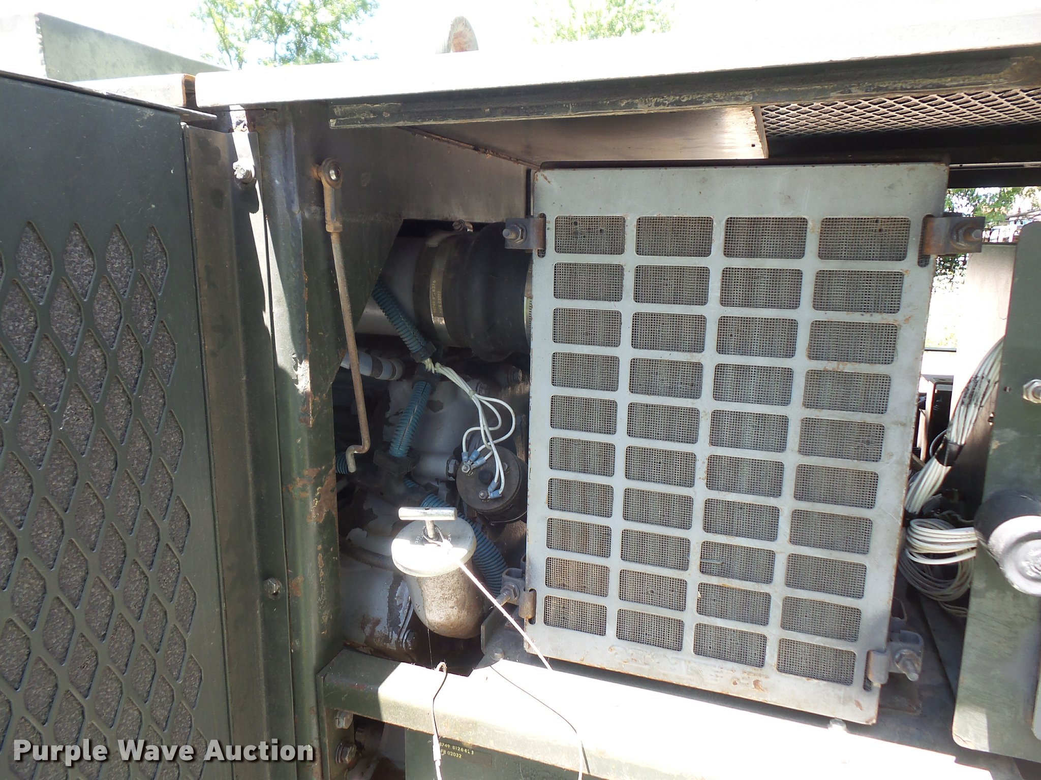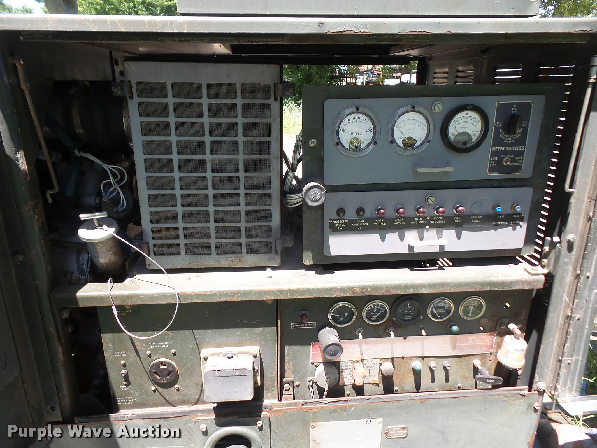 Purple Wave is selling a used Generator Set in Kansas. This item is a 1989 U.S. Air Force A1M32A-86D generator with the following: 1,325 hours on meter, Detroit Diesel 10435000 four cylinder diesel engine, Electric start, 72 kW, Single and three phase, Fuel tank, Pintle hitch, 6.9-9 tires, Serial K203854