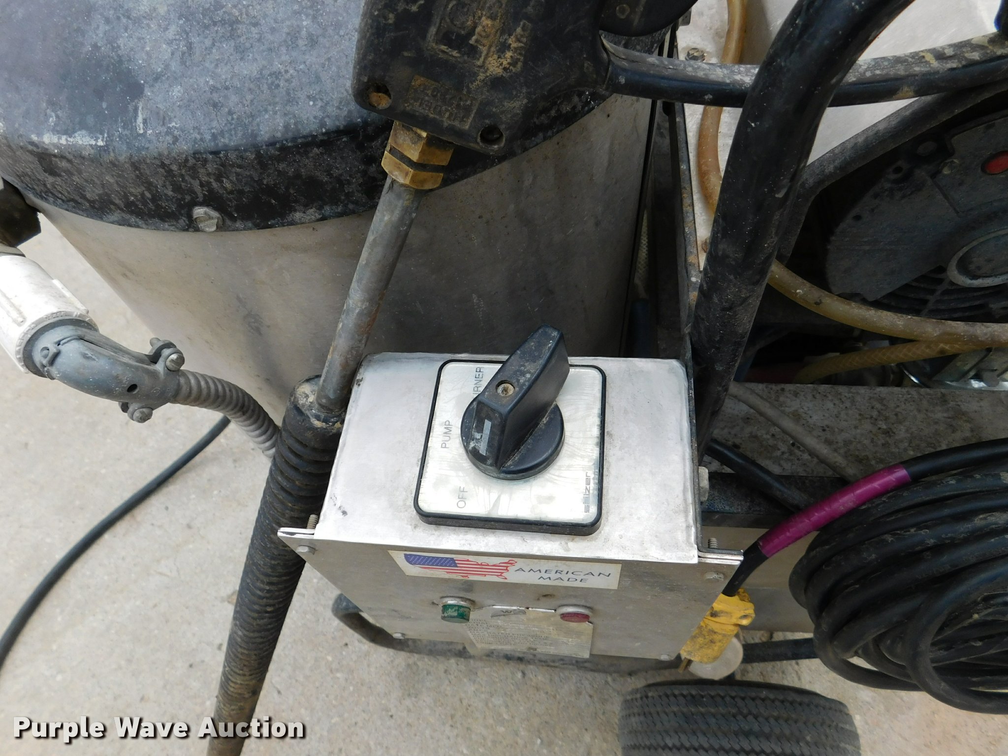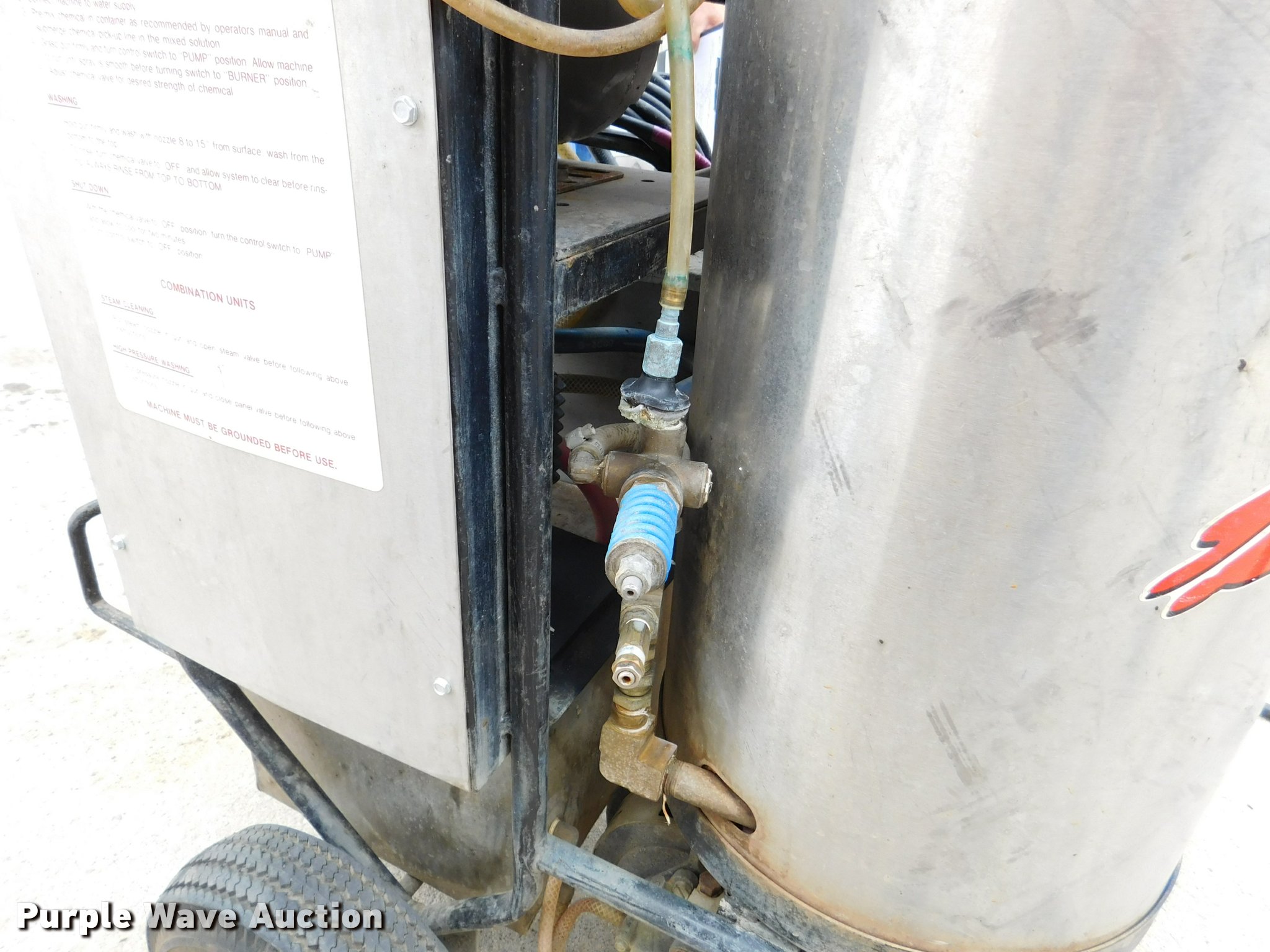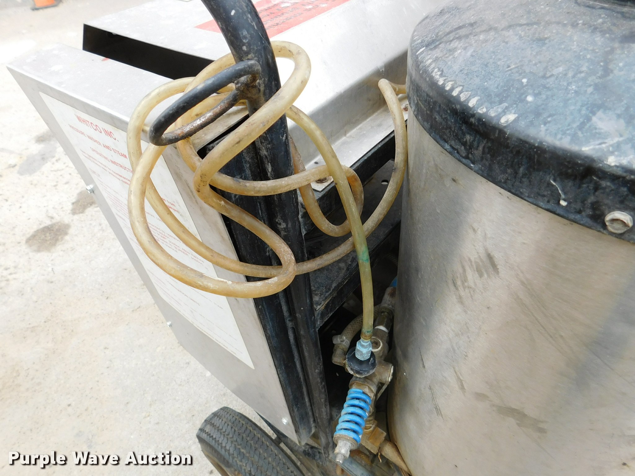 Purple Wave is selling a used Pressure Washer in Kansas. This item is a Whitco 214 pressure washer/steam cleaner with the following: Diesel burner, 115V, 1,400 psi, 200 degree discharge temperature, Intermittent pressure issues, Serial 600-116