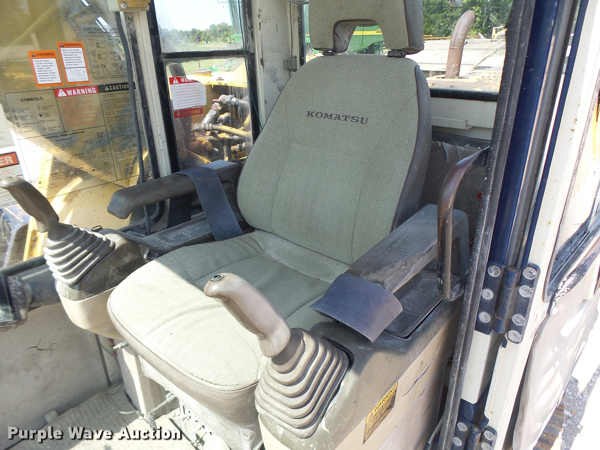 Purple Wave is selling a used Hydraulic Excavator in Missouri. This item is a 1993 Komatsu PC200LC-5 excavator with the following: 7,852 hours on meter, Komatsu six cylinder turbo diesel engine, Two speed hydrostatic transmission, EROPS, Suspension seat, Front work lights, Standard boom, Esco 48"W bucket, Weld-on cutting edge, (5) teeth, Side cutters, Hydraulic quick coupler, Auxiliary hydraulics, Nne bottom rollers, 32"W steel triple grouser track pads, Serial A70907