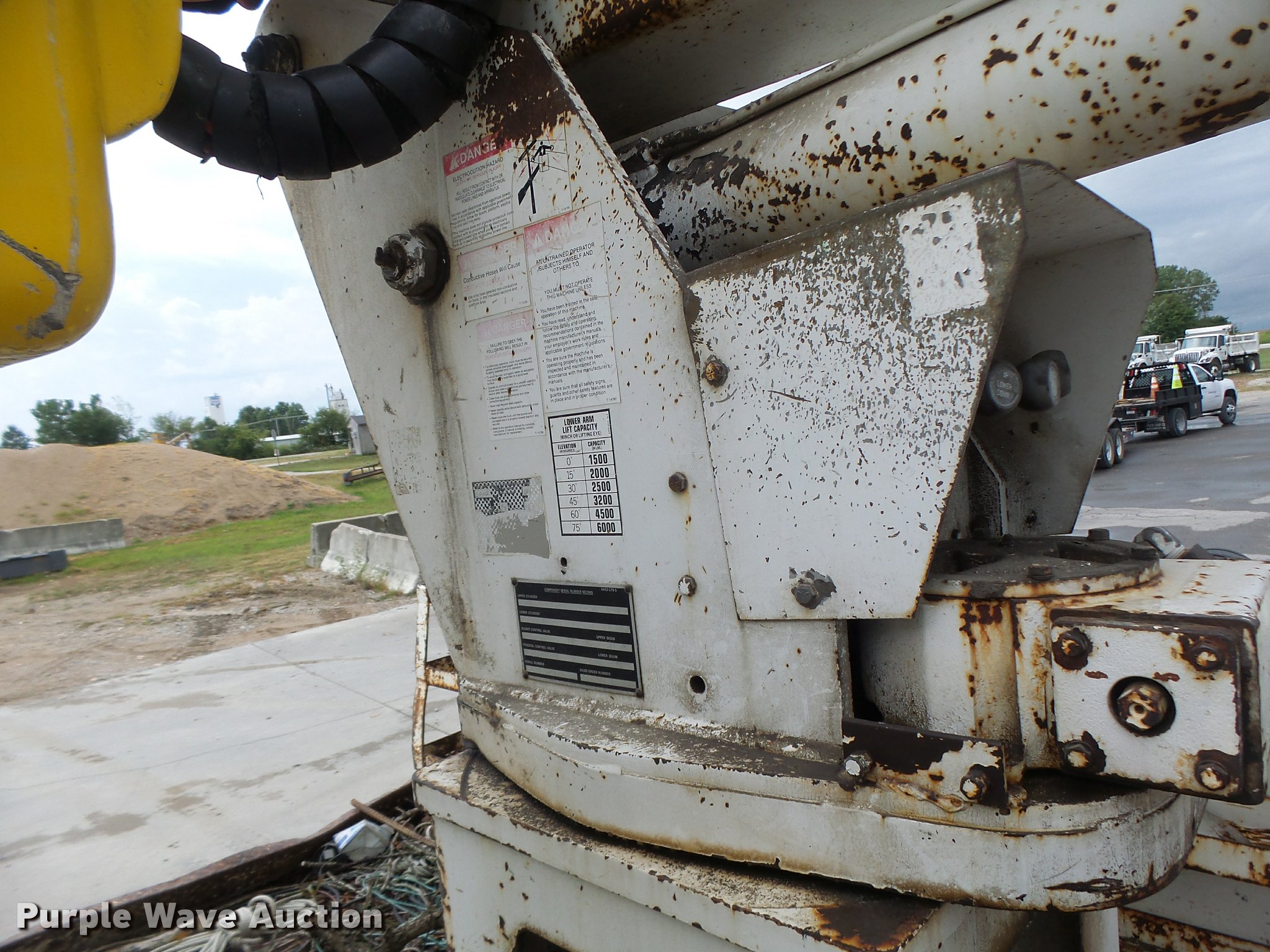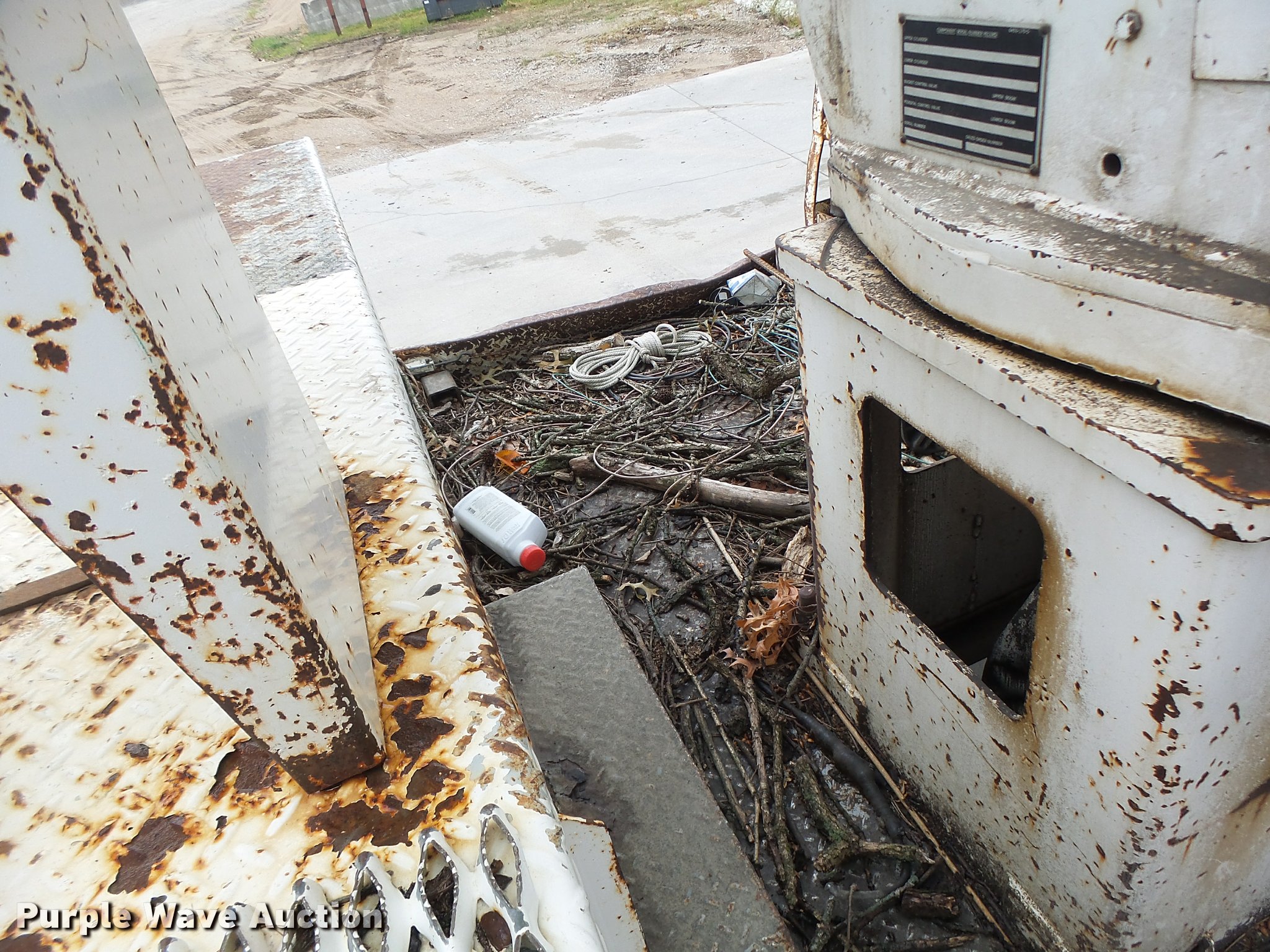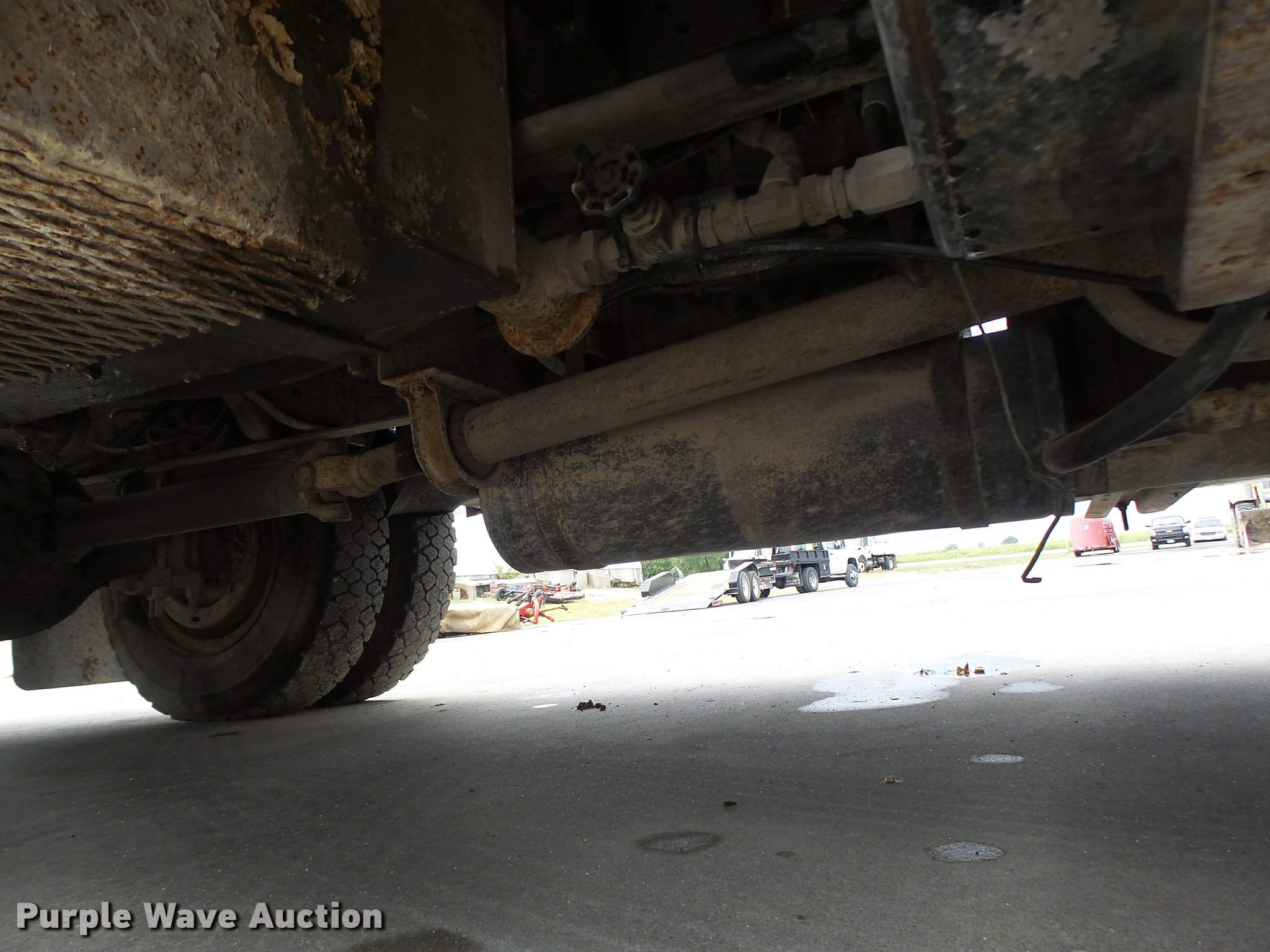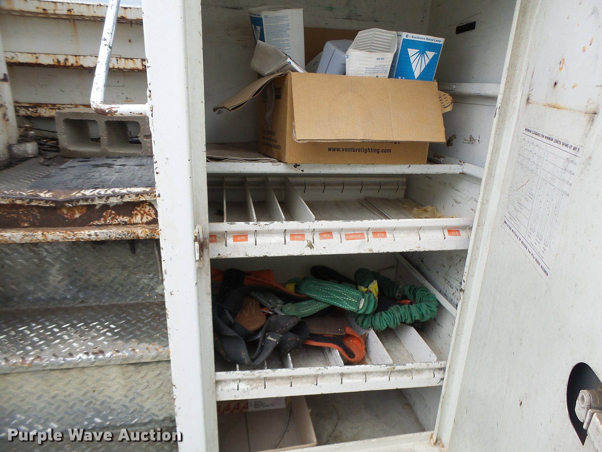 Purple Wave is selling a used Bucket Truck in Missouri. This item is a 1991 Ford F700 bucket truck with the following: 177,628 miles on odometer, 6.6L six cylinder turbo diesel engine, Five speed manual transmission, Two speed rear end, Tandem axle, AC and heat, AM/FM, Suspension set, PTO, Reading ZAT162 service bed, 11'L, Shelving, Compartment lights, Serial B224356, Holan Bronco 830 boom, 300 lbs maximum lift capacity, Man basket, Ground and platform controls, Articulating, insulated boom, (2) outriggers, Serial 91830052G, Dual fuel tanks, Pintle hitch, Trailer wiring, Front tow hooks, Spring suspension, Hydraulic brakes, 9.00R20 tires, Outrigger leaking fluid