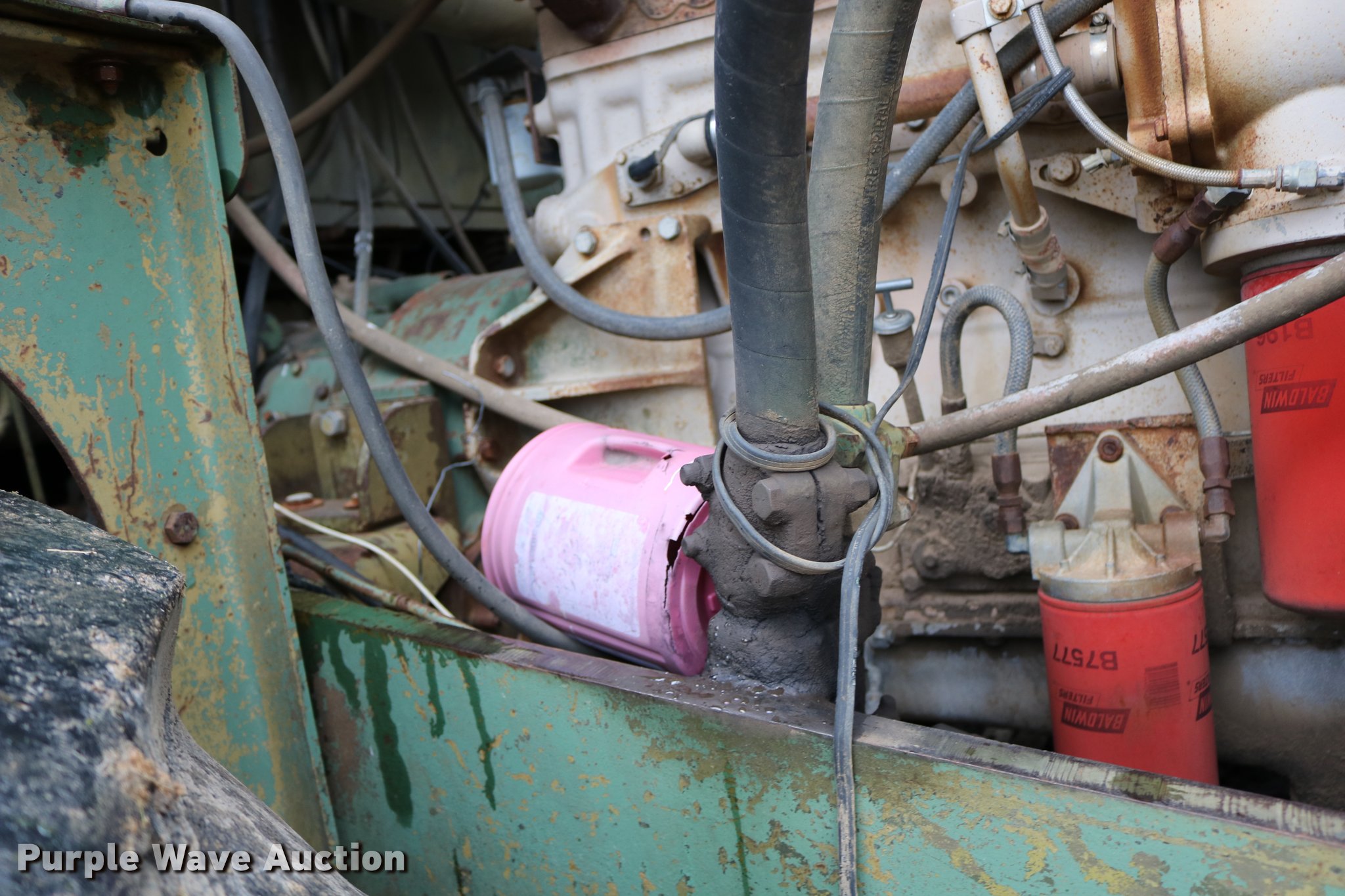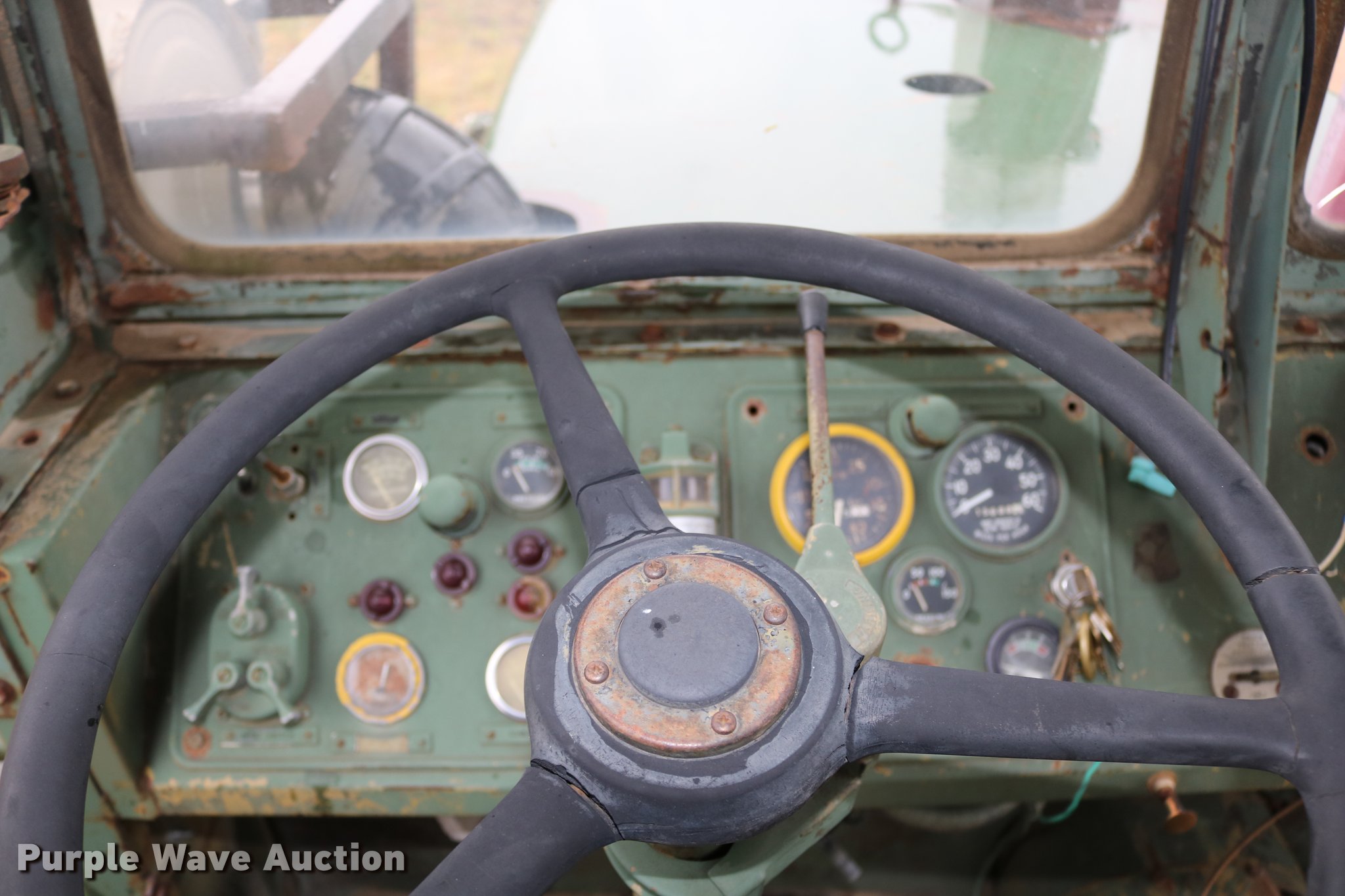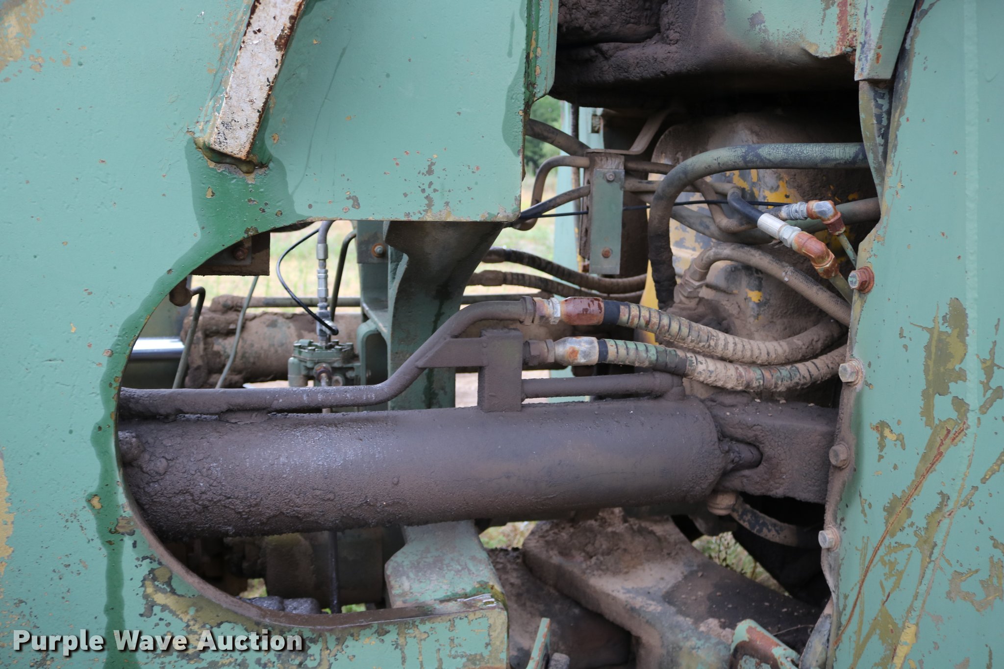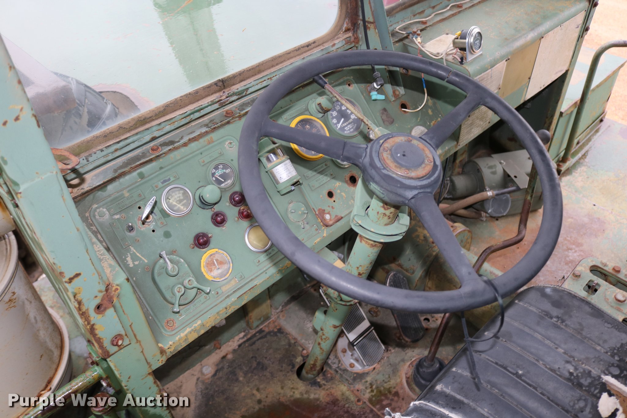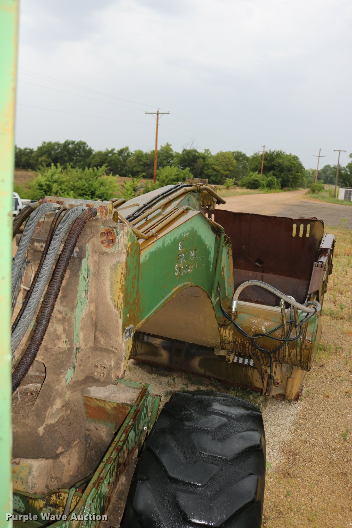 Purple Wave is selling a used Conventional Scraper in Kansas. This item is a Clark 290M conventional scraper with the following: 3,017 hours on meter, Hour meter replaced, Approximately 2,005 hours on replaced meter, Cummins 360 six cylinder turbo diesel engine, Manual transmission, 4F-2R gears, Four wheel drive, Enclosed cab, Heat, Suspension seat, Wipers, Backup alarm, Model CT4 bowl, 9' bowl width, 18 cu.yd. bowl capacity, Hydraulic lift, Serial S-64588-CT4, Three lever controls, 136"W blade, Bolt-on cutting edge, Rear push block, Air brakes, 29.5-29 tires, Serial 61373