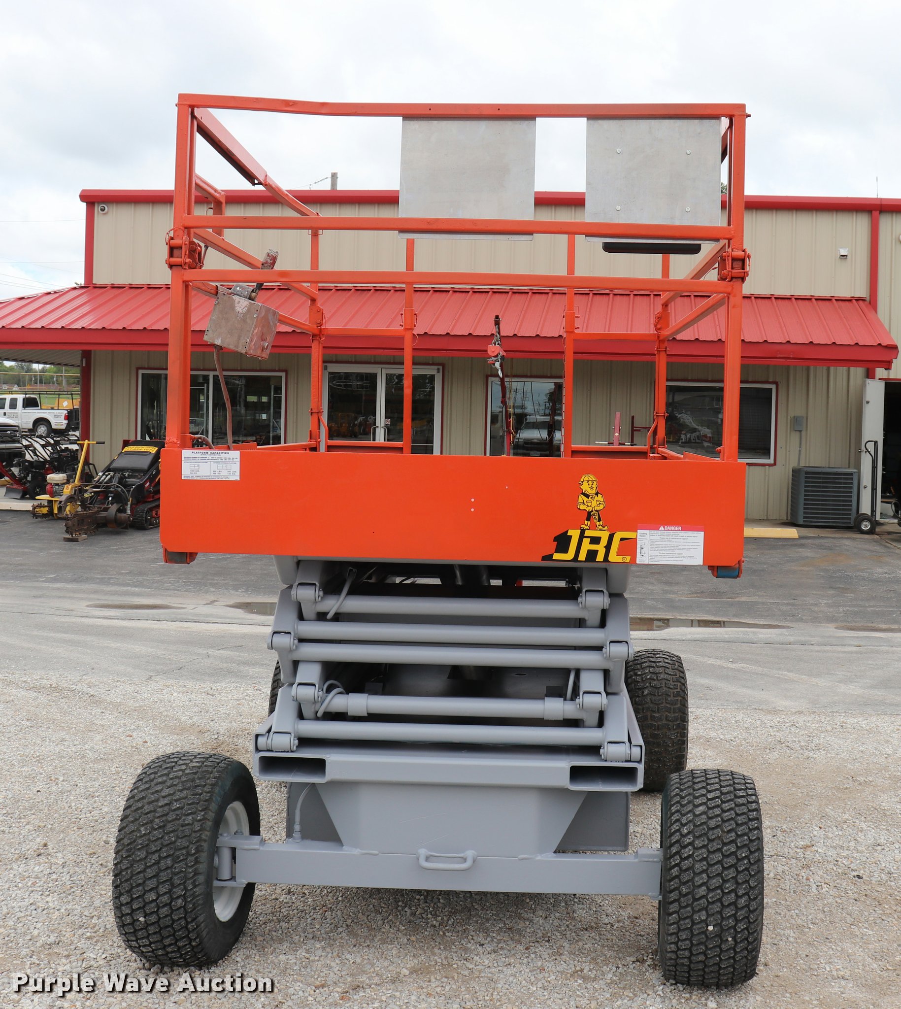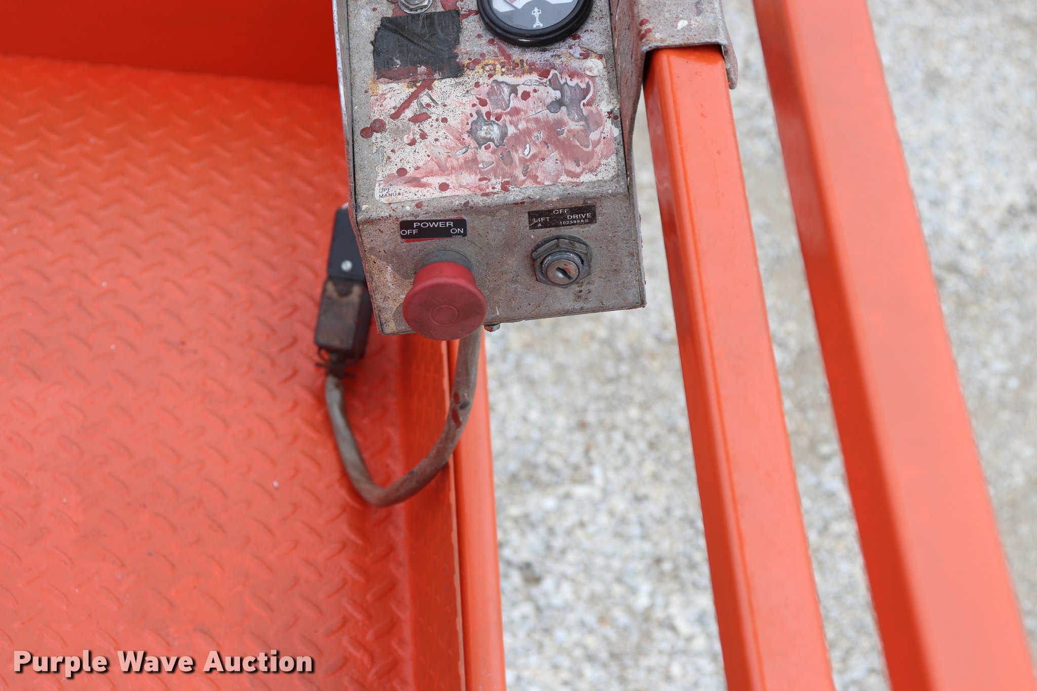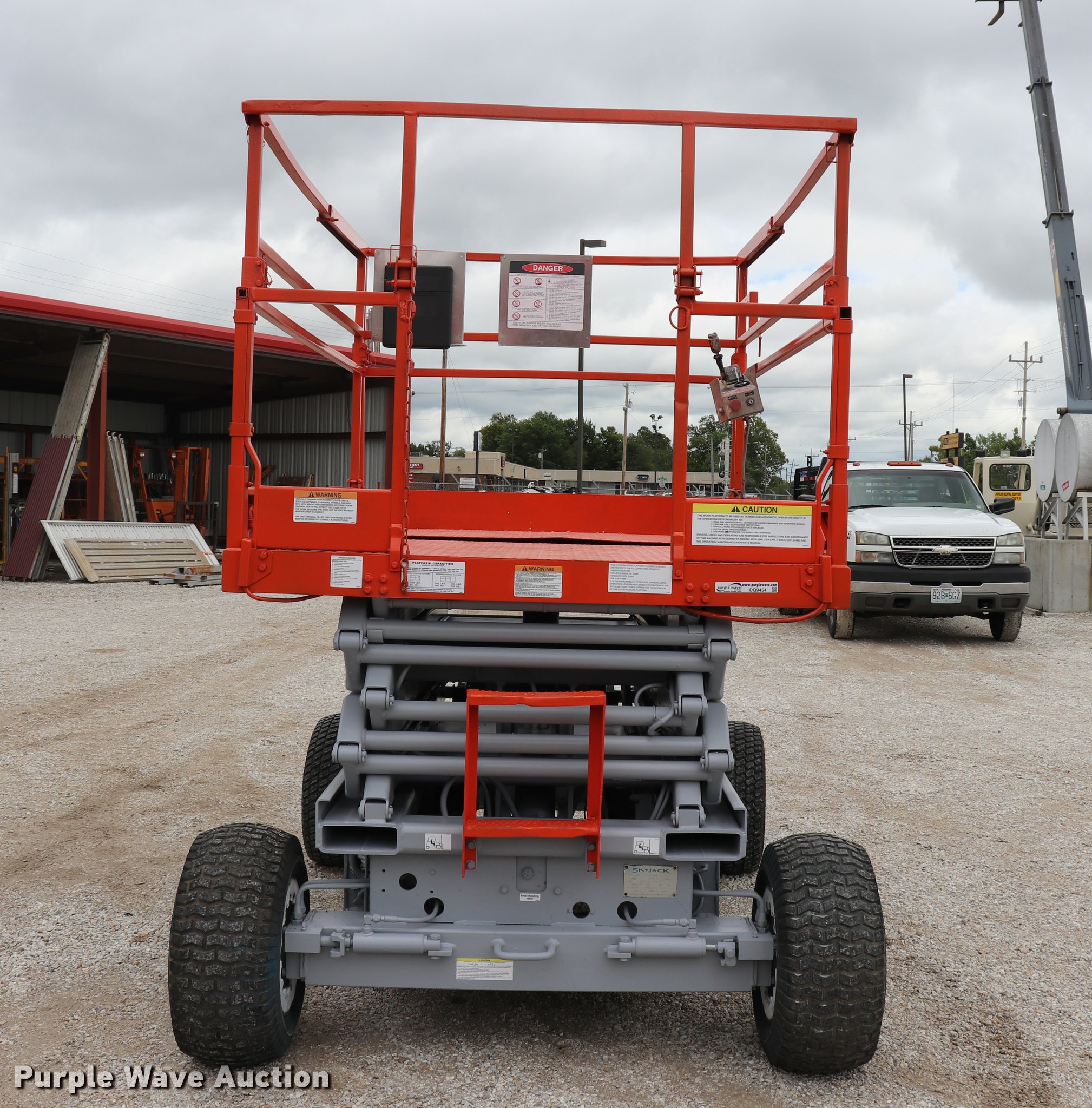 Purple Wave is selling a used Scissor or Vertical Lift in Missouri. This item is a Sky Jack 6826 scissor lift with the following: 323 hours on meter, Electric operation, 1,200 lbs maximum lift capacity, 26' maximum lift height, 7'L x 5'W platform, 3' manual platform extensions, AC power outlet, Platform and ground controls, Safety alarm, 23 x 10.5-12 pneumatic tires, Non-operational safety alarm, Serial 75171