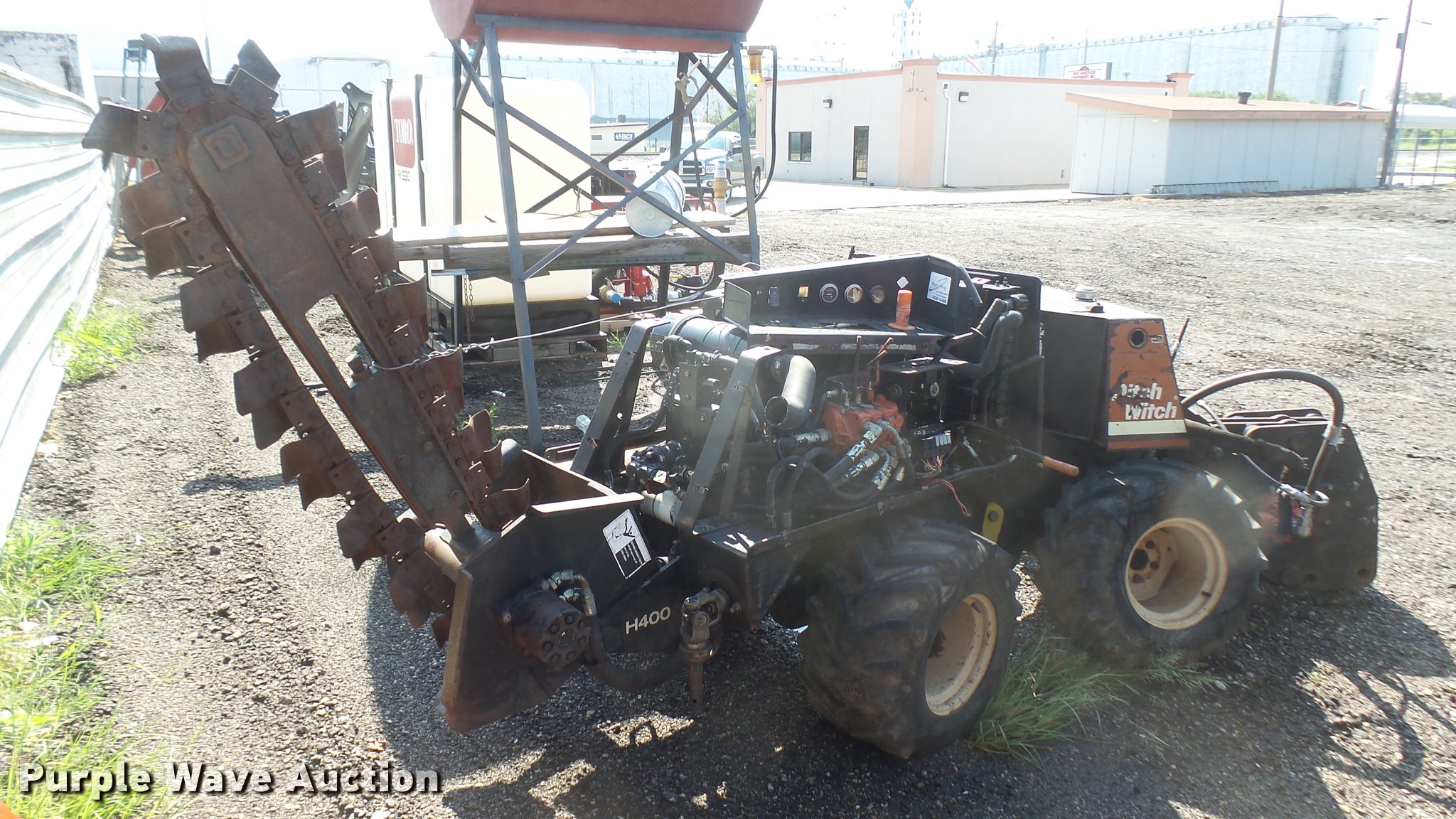 Purple Wave is selling a used Cable Plow in Kansas. This item is a Ditch Witch 410SX vibratory plow with the following: 2,363 hours on meter, Lister Petter four cylinder diesel engine, Hydrostatic transmission, Four wheel drive, Trencher model H400, 48" maximum digging depth, Serial 2R2942, Vibratory plow, Hydraulic lift, Hydraulic swing, Roto bore unit, 26 x 12-12 tires, Non-operational unit, One tire removed