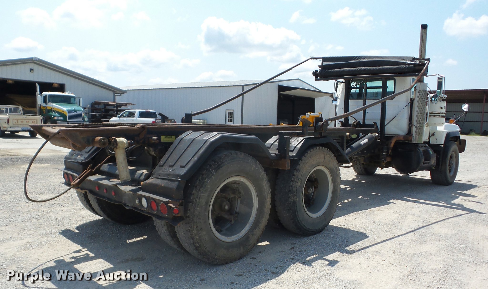 Purple Wave is selling a used Rollback or Tow Truck in Kansas. This item is a 1998 Mack RD688SX roll off container truck with the following: 215,122 miles on odometer, 13,910 hours on meter, Mack E7 12.0L L6 turbo diesel engine, Automatic transmission, Tandem axle, AC and heat, Cruise, PTO, Galbreath 45-EX-174 roll off bed, Hydraulic tail, 60,000 lbs capacity, Hydraulic tarp, Serial H13044, Single rear exhaust stack, Single fuel tank, Full fenders, Camelback suspension, Air brakes, Engine brake, 425/65R22.5 front tires, 12.00R24.5 rear tires
