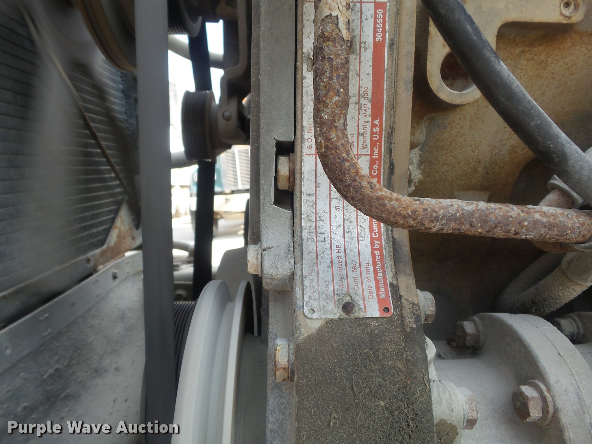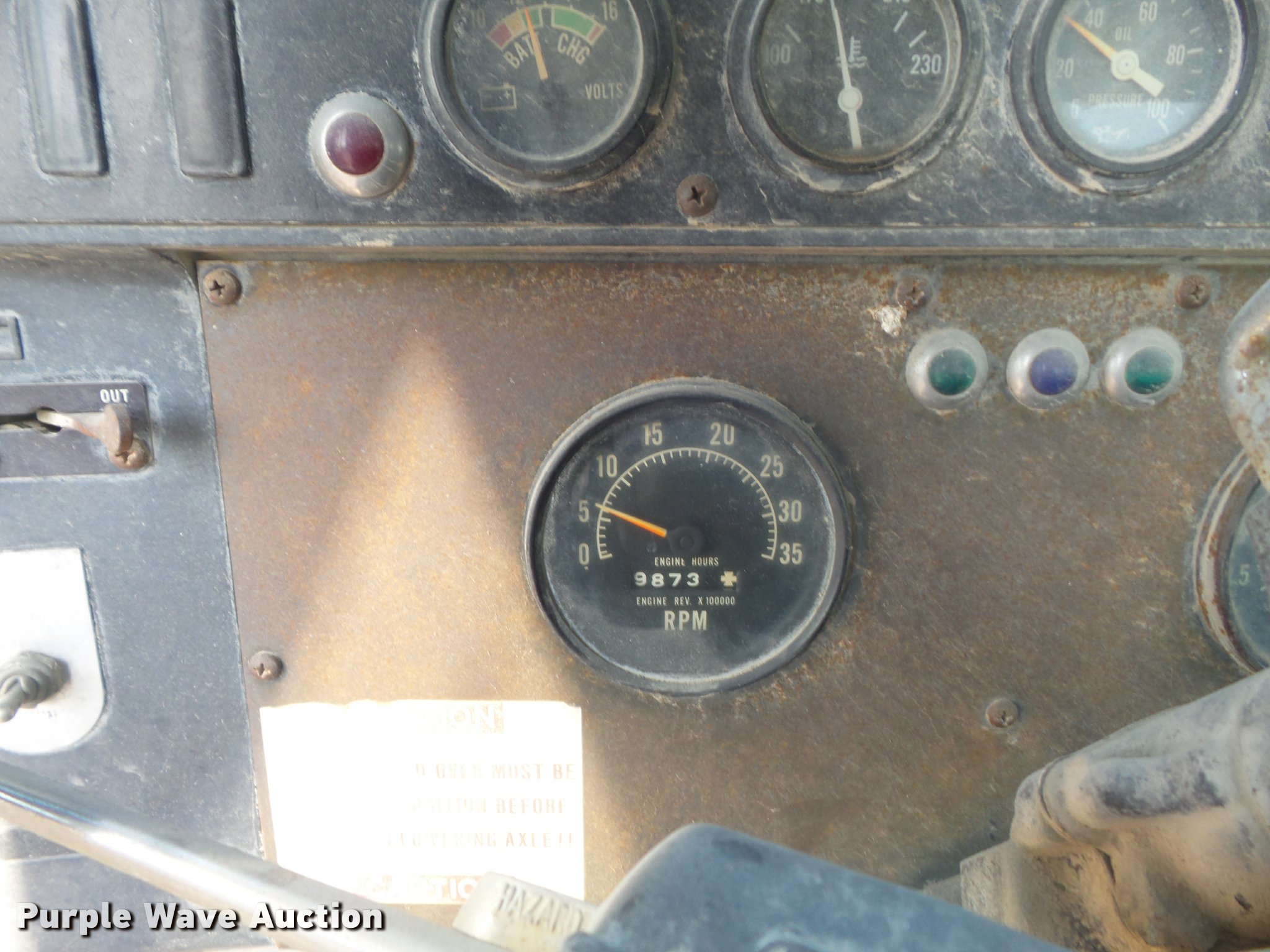 Purple Wave is selling a used Ready Mix or Pump Truck in Missouri. This item is a 1989 International F5070 ready mix truck with the following: 202,310 miles on odometer, 9,873 hours on meter, Cummins L10 10.0L L6 turbo diesel engine, 270 HP, Serial 34578671, Eaton Fuller Road Ranger seven speed manual transmission, Inter-axle differential lock, Tandem axle, Heat, Air suspension seat, PTO, MTM mixer bed, Rear drum controls, 125 gallon water tank, Ladder, Rear discharge, Single fuel tank, Steerable tag axle, 241" wheelbase, Walking beam suspension, 425/65R22.5 fornt tires, 11R22.5 rear tires, GVWR 75,540 lbs, FAWR 18,450 lbs, IAWR 22,000 lbs, RAWR 22,000 lbs, 13,000 lbs tag axle, No drum, Unit# 342