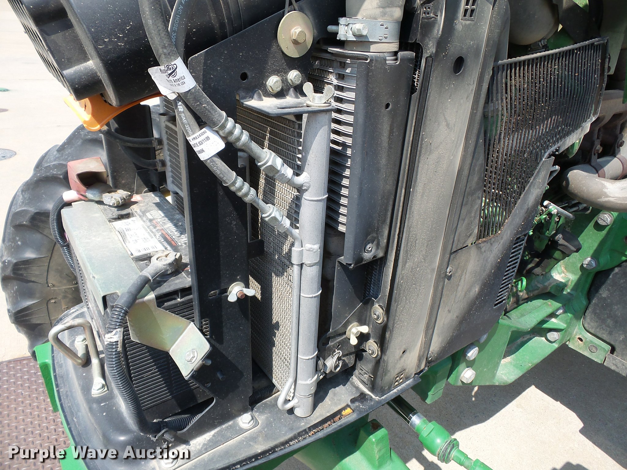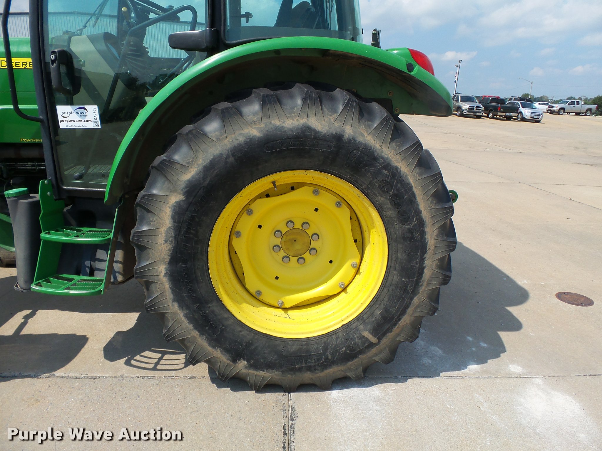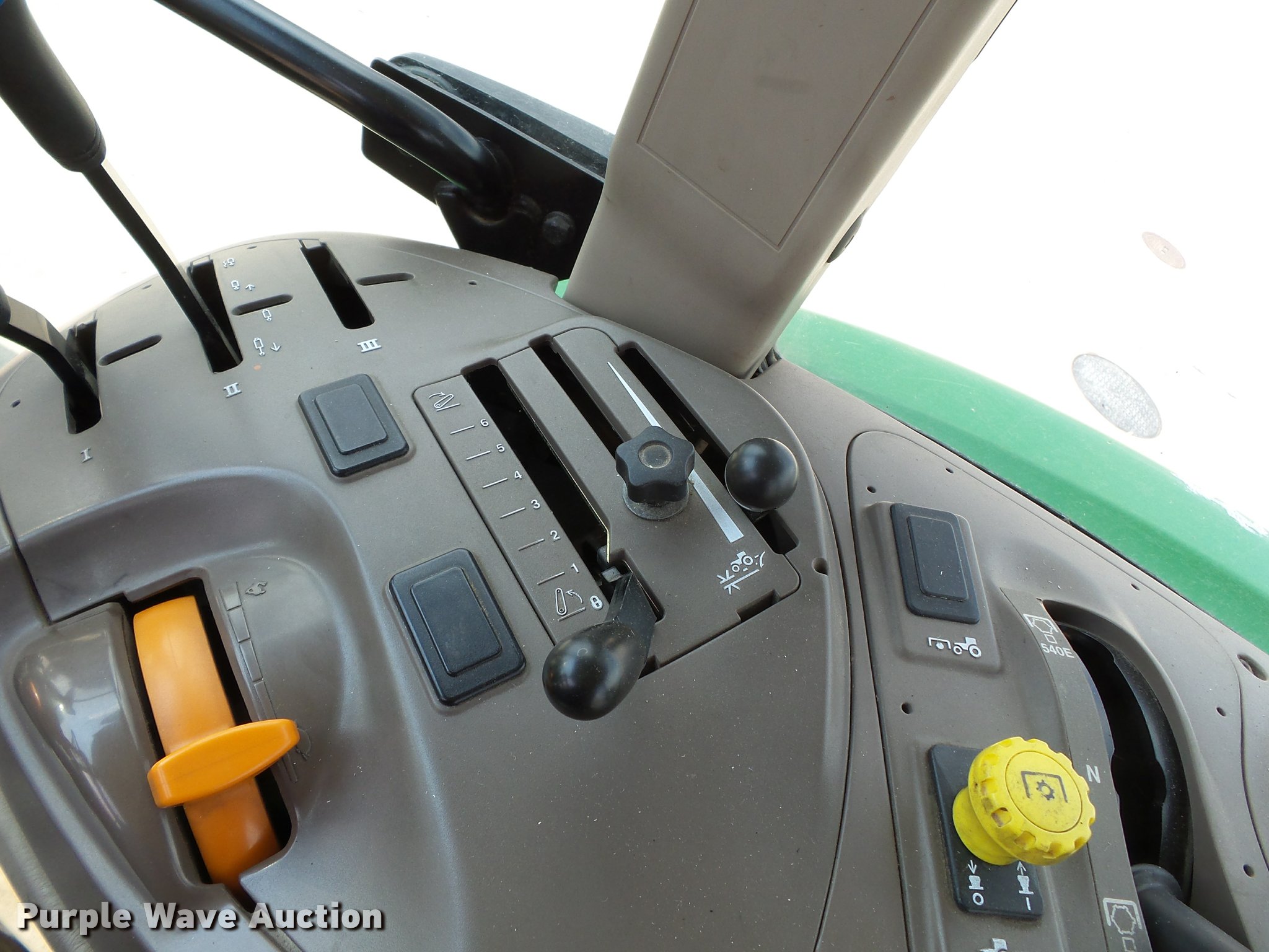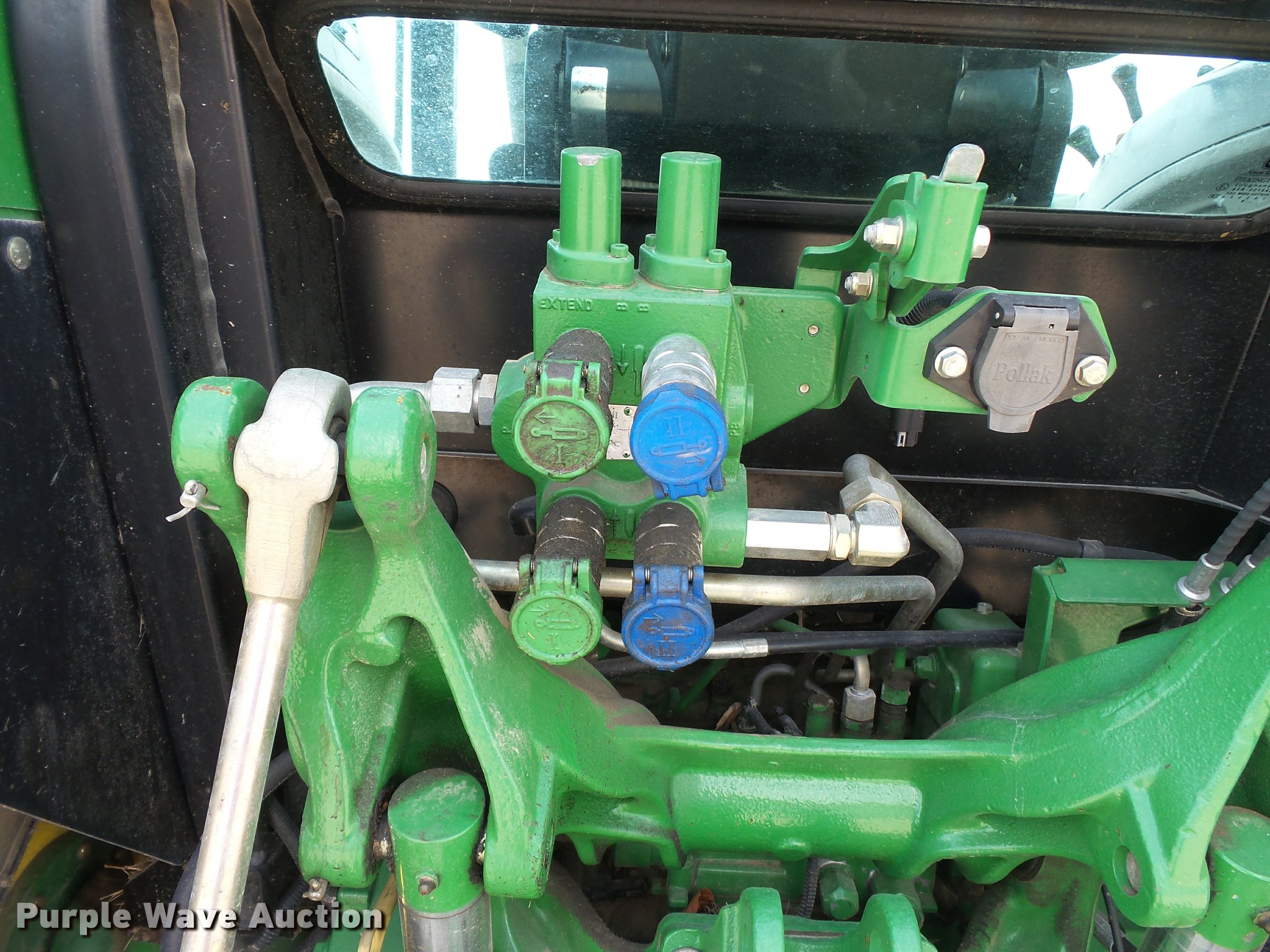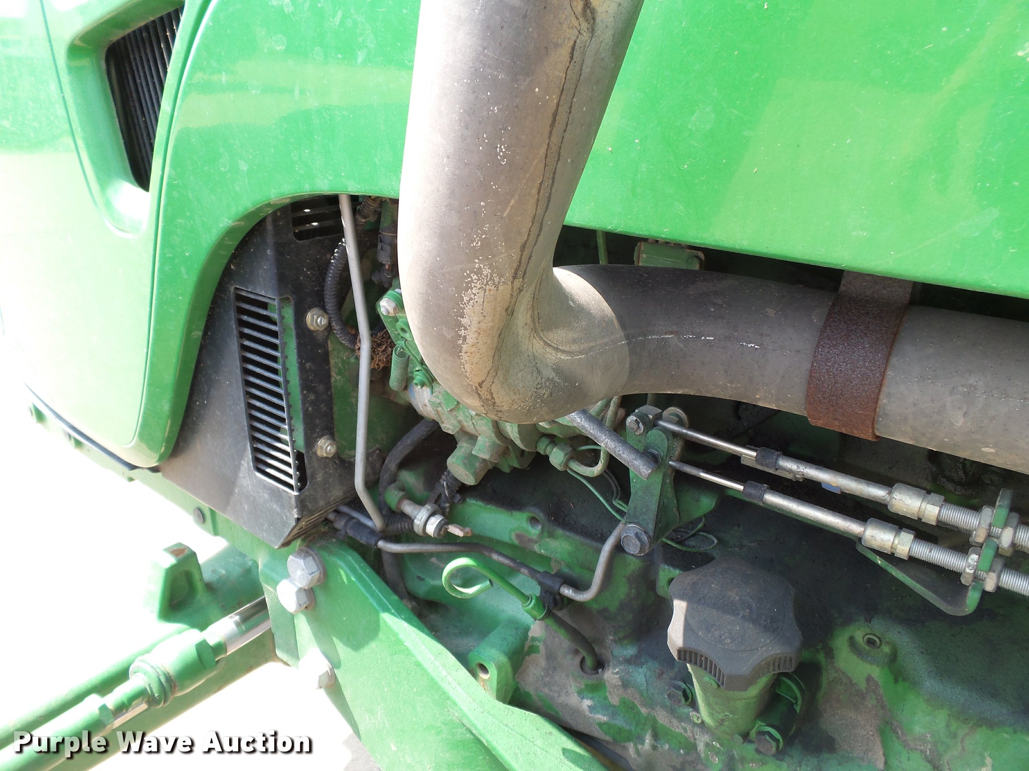 Purple Wave is selling a used Tractor in Missouri. This item is a 2009 John Deere 5095M MFWD tractor with the following: 4,400 hours on meter, John Deere 4045HL52 4.5L four cylinder diesel engine, Power reverser transmission, 4F-4R gears, Left-hand reverser, Differential lock, AC and heat, Tilt steering wheel, Suspension seat, Visor, Three point, Seven pin outlet, 540 PTO, Front hydraulic remote set, Joystick controls, (2) rear hydraulic remotes, 85.6" wheelbase, 12.4R24 front tires, 18.4-30 rear tires, Maintenance manual, No draw bar, Exhaust pipe bent, Serial LV5095M160249, Unit# 1224