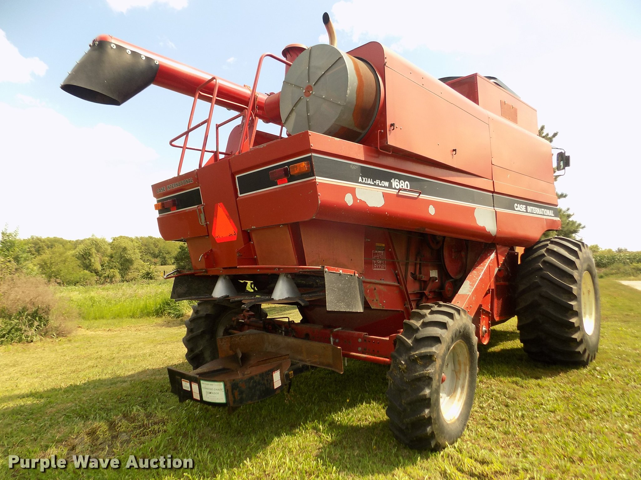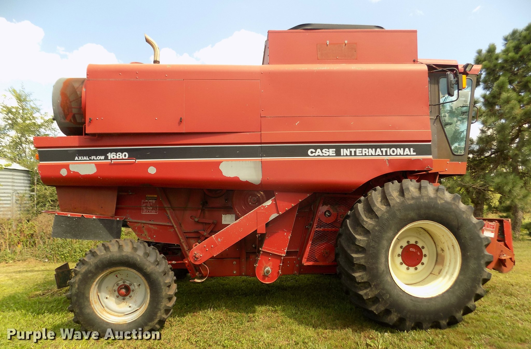 Purple Wave is selling a used Combine in Nebraska. This item is a 1990 Case IH 1680 Axial Flow combine with the following: 4,276 engine hours on meter, Case 6TA-830 six cylinder turbo diesel engine, Serial 44451128, 3F gears, Feederhouse, Lateral tilt, Reverser, AC and heat, Tilt steering wheel, AM/FM, Air suspension seat, Instructor's seat, Grain scan monitor, Field tracker system, Two speed rotor, Chaff spreader, Straw chopper, Manual folding bin extensions, Work lights, Rear hitch, Operator manual, 30.5L-32 front tires, 14.9-24 rear tires, Serial 172291, JJC0047572