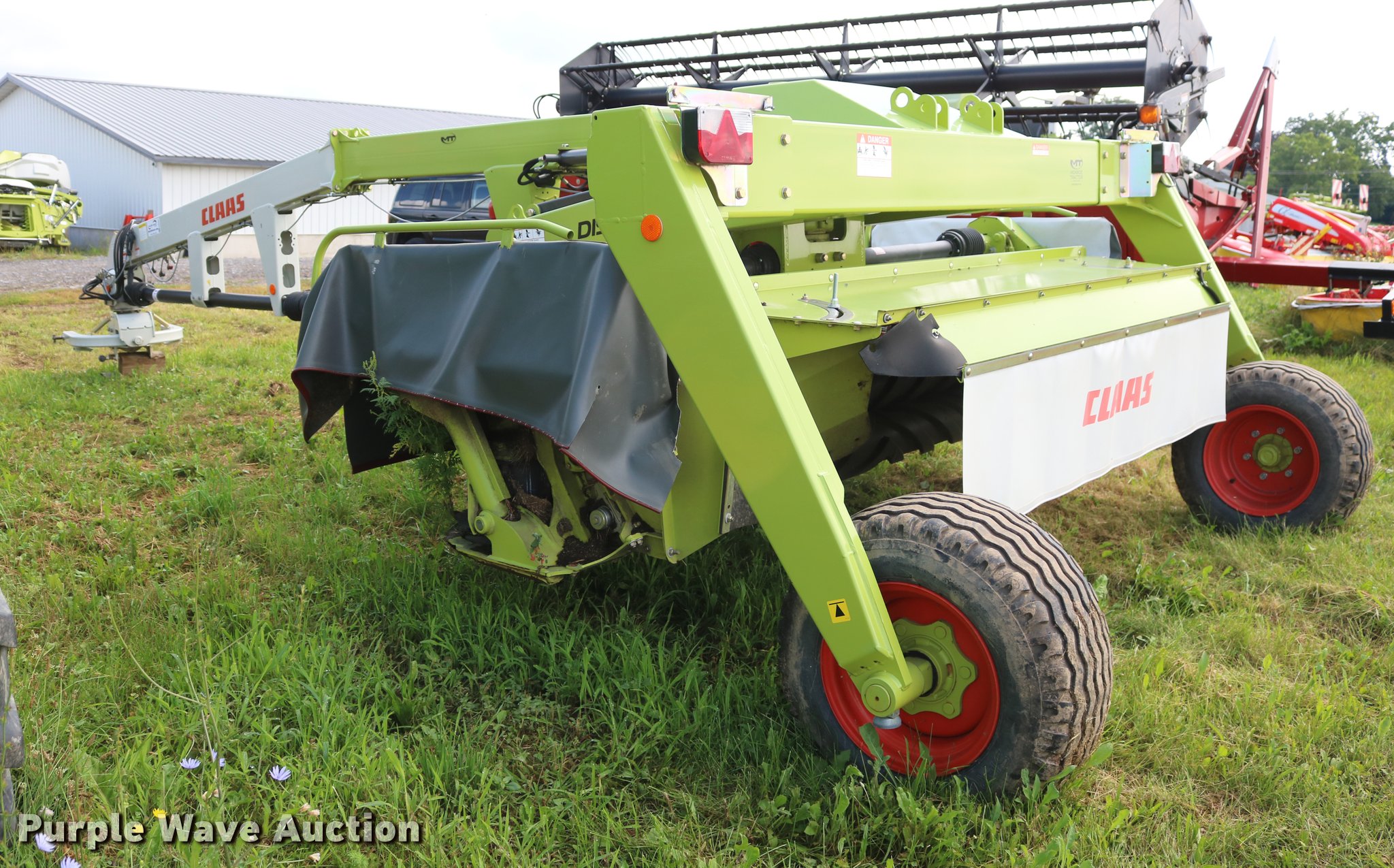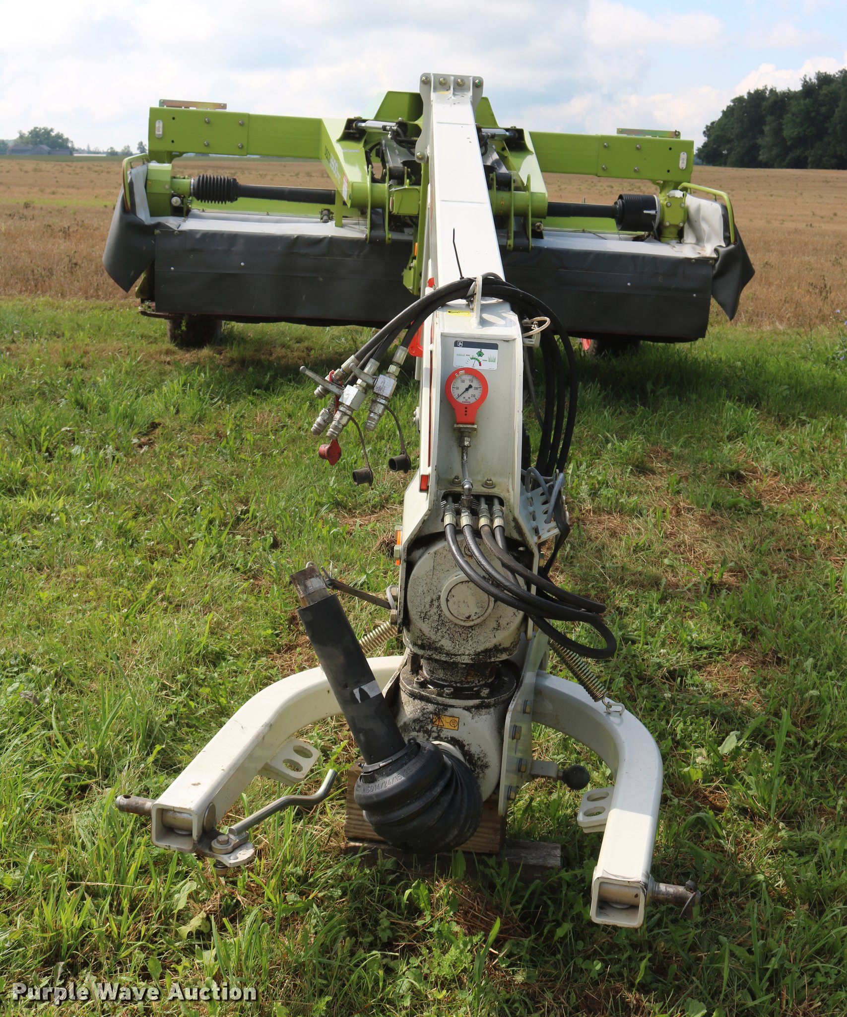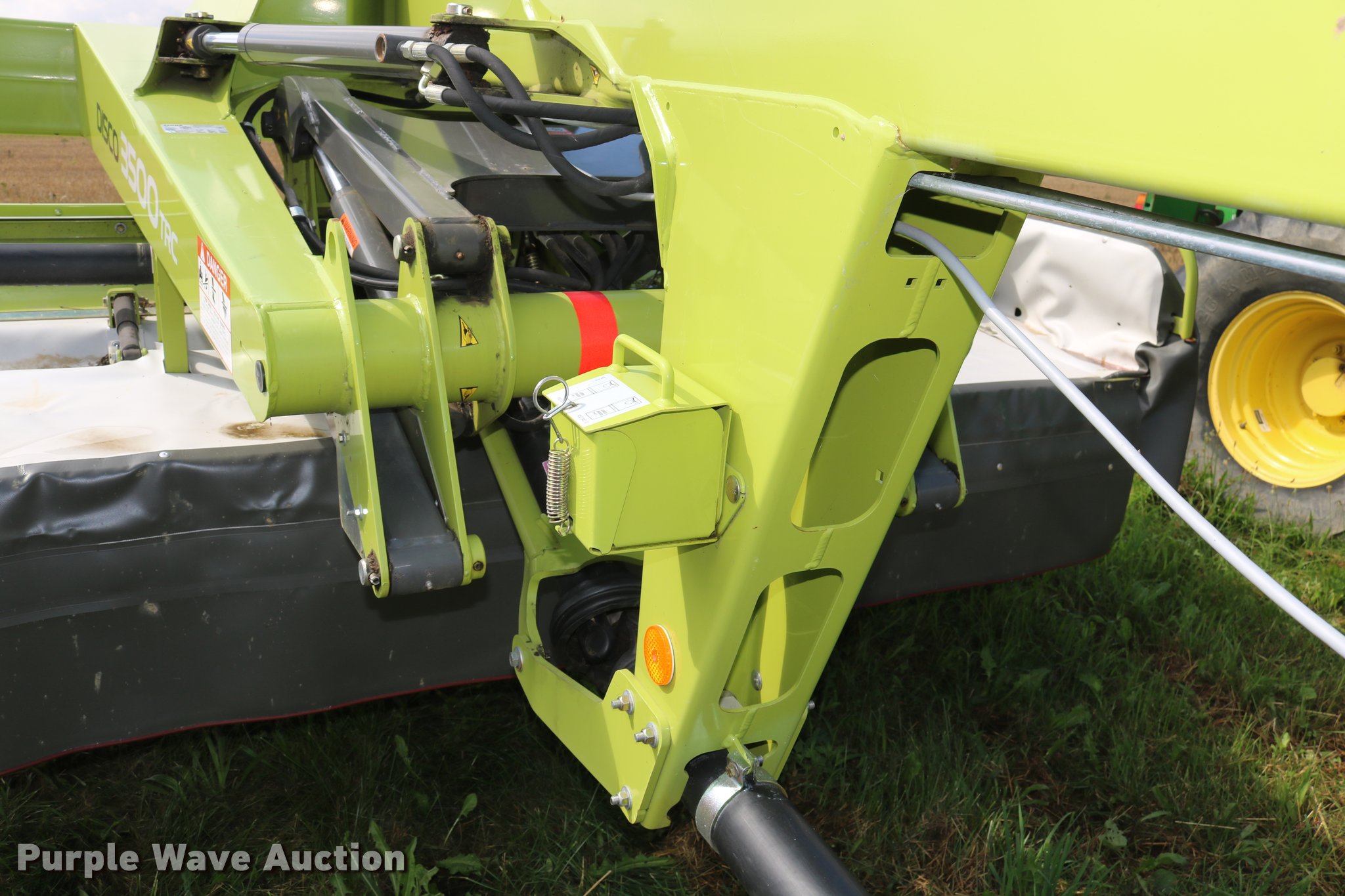 Purple Wave is selling a used Disc or Sickle Mower in New York. This item is a 2014 Claas 3500TRL disc mower with the following: 11'W disc head, Rubber/rubber conditioners, Two point swivel hitch, Active float hydropneumatic suspension, 340/55R16 tires, Serial F5201252