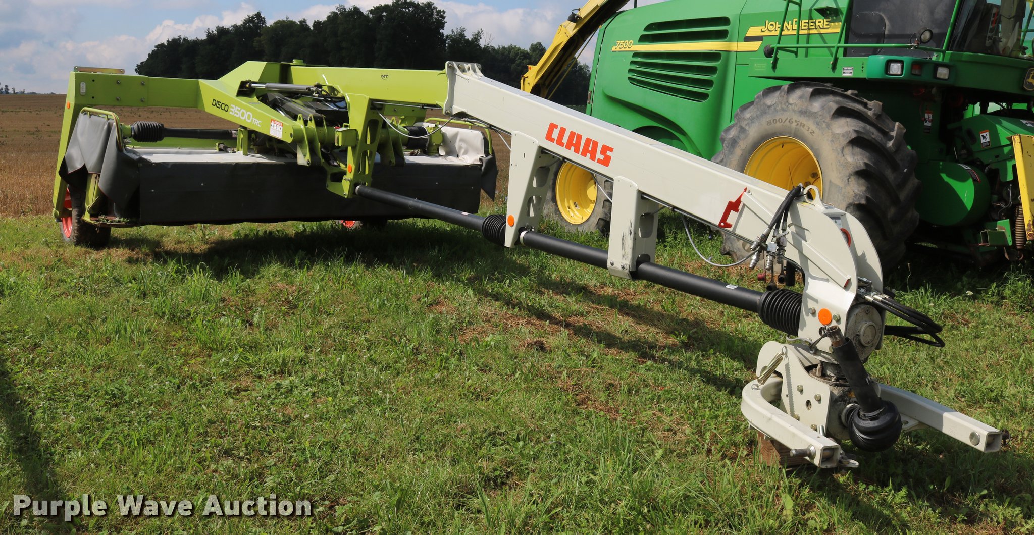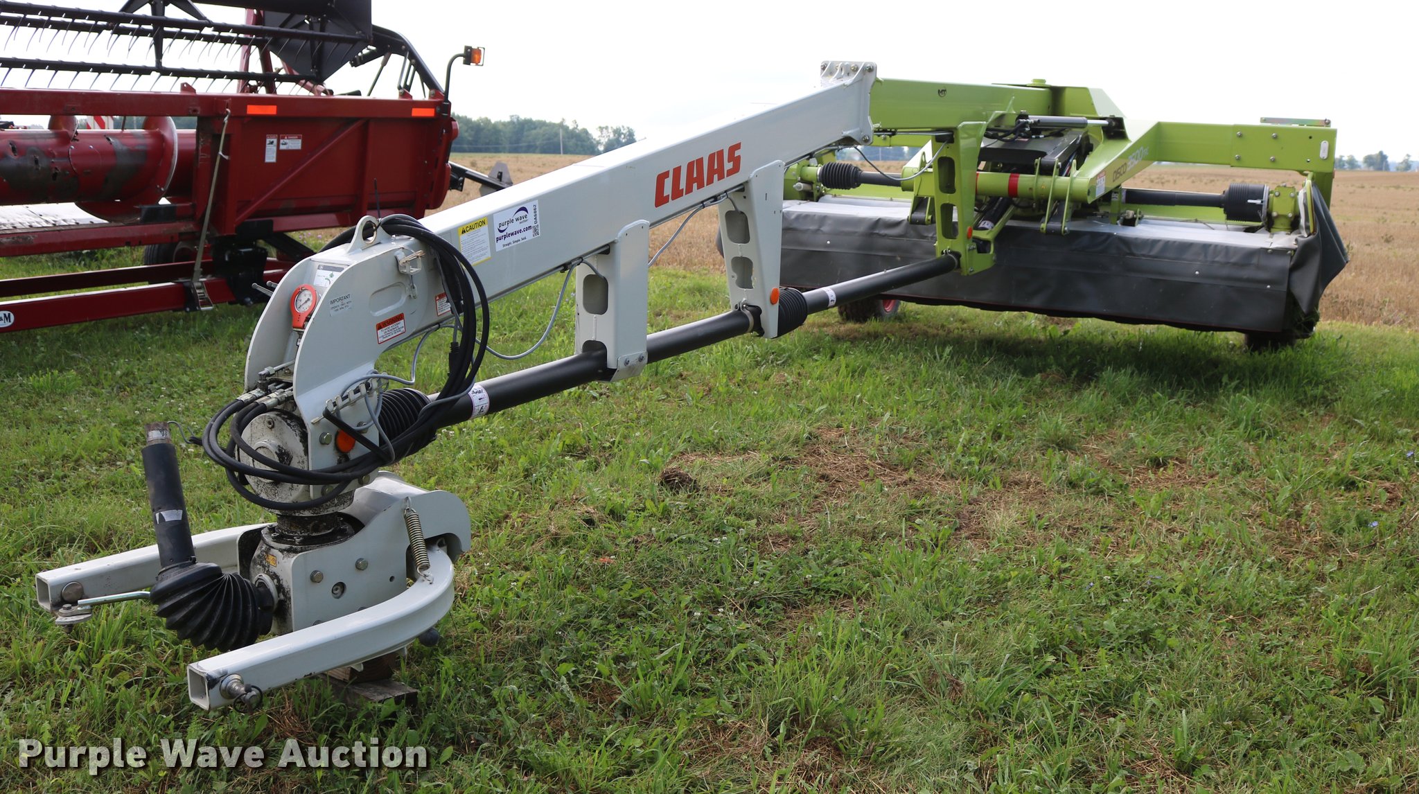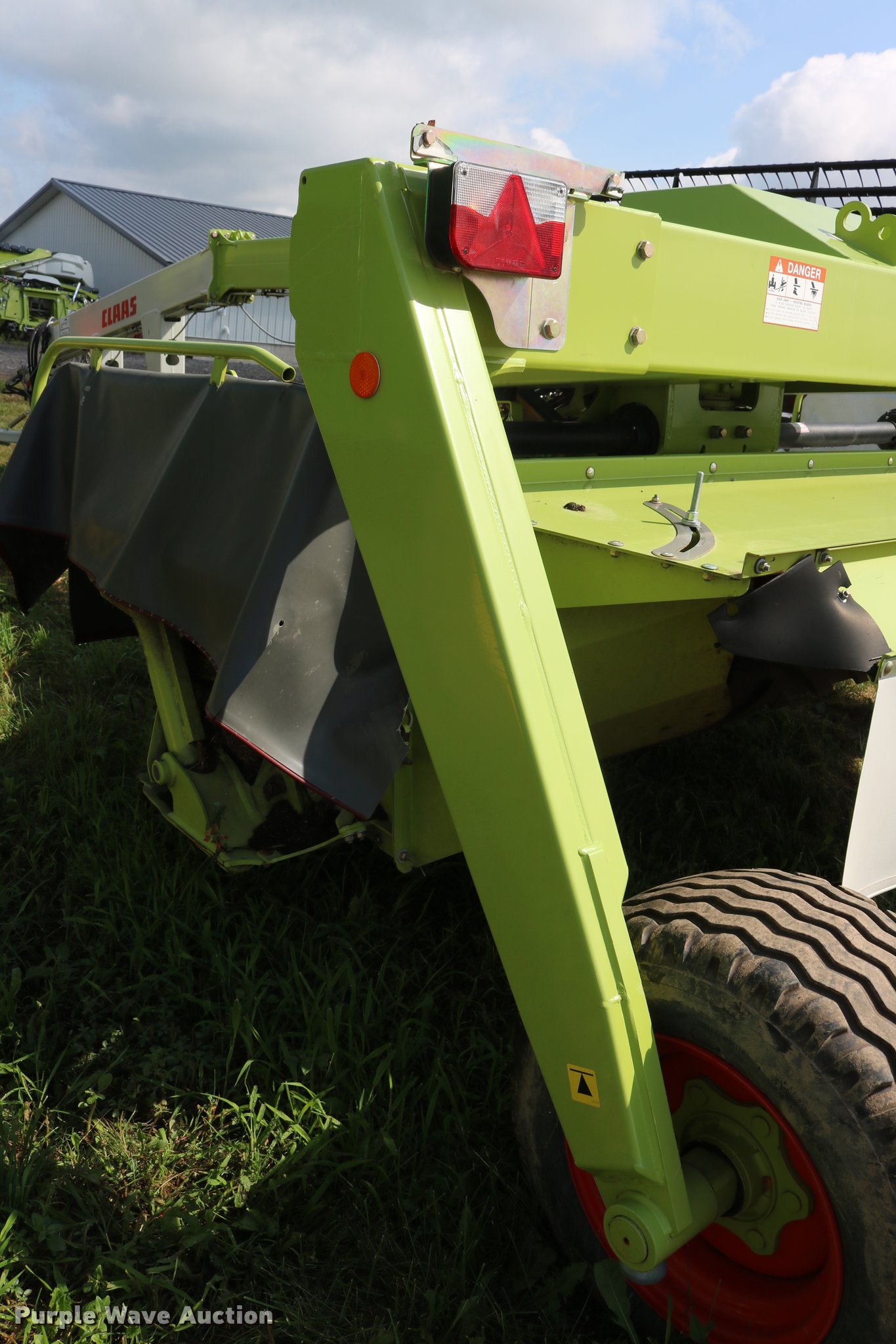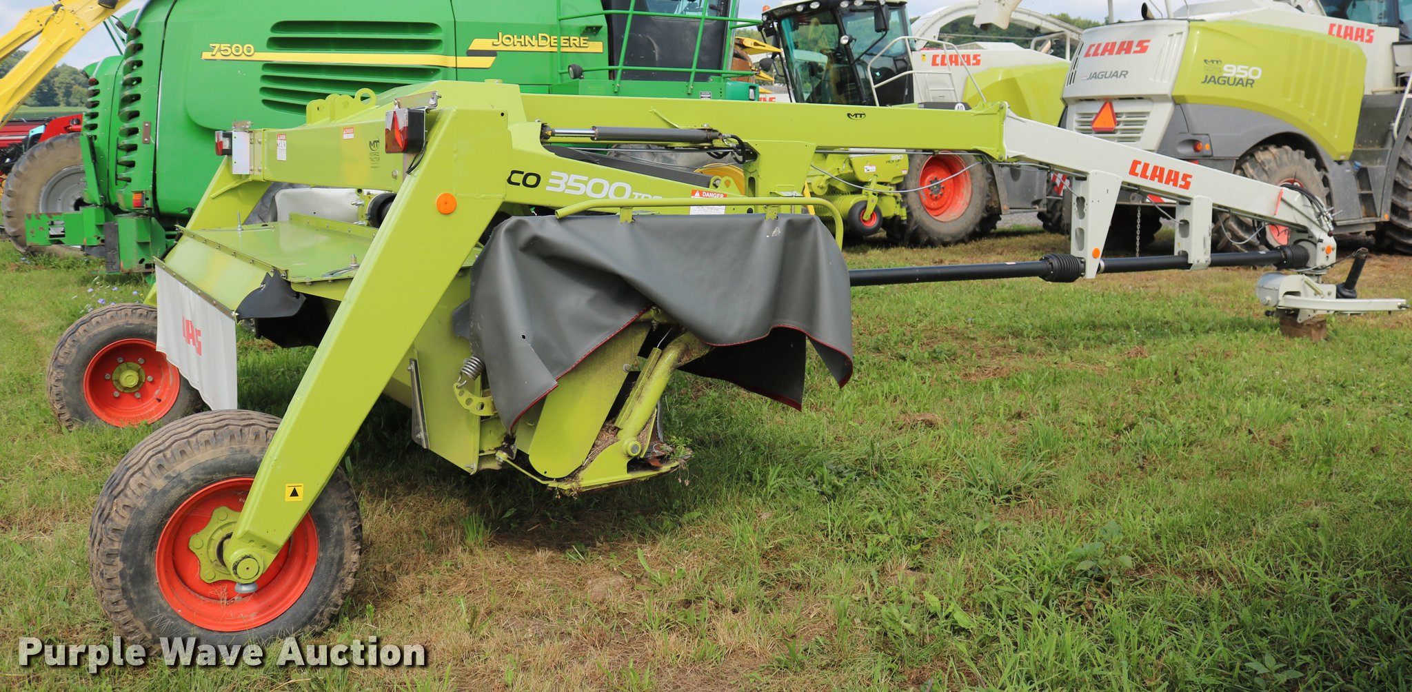 Purple Wave is selling a used Disc or Sickle Mower in New York. This item is a 2014 Claas 3500TRL disc mower with the following: 11'W disc head, Rubber/rubber conditioners, Two point swivel hitch, Active float hydropneumatic suspension, 340/55R16 tires, Serial F5201252