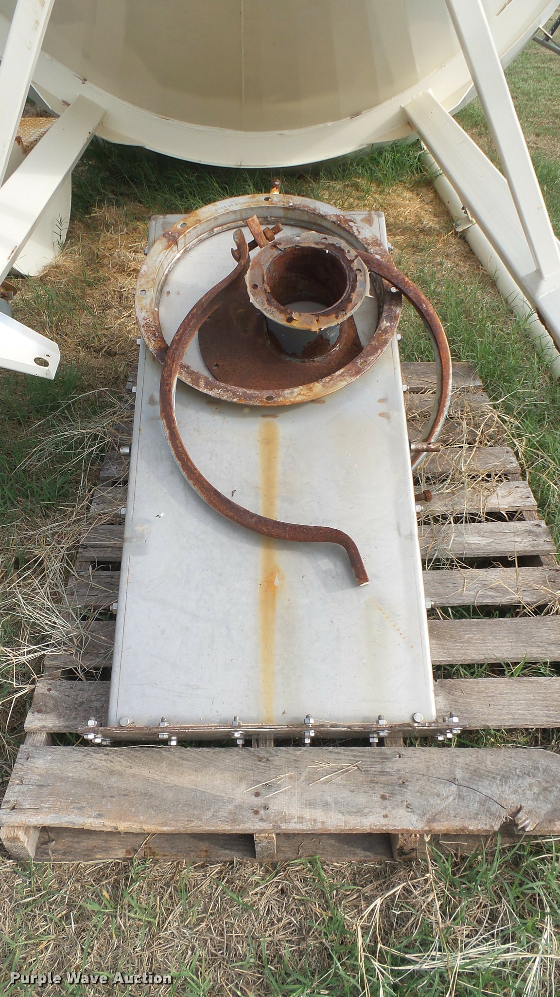 Purple Wave is selling a used Other Grain or Fertilizer Handling in Kansas. This item is a Friesen steel cone bottom grain bin with the following: Approx. 12'W x 23'H, Approx. 40 ton capacity, Pneumatic fill tube, Top flip lid, Access ladder, (4) lifting eyes, Stainless steel auger boot, 3" x 5" legs, Previously used for fertilizer