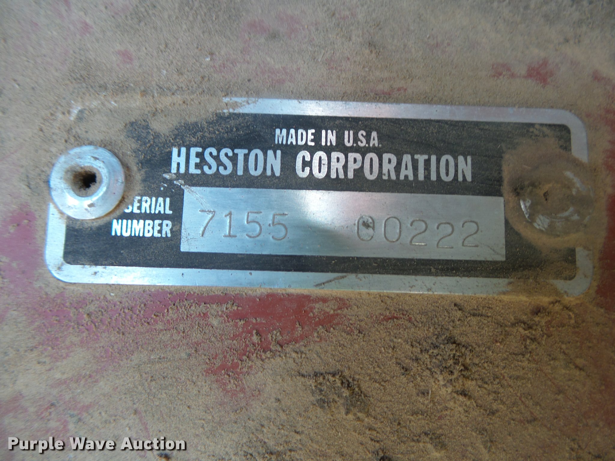 Purple Wave is selling a used Forage Harvester in Missouri. This item is a Hesston 7155 forage harvester with the following: 9'W overall, Electric operated chute, Electric operated deflector, Chopping corn head, Two row, 38" row spacing, Single driveline, Pickup head, 6'W, Single driveline, 1000 PTO, Pin hitch, 50R15 tire, 11-15L tire, Serial 00222