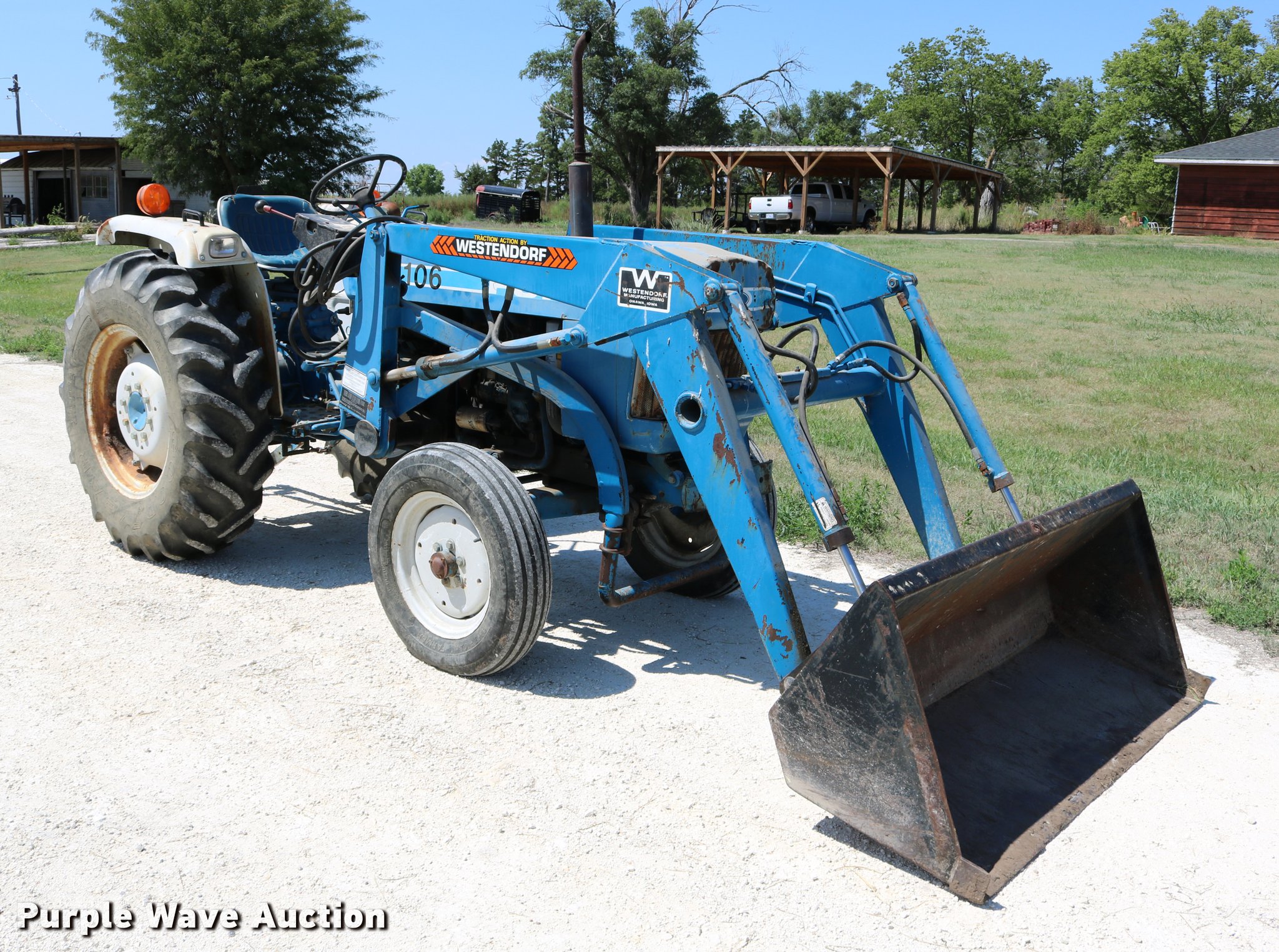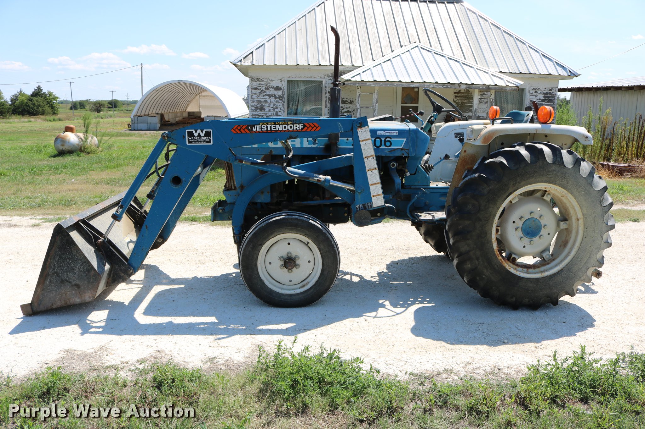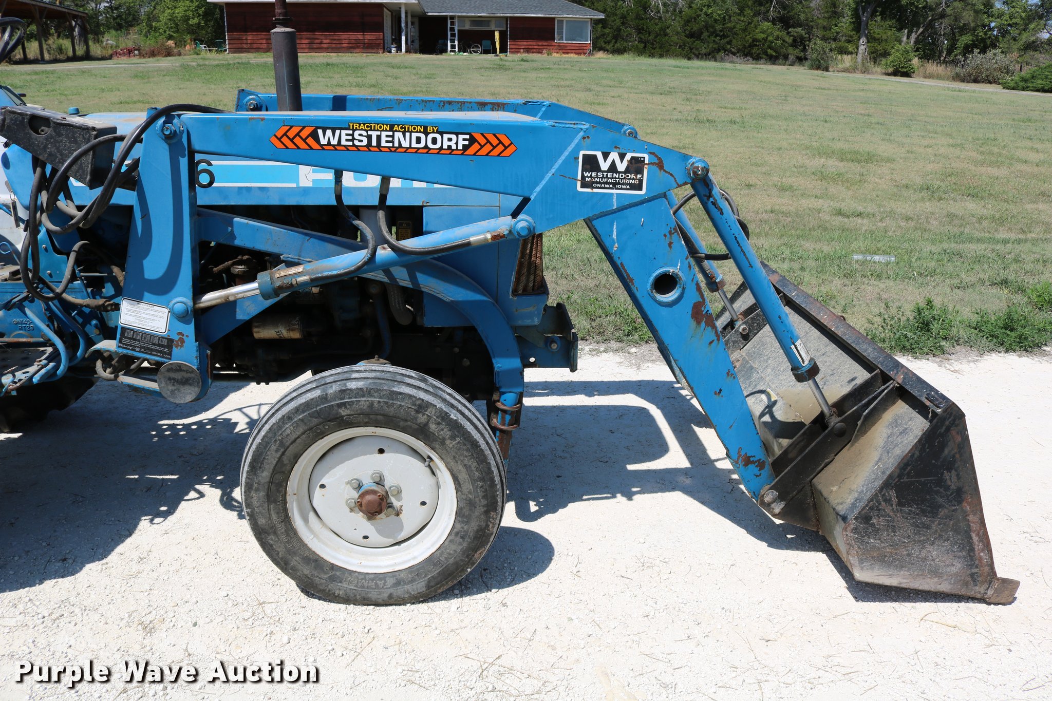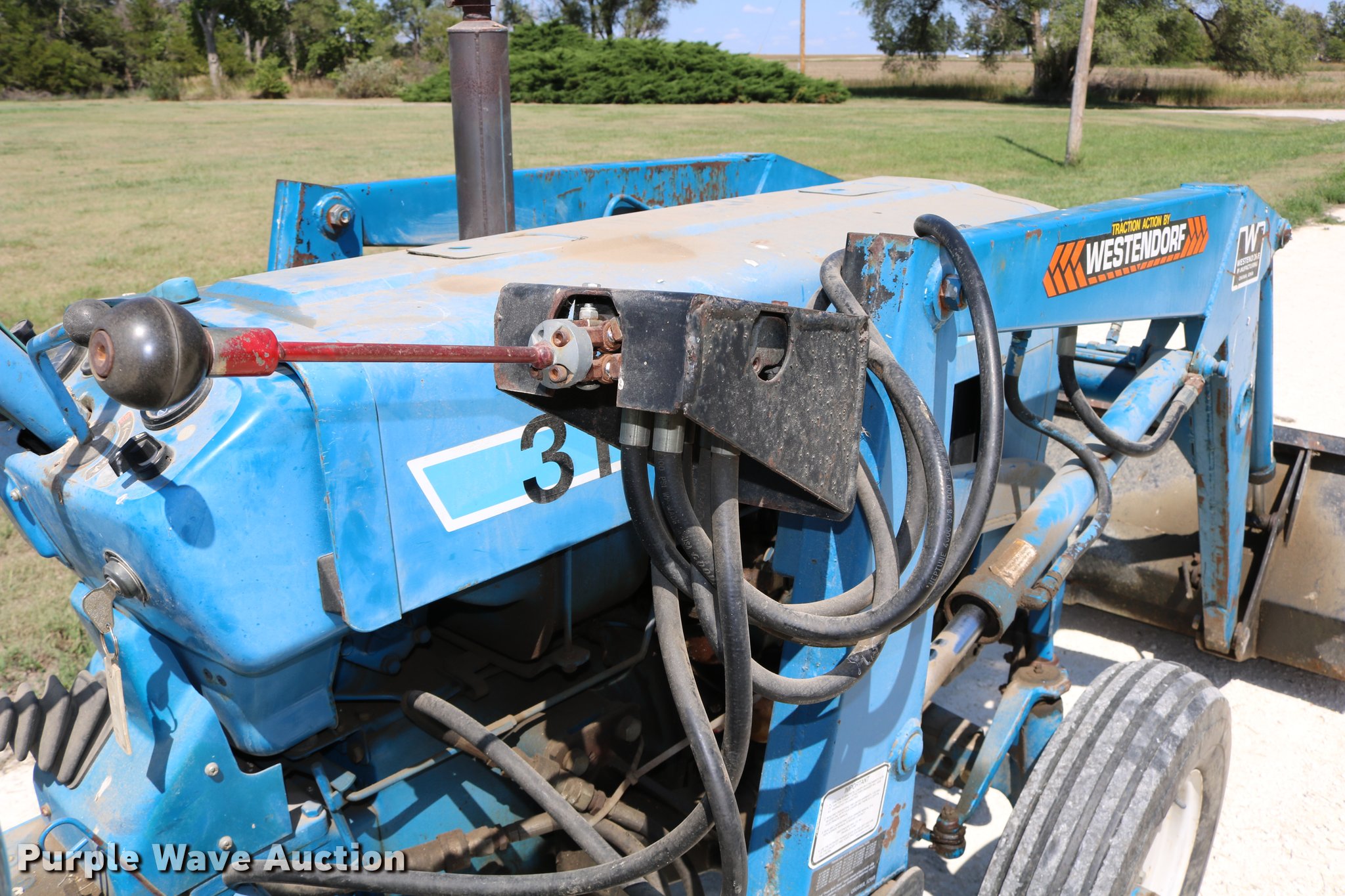 Purple Wave is selling a used Tractor in Kansas. This item is a Ford AP3136 tractor with the following: Three cylinder diesel engine, Serial T853A-13617, Manual transmission, 12F-4R gears, Westendorf TA111 loader, 60"W bucket, Serial 600109A, Joystick controls, Three point, Top link, 540 PTO, Front hydraulic remote set, 67" wheelbase, 6.00-16 front tires, 13.6-24 rear tires, Serial UP03323