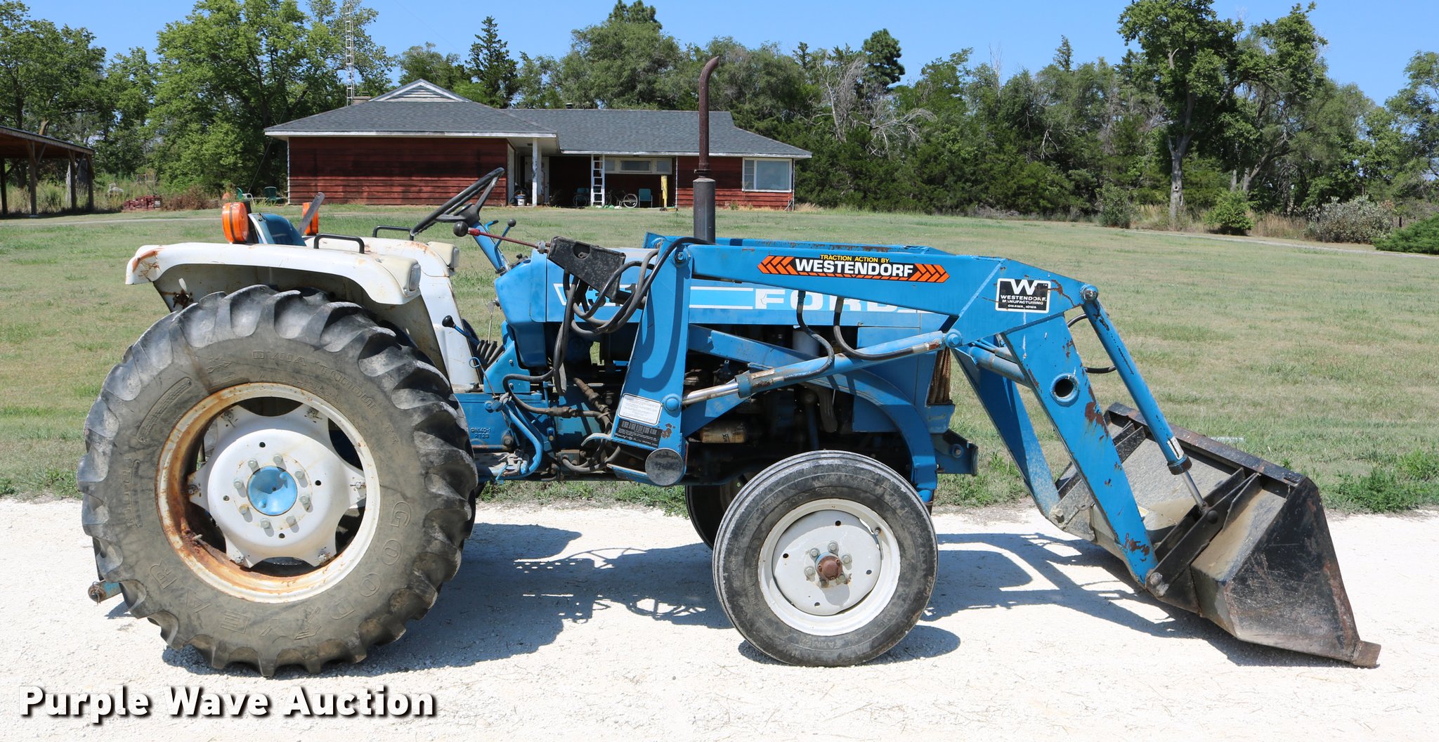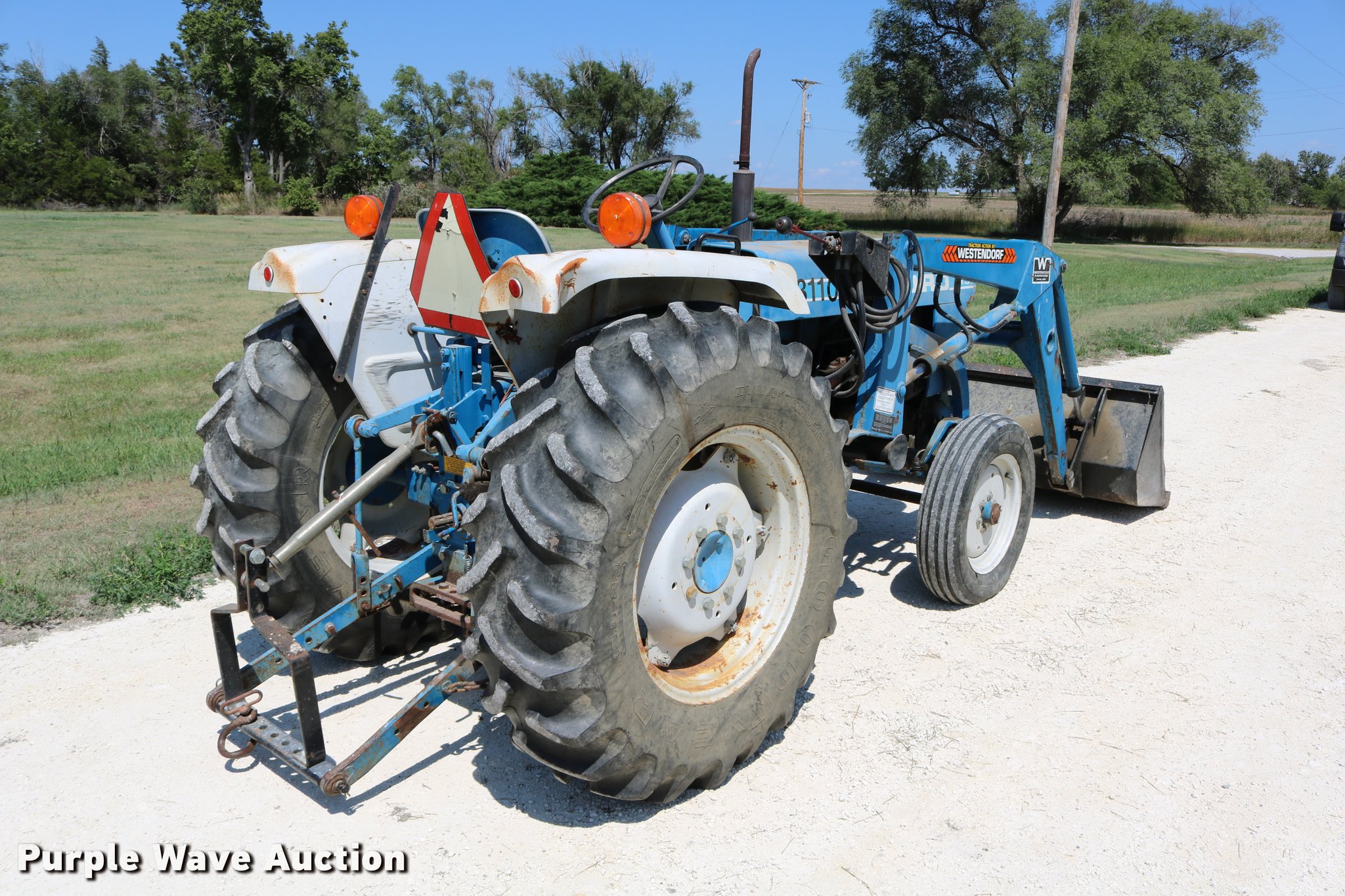 Ford AP3136 tractor. Three cylinder diesel engine Serial T853A-13617, Manual transmission 12F-4R gears, Westendorf TA111 loader 60"W bucket Serial 600109A, Joystick controls, Three point Top link, 540 PTO, Front hydraulic remote set, 67" wheelbase, 6.00-16 front tires, 13.6-24 rear tires, Serial UP03323. 310 Emma St. Harlan, KS 66967