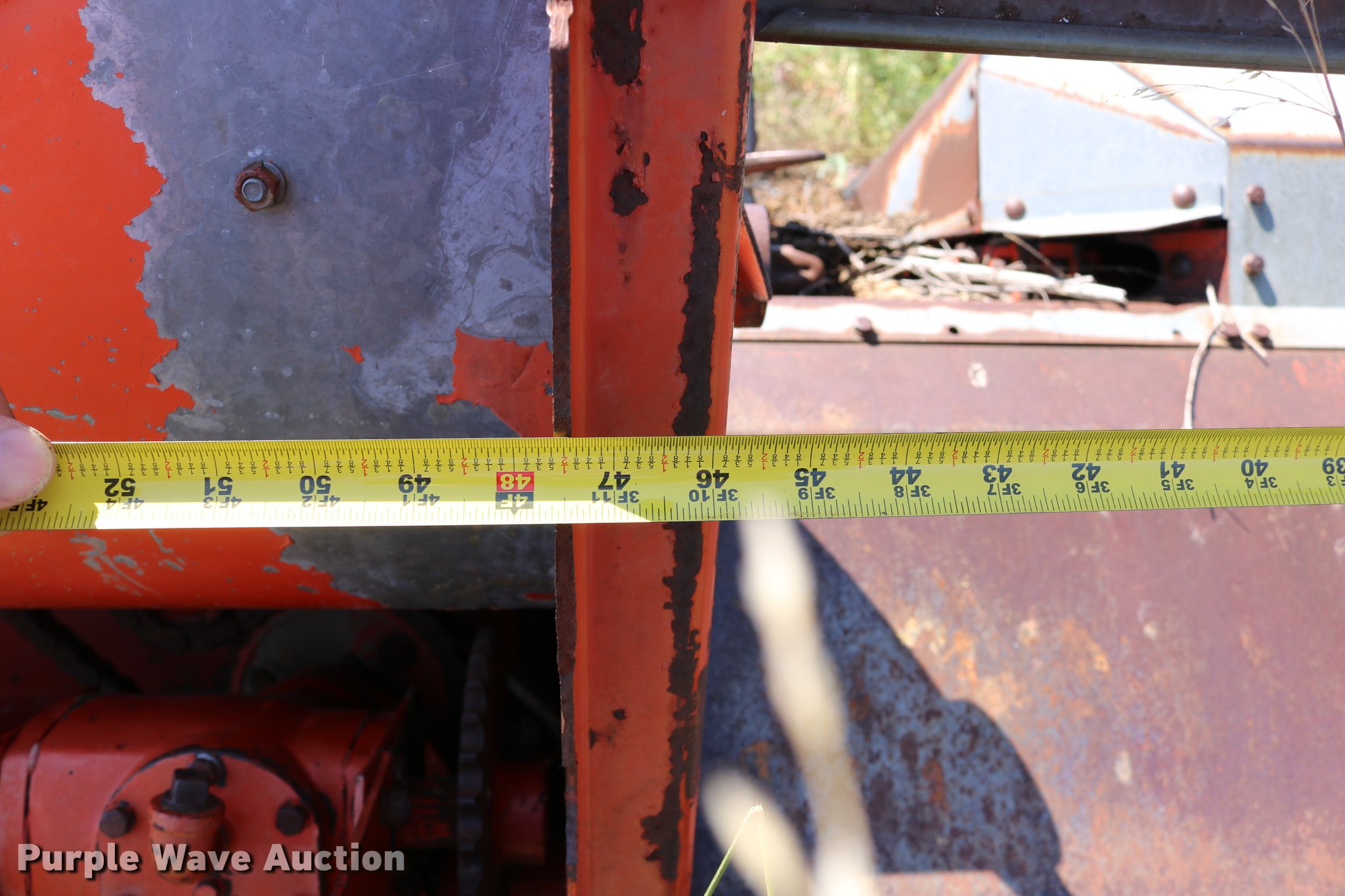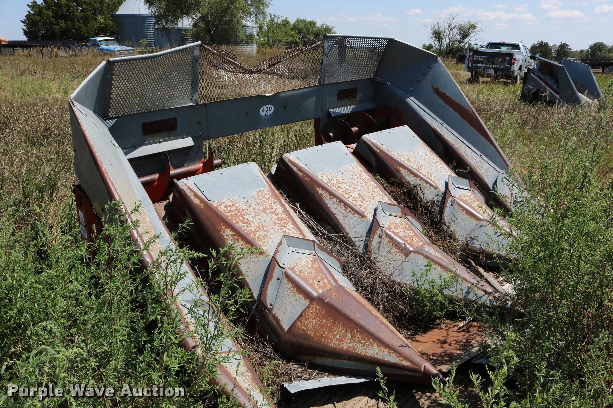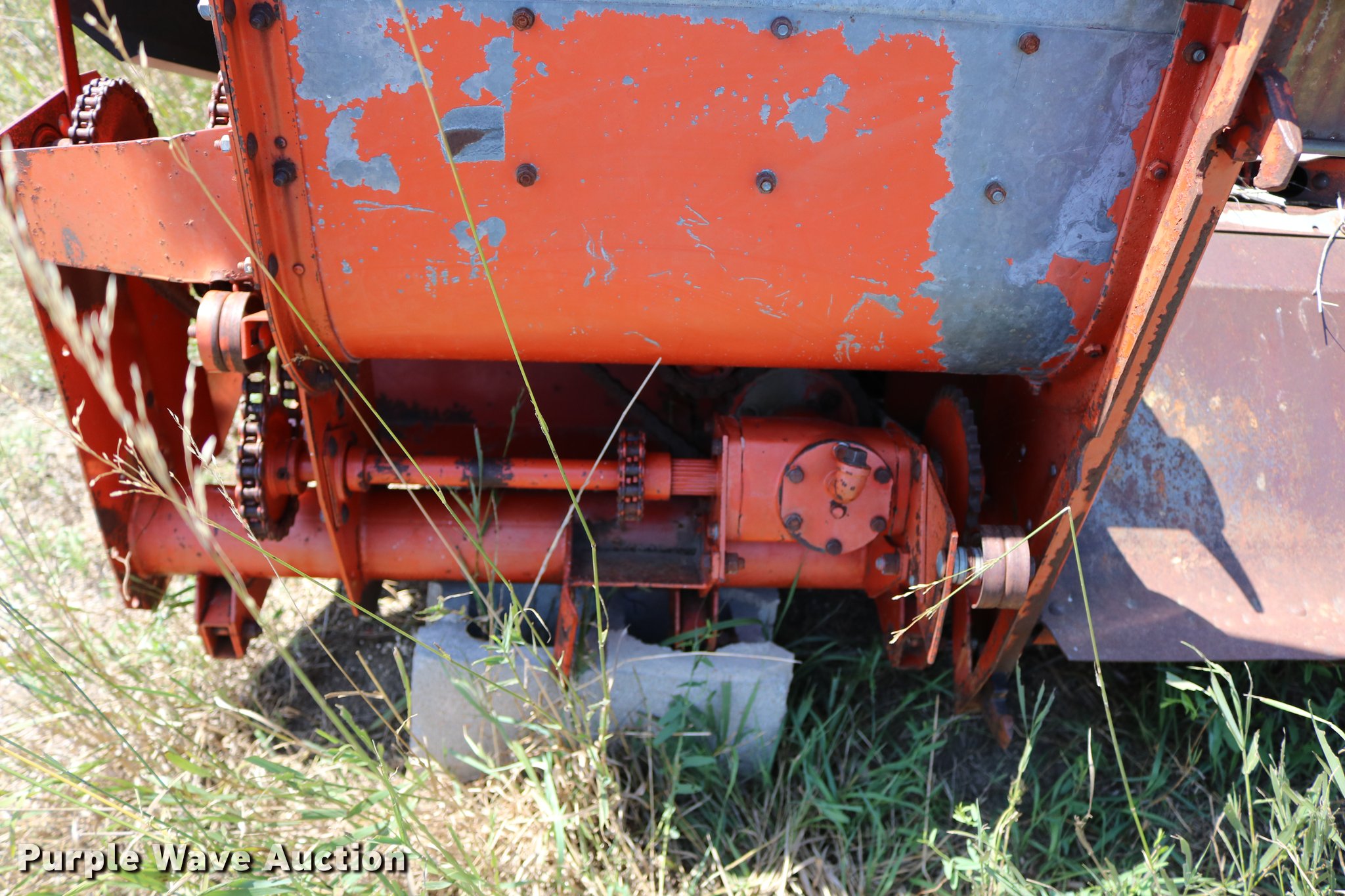 Purple Wave is selling a used Corn or Row Head in Kansas. This item is a Allis Chalmers corn head with the following: Four rows, 30" row spacing, Chain driven, Unknown operating condition, Serial 5570930494