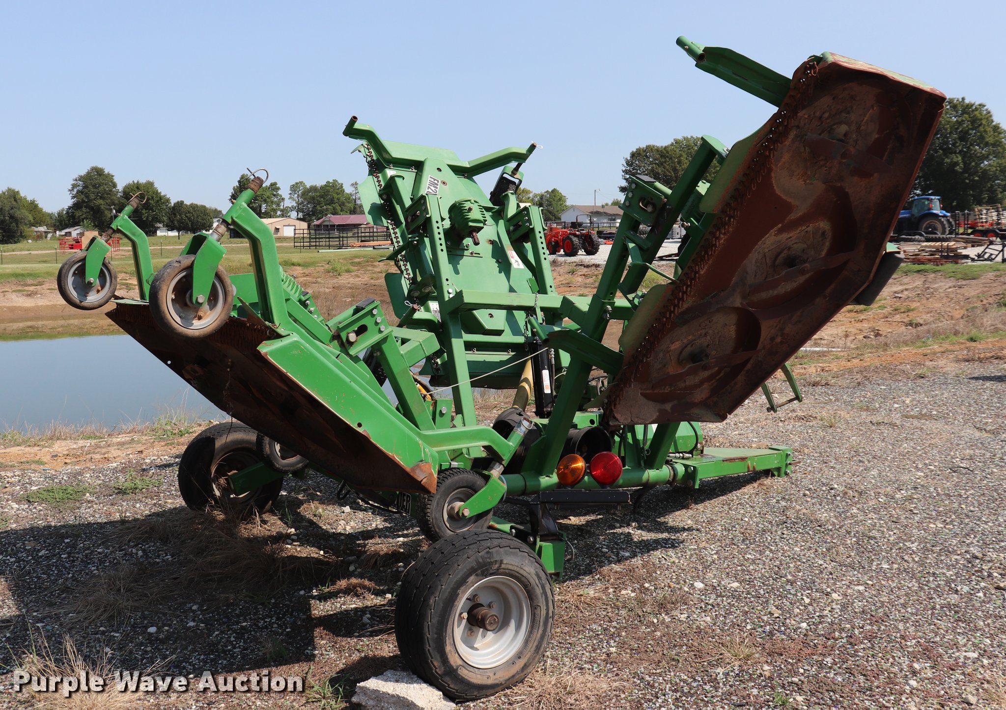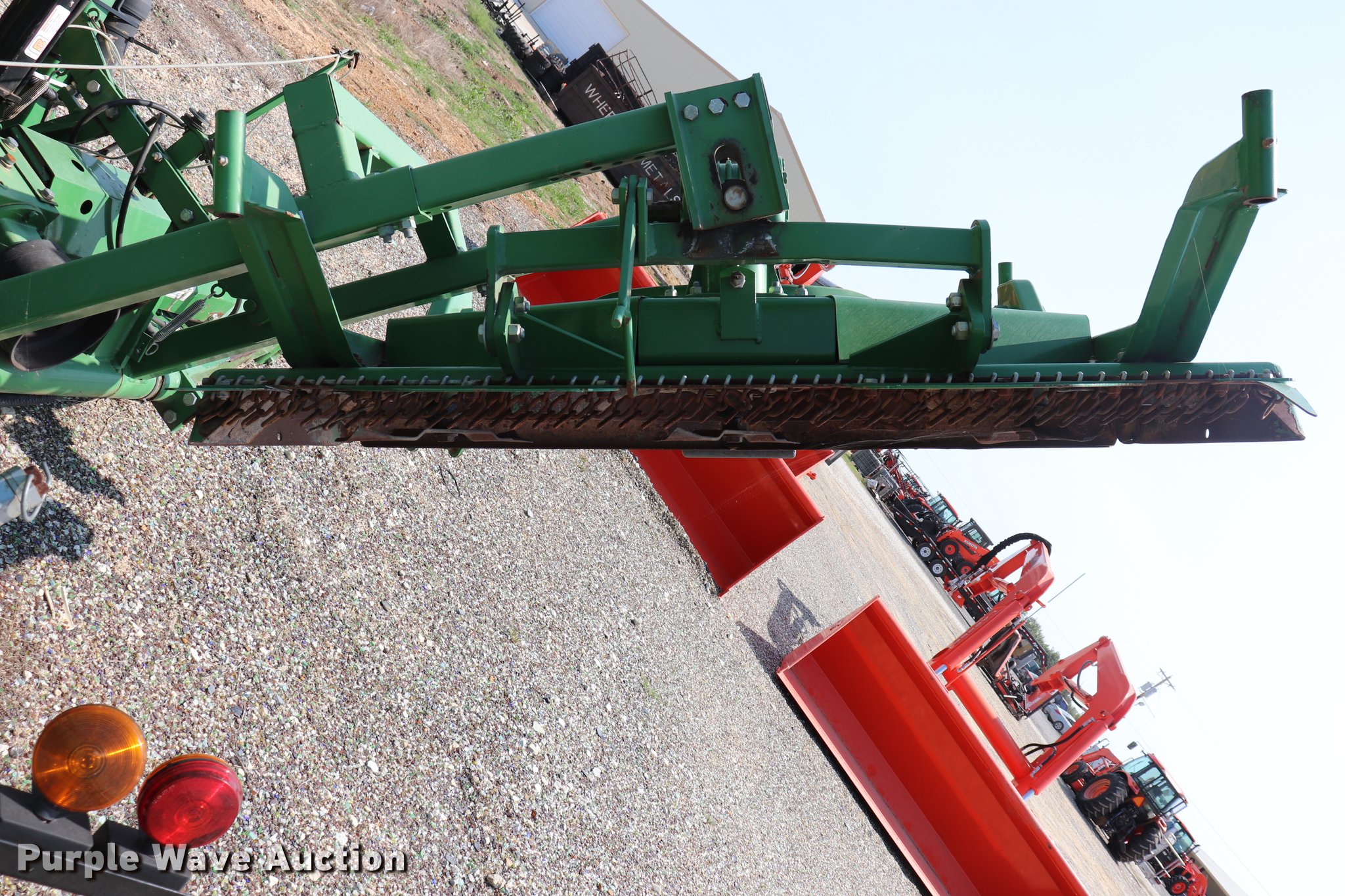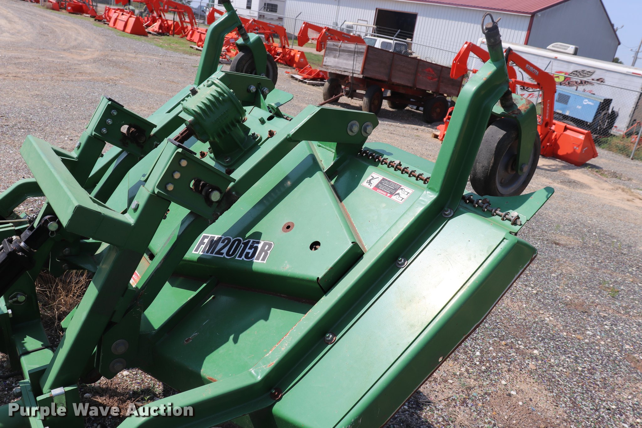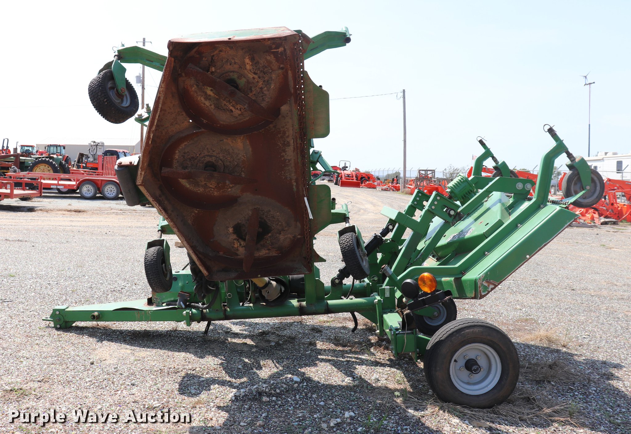 Purple Wave is selling a used Mower, Cutter, Shredder in Oklahoma. This item is a Finish mower with the following: Model FM2015R, Approx. 10'W, Hydraulic lift and fold, (9) 24"W blades, 540 PTO, Pin hitch, (10) 11x4.00 tires, (2) 20.5x8.0-10 tires, (2) 10" solid rubber tires, Five tires missing, Non-operational unit, parts only, PTO shafts missing, Light lenses missing, Serial XFEM2, Stock# 271649