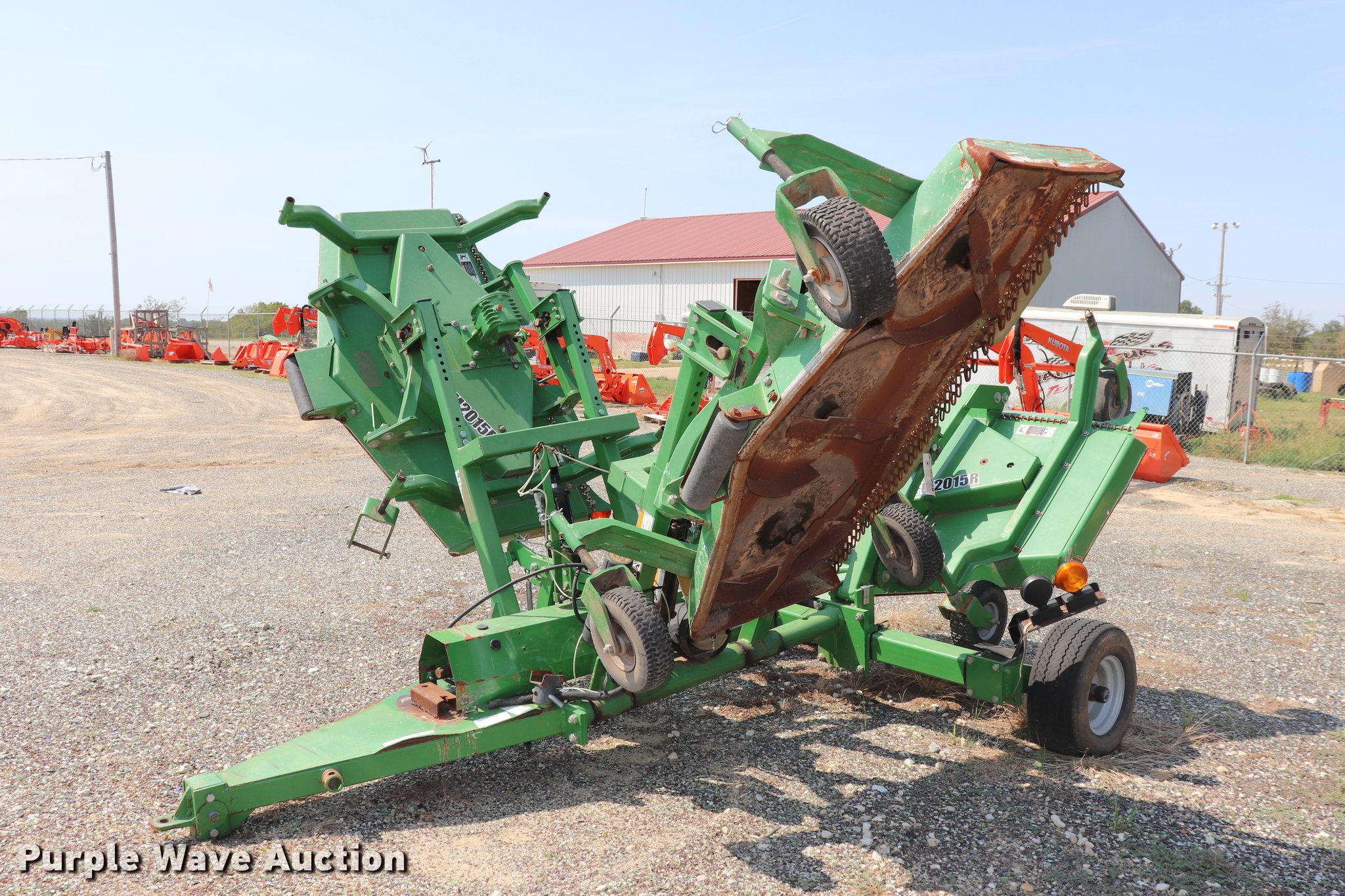 Finish mower. Model FM2015R, Approx. 10'W, Hydraulic lift and fold, (9) 24"W blades, 540 PTO, Pin hitch, (10) 11x4.00 tires, (2) 20.5x8.0-10 tires, (2) 10" solid rubber tires, Five tires missing, Non-operational unit, parts only, PTO shafts missing, Light lenses missing, Serial XFEM2, Stock# 271649. Stewart Martin Equipment. 12751 Hwy 75. Okmulgee, OK 74447