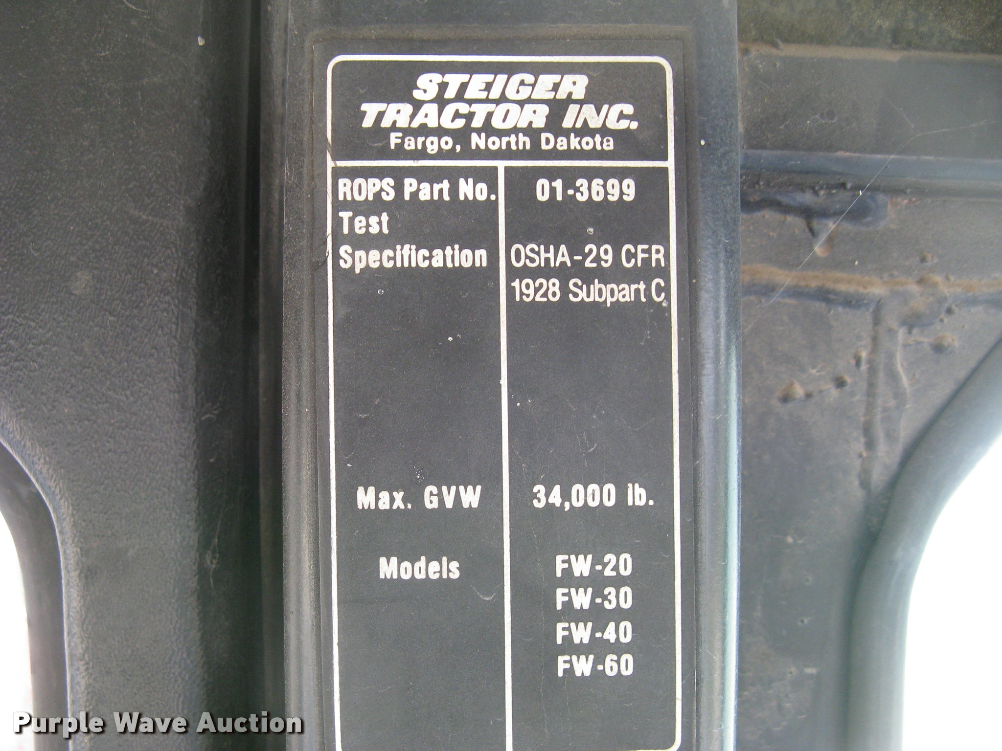 Purple Wave is selling a used Articulated 4-Wheel Drive Tractor in Kansas. This item is a Ford FW60 4WD tractor with the following: 4,705 hours on meter, Cummins 903 eight cylinder turbo diesel engine, 295 HP, Serial 69982, Manual transmission, 10F-2R gears, AC and heat, Non-operational AC, Tilt steering wheel, AM/FM, Block heater, (3) rear hydraulic remote sets, 20.8R38 tires, Serial X300035