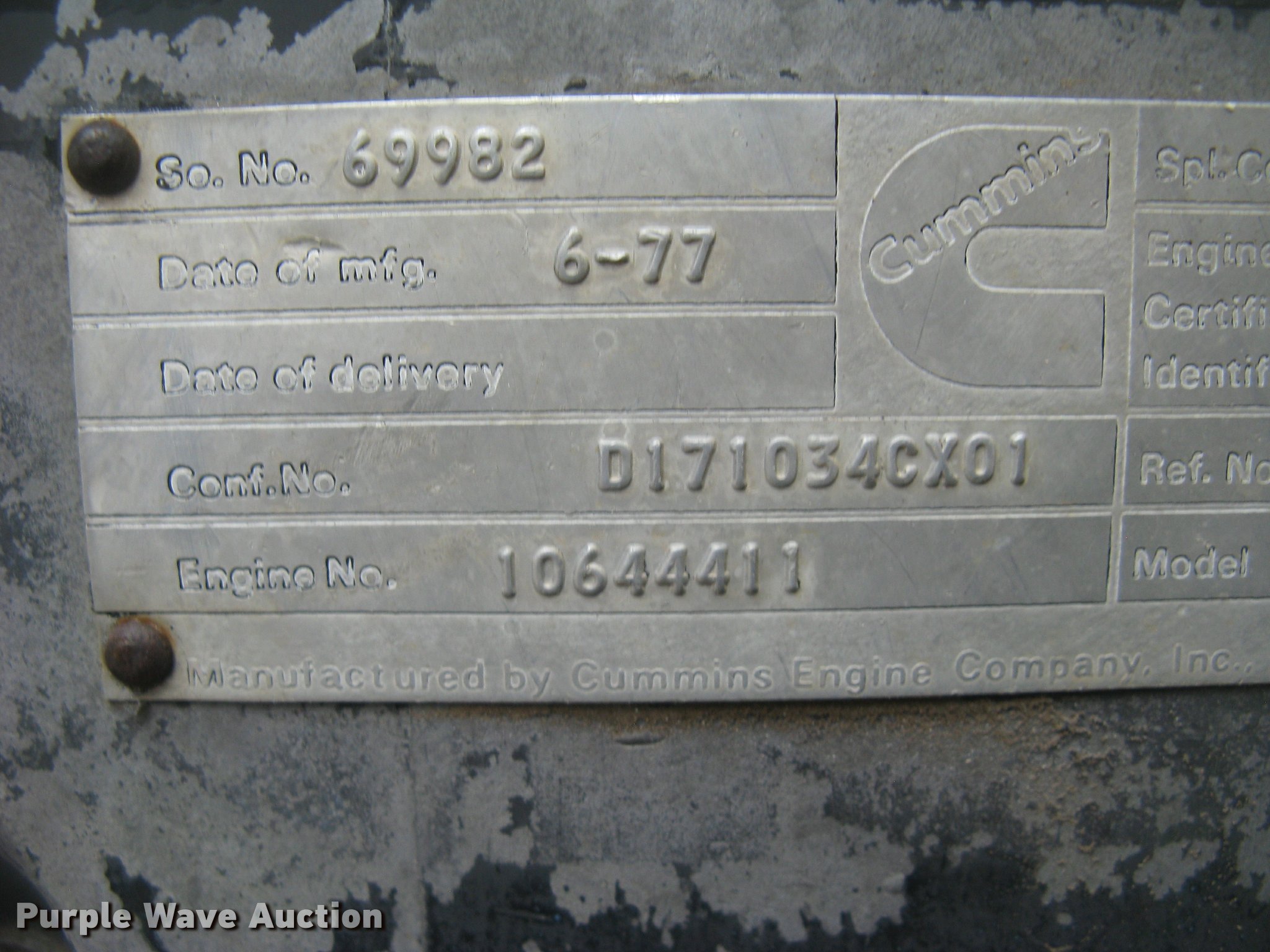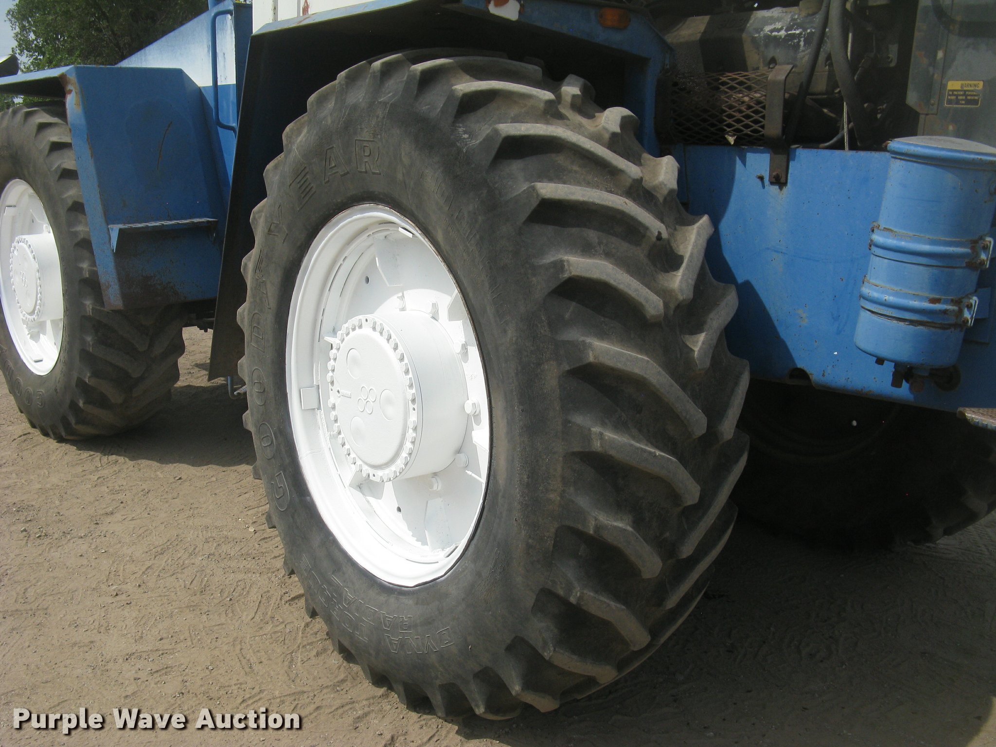 Ford FW60 4WD tractor. 4,705 hours on meter, Cummins 903 eight cylinder turbo diesel engine 295 HP, Serial 69982, Manual transmission 10F-2R gears, AC and heat Non-operational AC, Tilt steering wheel, AM/FM, Block heater, (3) rear hydraulic remote sets, 20.8R38 tires, Serial X300035. Mardis Industries Inc.. 6900 S Minnesota St. Wichita, KS 67216