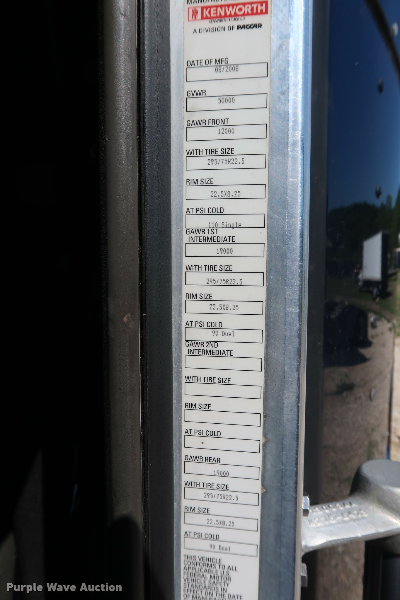 Purple Wave is selling a used Truck Tractor in Missouri. This item is a 2009 Kenworth T660 semi truck with the following: 861,510 miles on odometer, 17,433 hours on meter, Caterpillar C15 Acert 14.6L L6 turbo diesel engine, 475 HP, Automatic transmission, Tandem axle, Inter-axle differential lock, AC and heat, Tilt, Cruise, Power locks and mirrors, Air suspension seat, Air ride cab, Sleeper, Double bunk beds, Storage cabinets, Refrigerator, Rear climate control, Dump valves, Single exhaust stack, Aluminum deck plate, Air operated sliding fifth wheel plate, Air locking fifth wheel pin, Dual fuel tanks, Quarter fenders, Mud flaps, Air brakes, Engine brake, 3:36 gear ratio, Aluminum outer wheels, Steel front and inner wheels, 295/75R22.5 front tires, 11R22.5 rear tires, GVWR 50,000 lbs, FAWR 12,000 lbs, IAWR 19,000 lbs, RAWR 19,000 lbs
