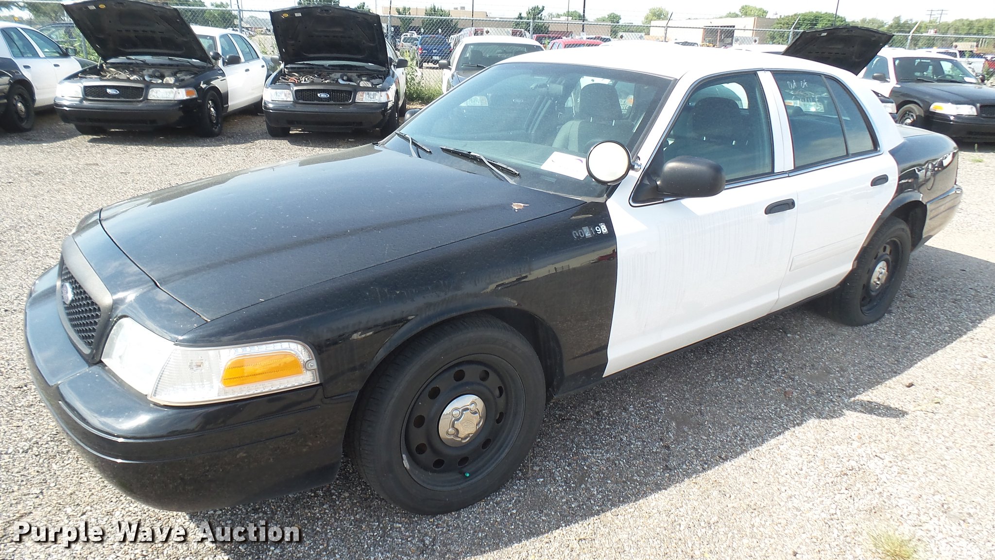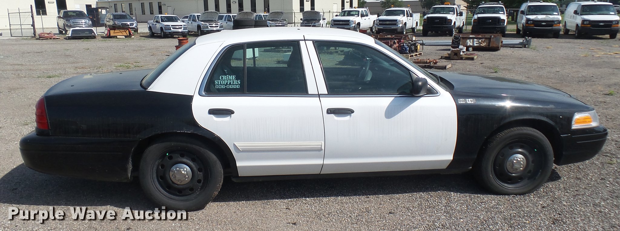 Purple Wave is selling a used Passenger Vehicle in Kansas. This item is a 2010 Ford Crown Victoria Police Interceptor with the following: 138,851 miles on odometer, 4.6L V8 SOHC 16V FFV gas engine, Automatic transmission, AC and heat, Tilt, AM/FM, Power windows, locks, and mirrors, Cloth front interior, Vinyl rear interior, P235/55R17 tires, Port holes in roof and trunk, Hail damage, Unit# 2198