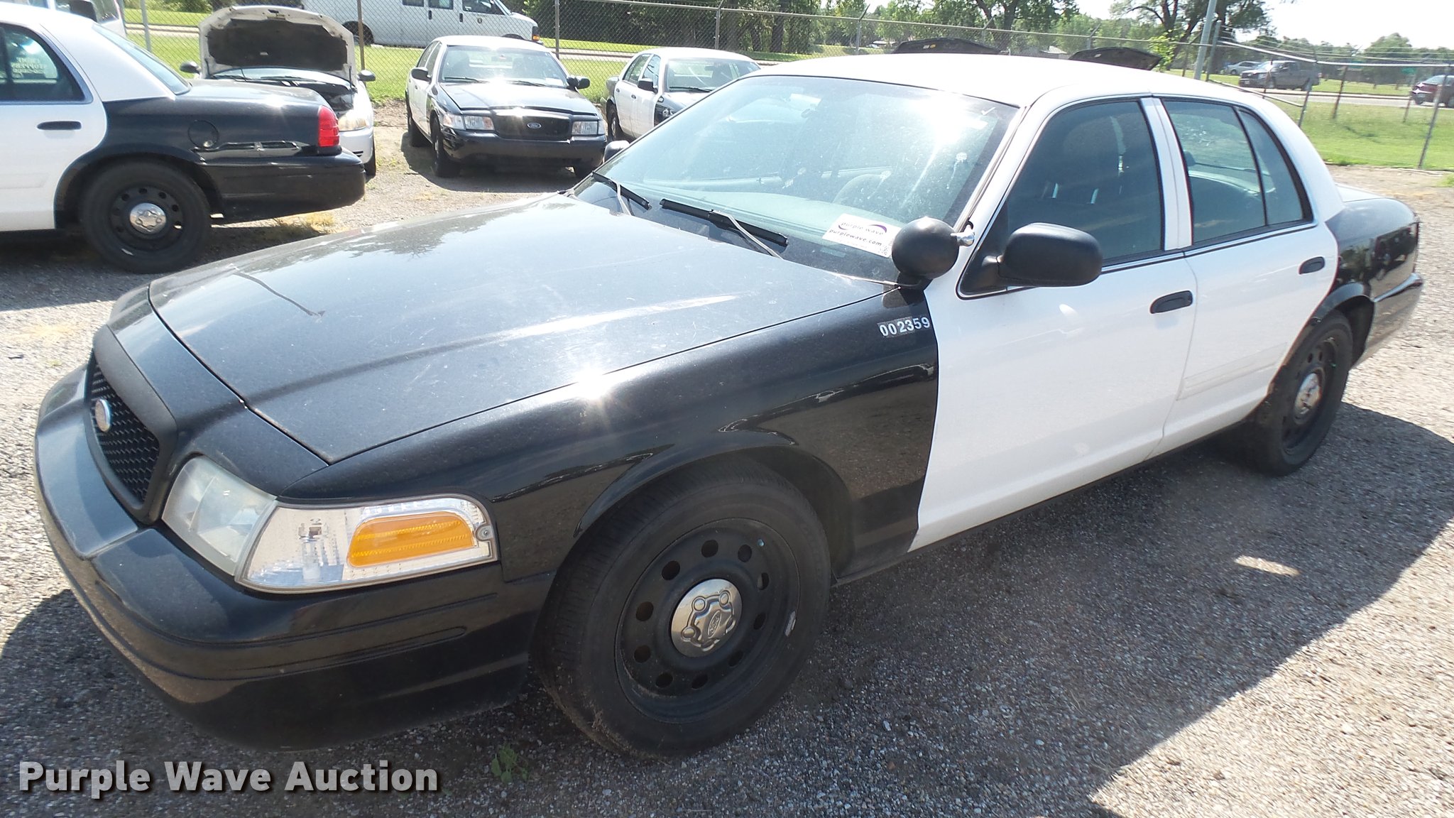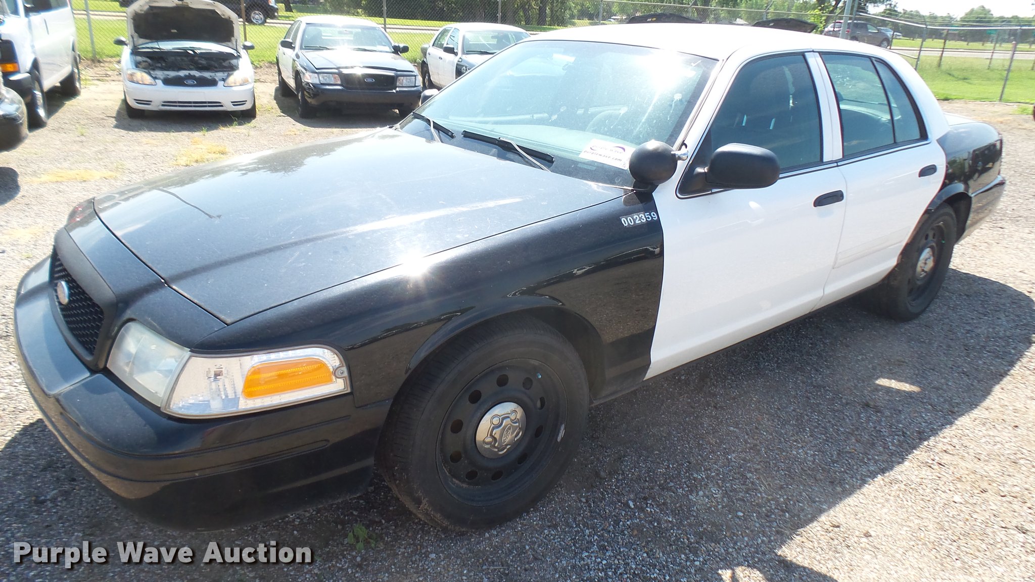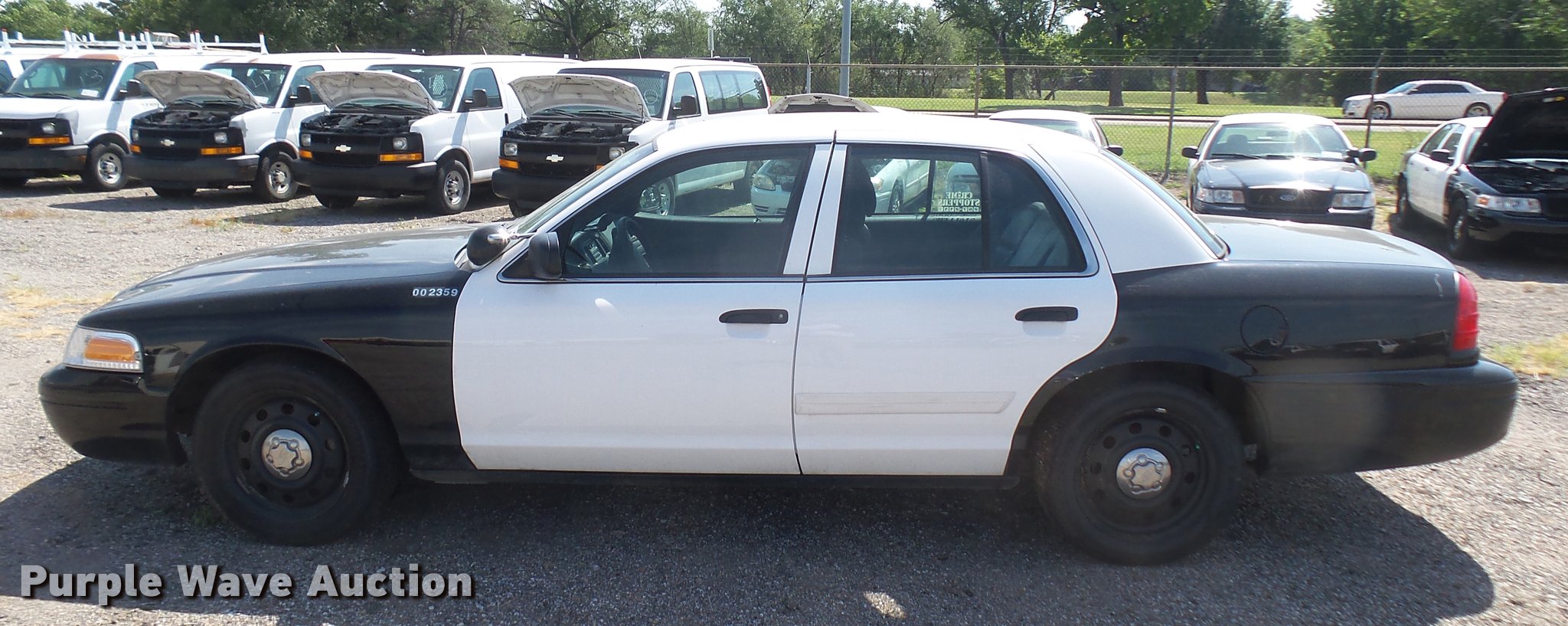 Purple Wave is selling a used Passenger Vehicle in Kansas. This item is a 2011 Ford Crown Victoria Police Interceptor with the following: 112,850 miles on odometer, 4.6L V8 SOHC 16V FFV gas engine, Automatic transmission, AC and heat, Tilt, AM/FM, Power windows, locks, and mirrors, Cloth front interior, Vinyl rear interior, P235/55R17 tires, Port holes in roof and trunk, Unit# 2359
