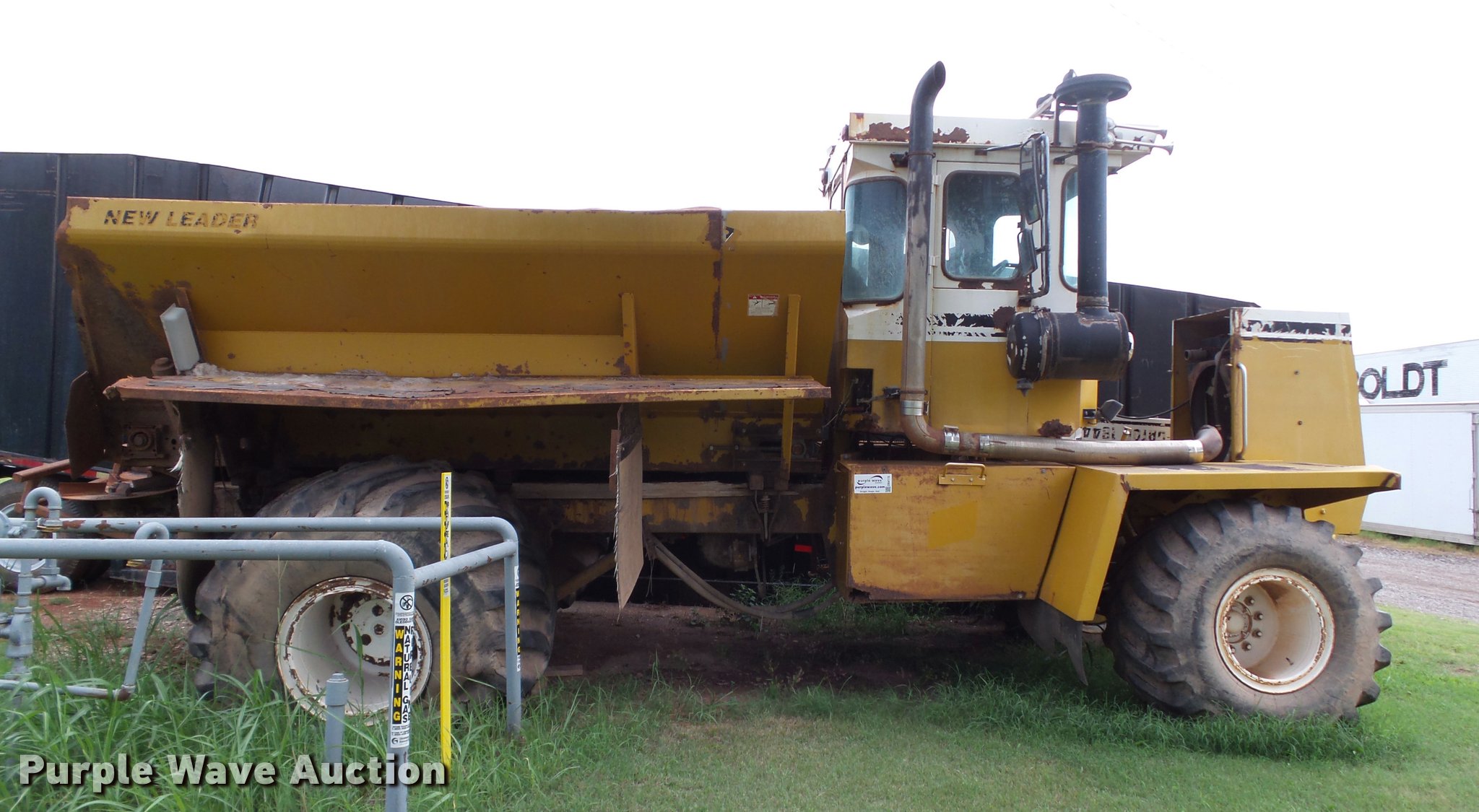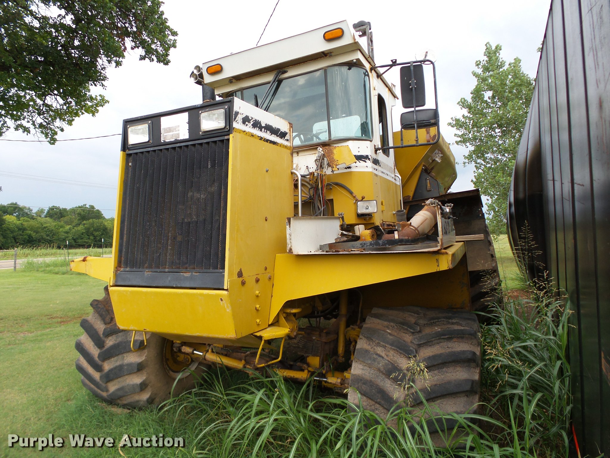 Purple Wave is selling a used Applicator Self Propelled in Oklahoma. This item is a Ag-Chem TerraGator 1844 self-propelled applicator with the following: 73,872 miles on odometer, 7,739 hours on meter, No engine, Automatic primary transmission, Four speed auxiliary transmission, Four wheel drive, AC and heat, AM/FM, Suspension seat, Work lights, New Leader Mark IV control montior, G4 series, New Leader G4 dry fertilizer spreader bed, 12'L, 24"W conveyor belt, Dual spinners, Hydraulic reservoir, Volume adjustable discharge chute, 48x31.00-20 front flotation tires, 66x43.00-25 rear flotation tires