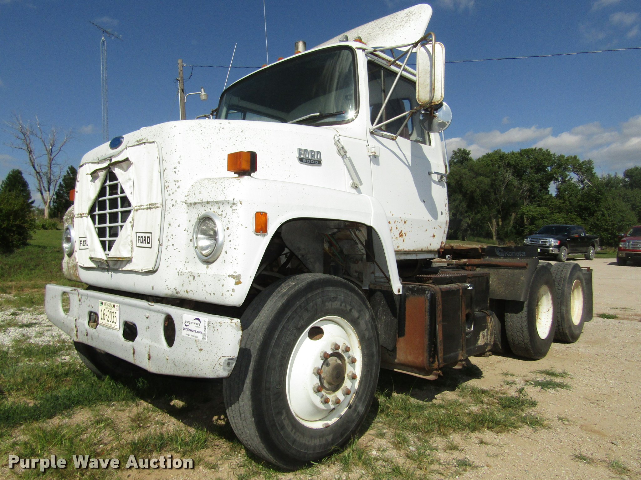Purple Wave is selling a used Truck Tractor in Nebraska. This item is a 1985 Ford LNT9000 semi truck with the following: 367,678 miles on odometer, Miles may vary, unit is still in use, Cummins N14 14.0L L6 turbo diesel engine, Eaton Fuller Road Ranger nine speed manual transmission, Inter-axle differential lock, Tandem axle, Heat, AM, Air suspension seat, Aluminum deck plate, Dual fuel tanks, Single rear exhaust stack, Quarter fenders, Mud flaps, Air operated sliding fifth wheel plate, Spring suspension, Air brakes, 11R22.5 tires