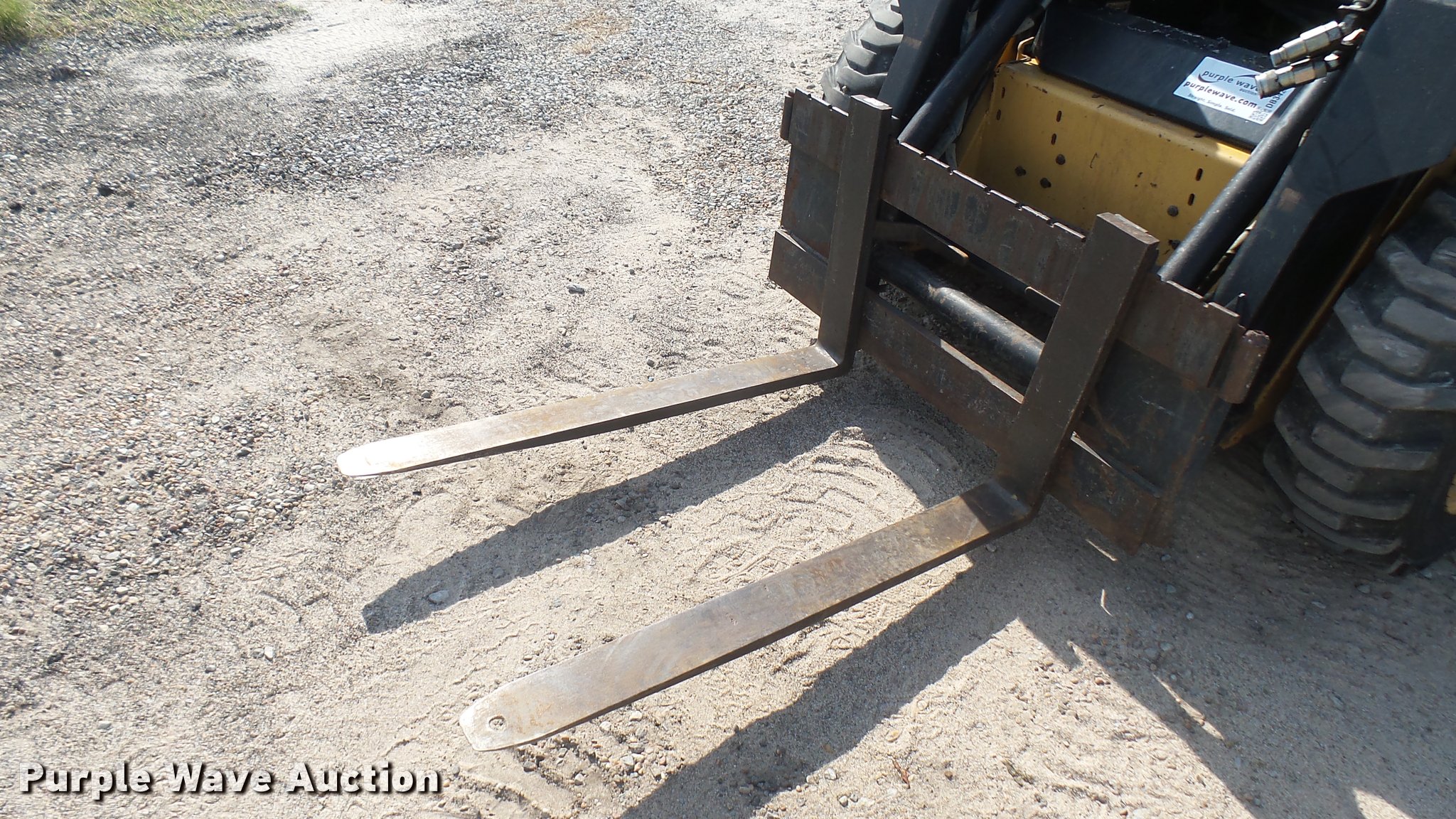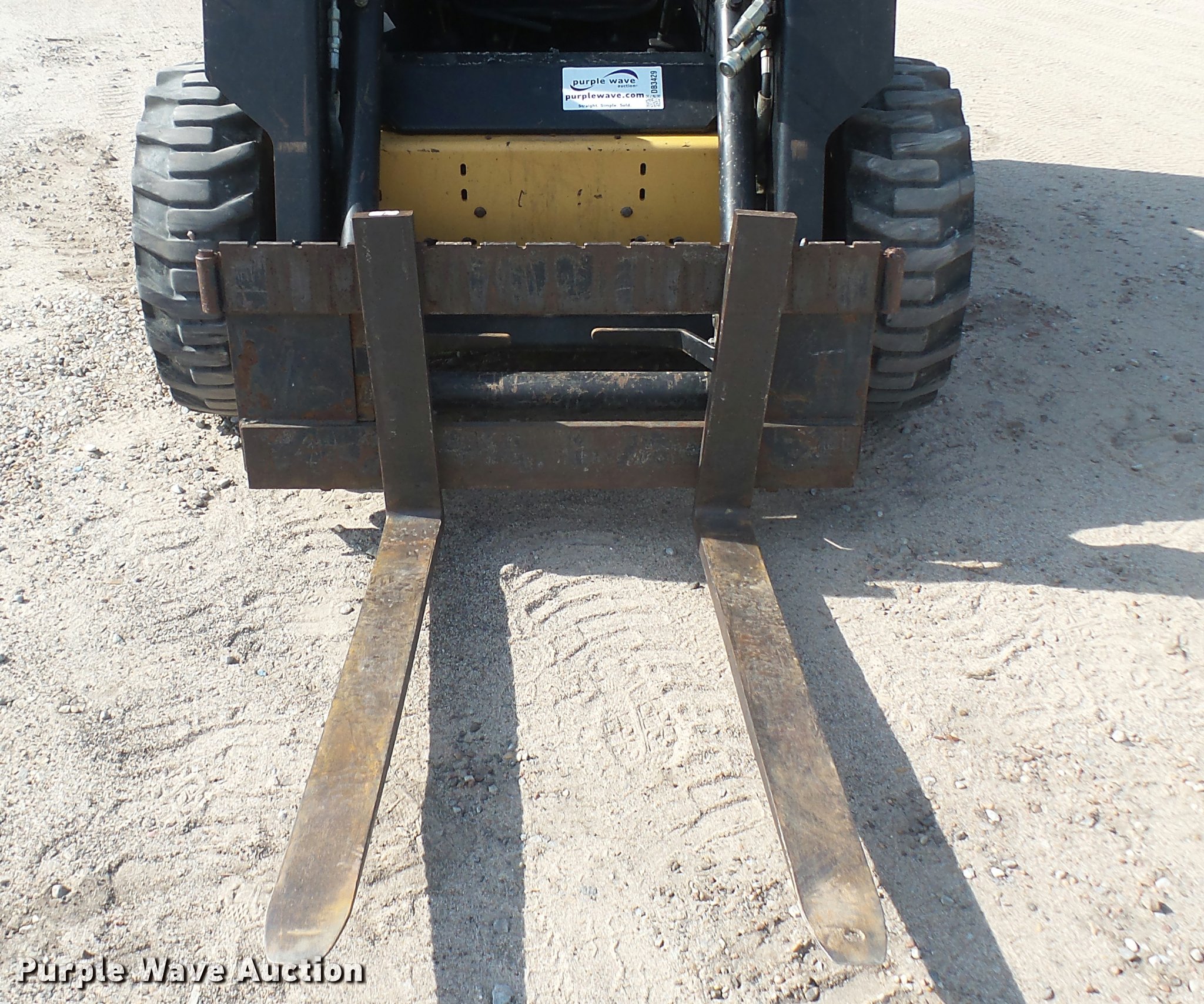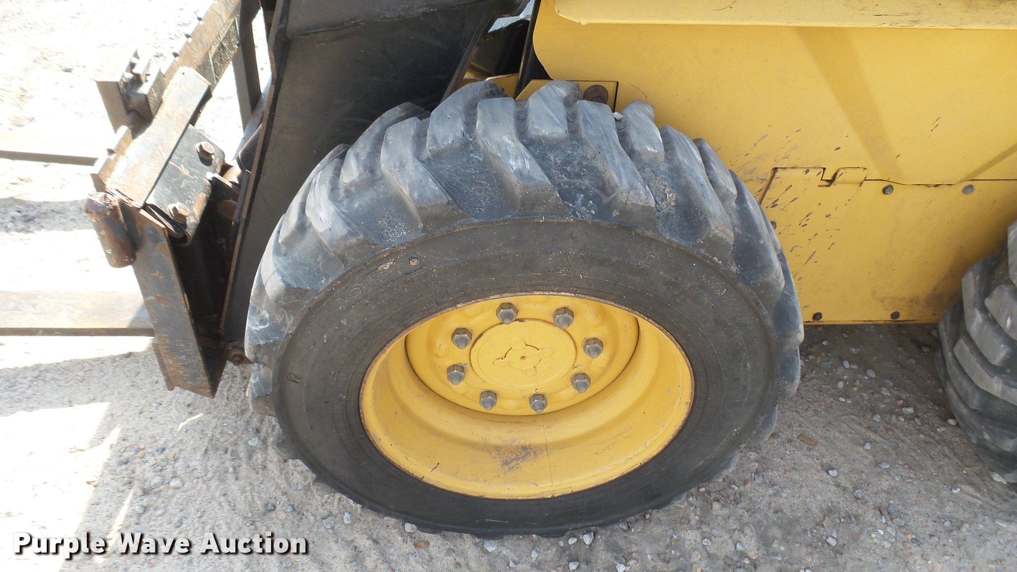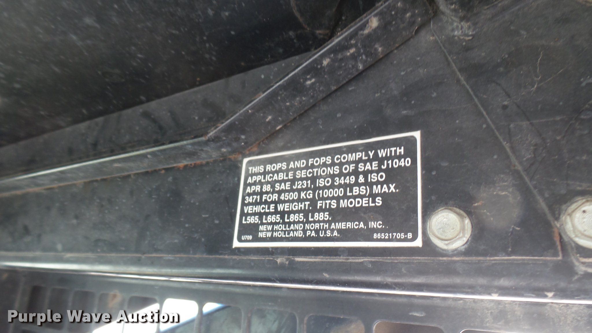 Purple Wave is selling a used Skid Steer Loader in Kansas. This item is a 1999 New Holland LX665 skid steer with the following: 4,539 hours on meter, New Holland N844T four cylinder turbo diesel engine, Hydrostatic transmission, Open station/canopy, Hand and foot controls, Front work lights, 65"W bucket, 42"L forks, Manual quick coupler, Auxiliary hydraulics, 42" wheel base, 90" dump height, Counterweights, 10 x 16.5 tires, Serial 69967