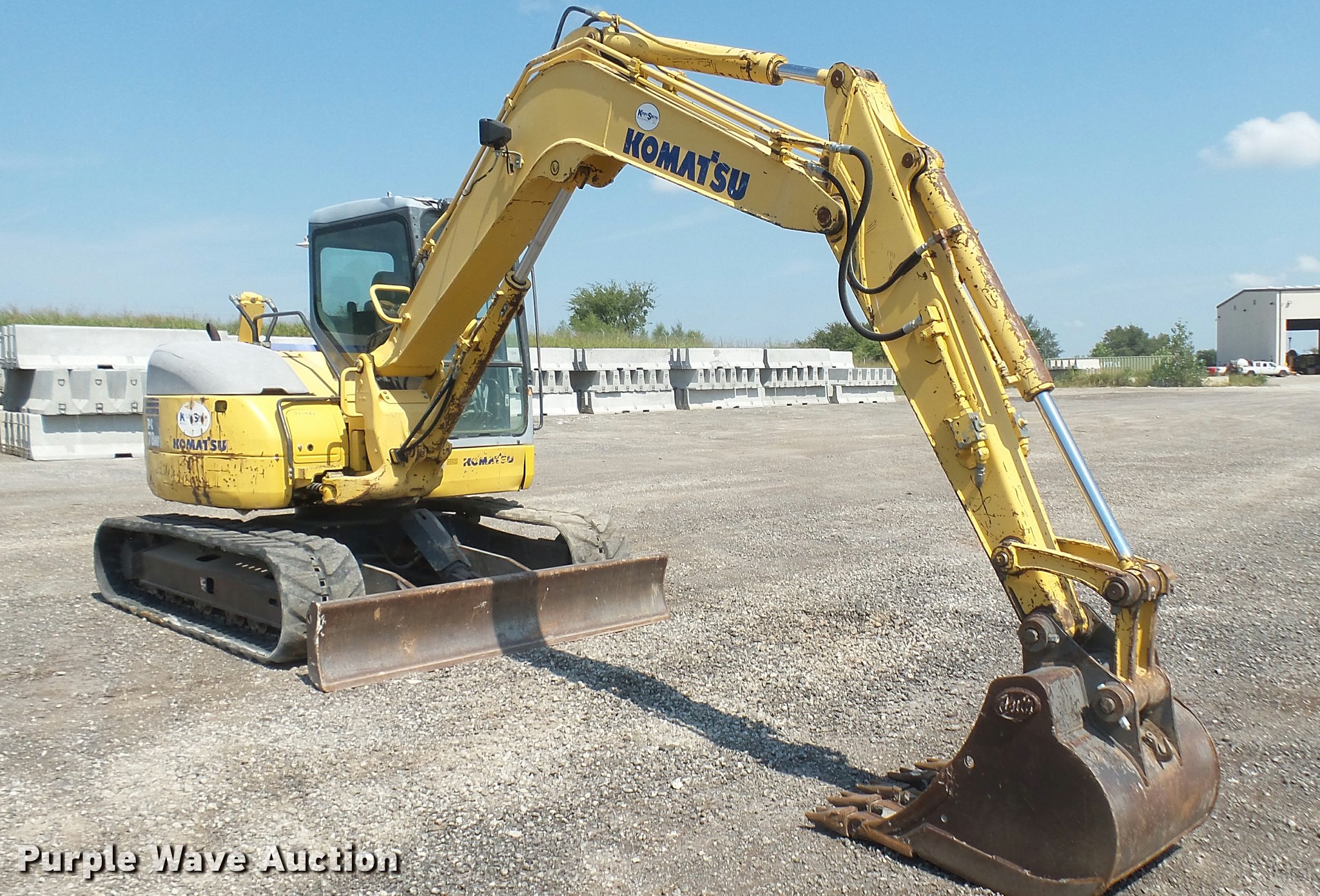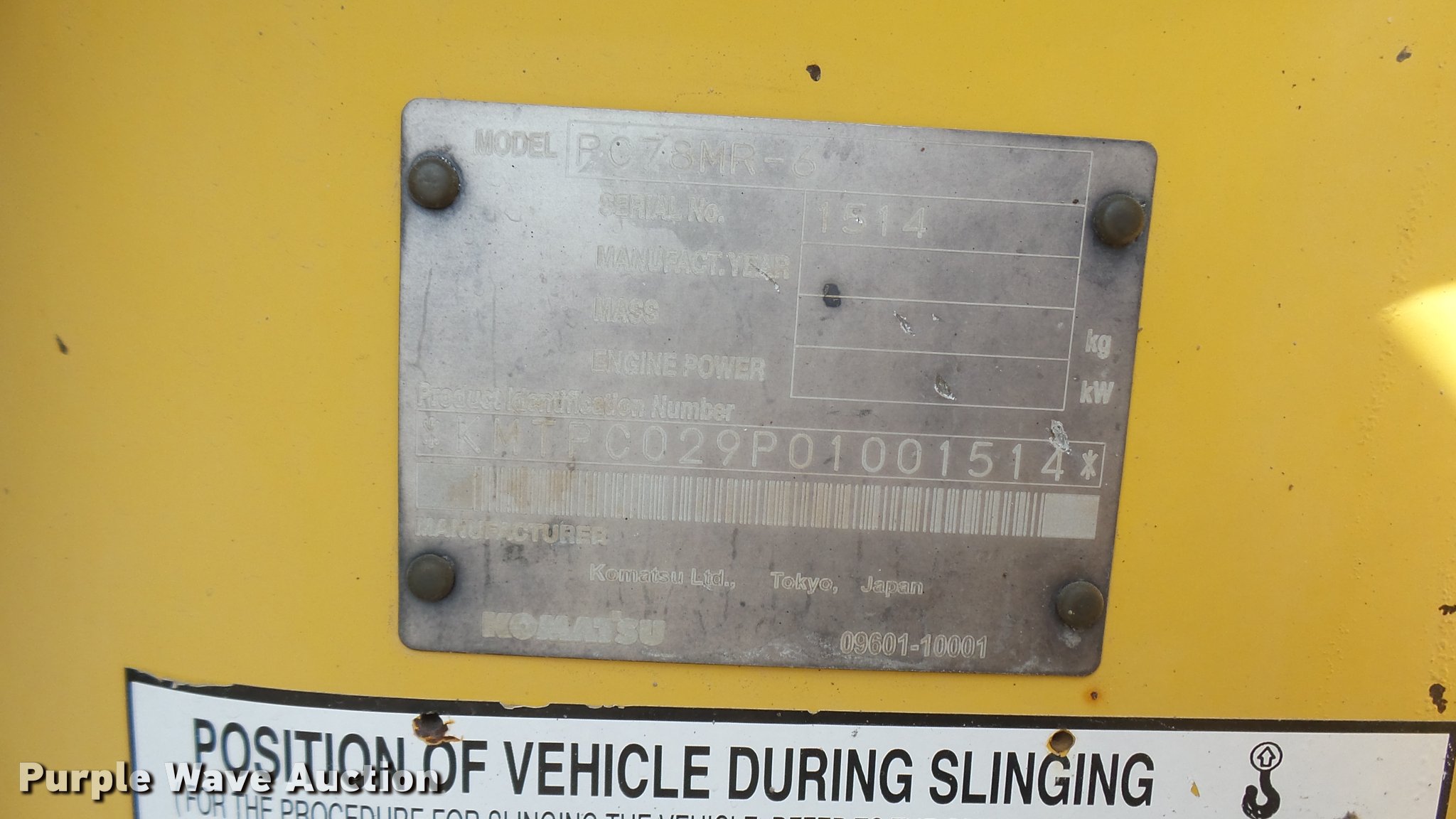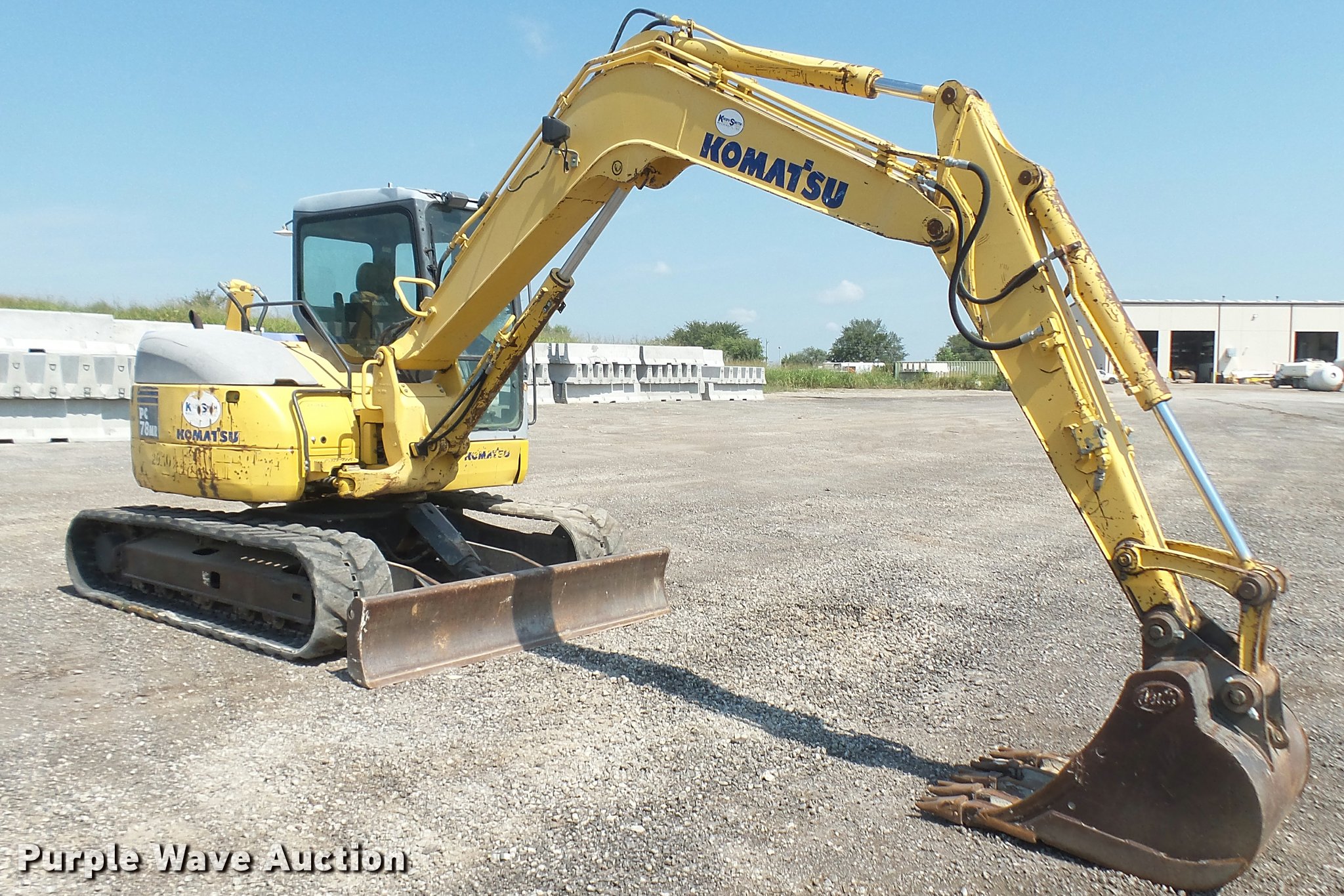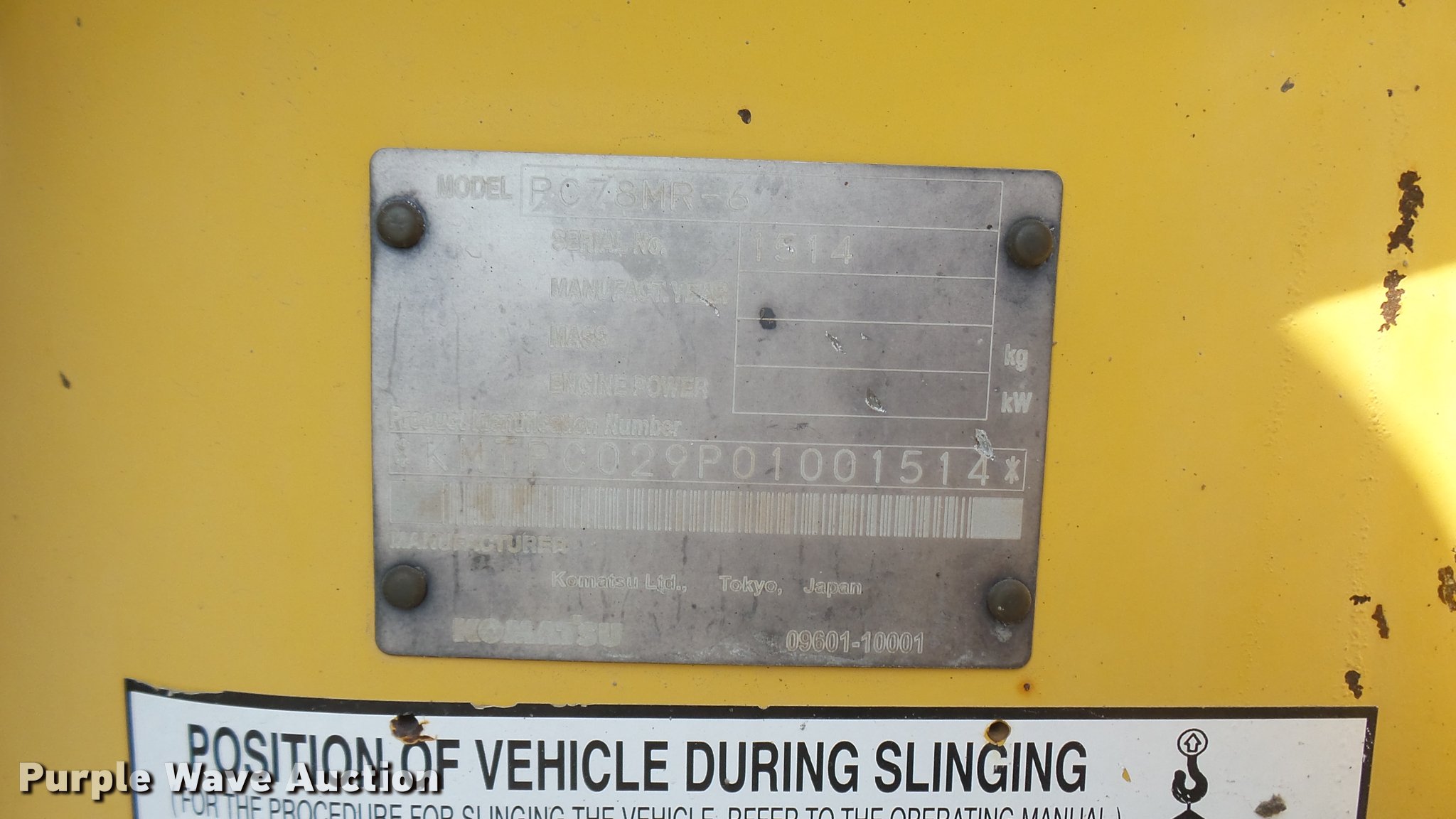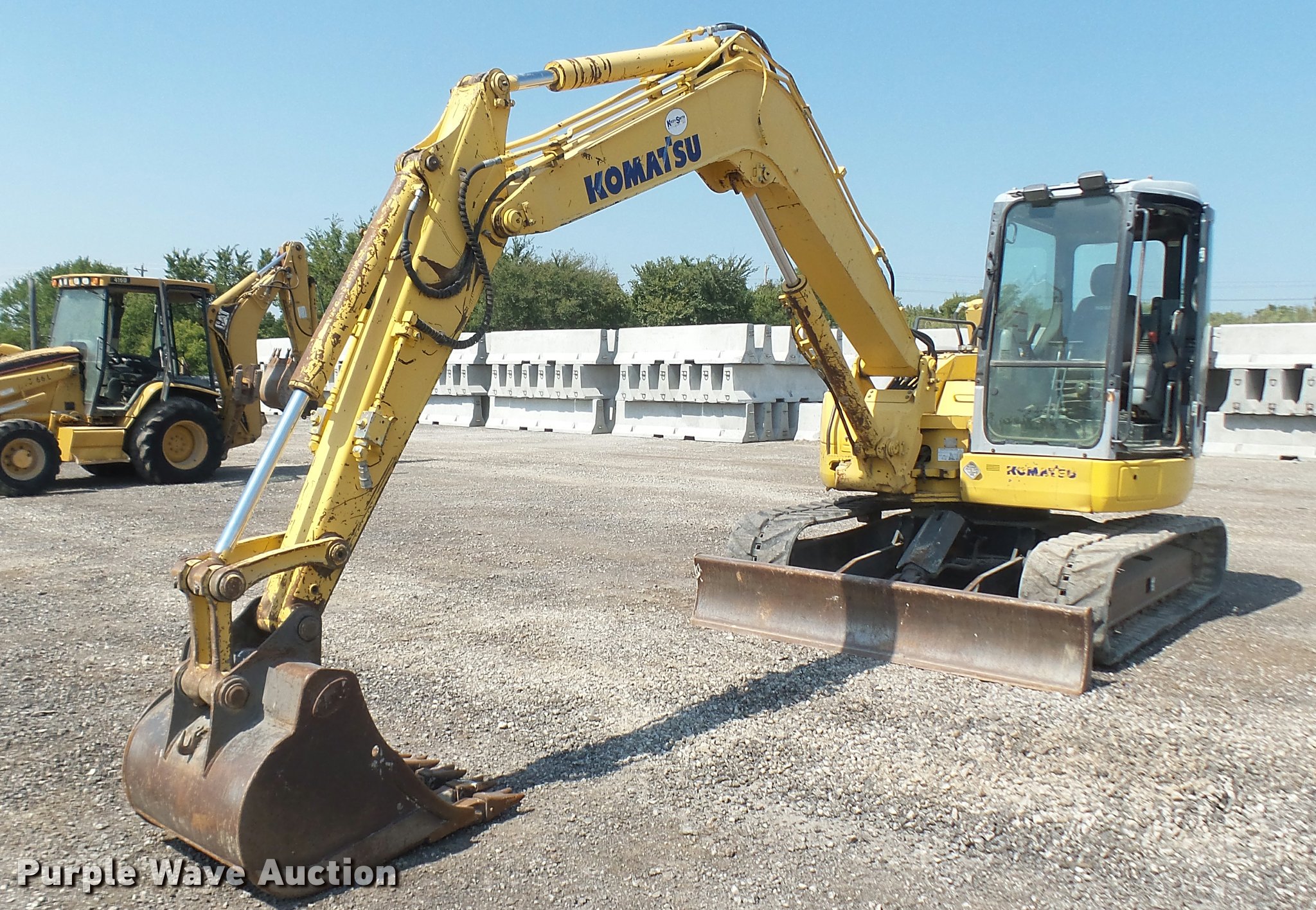 Purple Wave is selling a used Mini Excavator in Oklahoma. This item is a 2005 Komatsu PC78MR-6 compact excavator with the following: 7,806 hours on meter, Komatsu four cylinder turbo diesel engine, 54 HP, Hydrostatic transmission, EROPS, AC and heat, AM/FM, Suspension seat, Front work lights, Standard boom, 90" stick length, Geith 30"W bucket, Weld-on cutting edge, (5) teeth, Auxiliary hydraulics, 92"W backfill blade, 18"W rubber tracks, Hydraulics weak, Serial KMTPC029P01001514, Unit# 20.106L