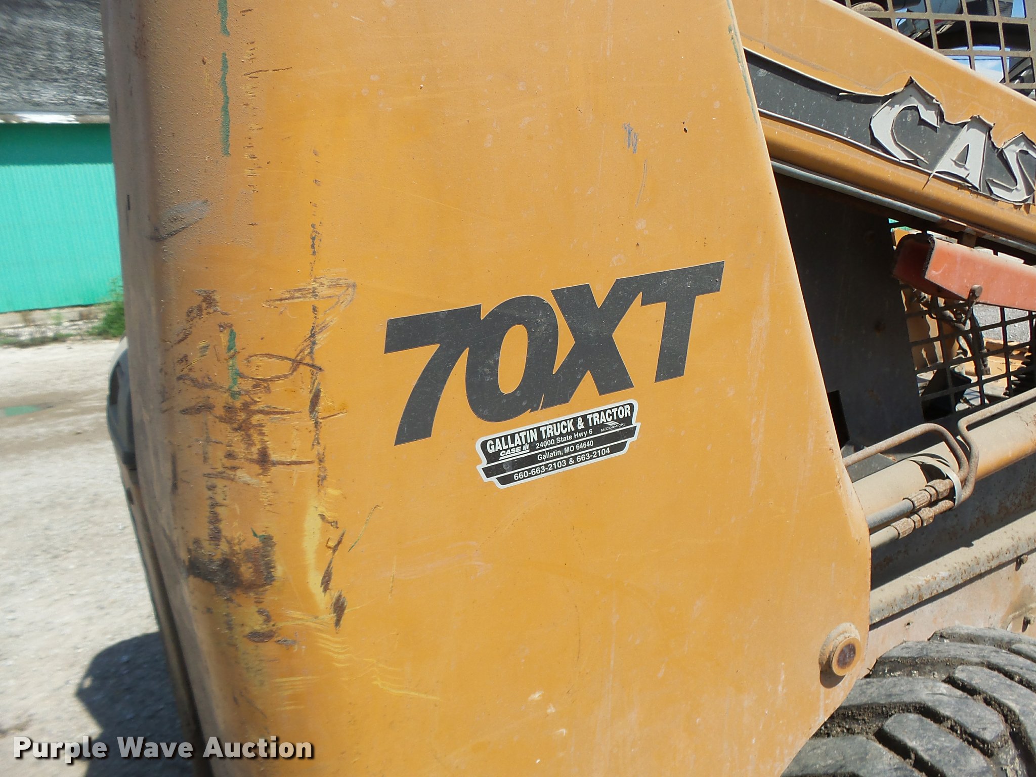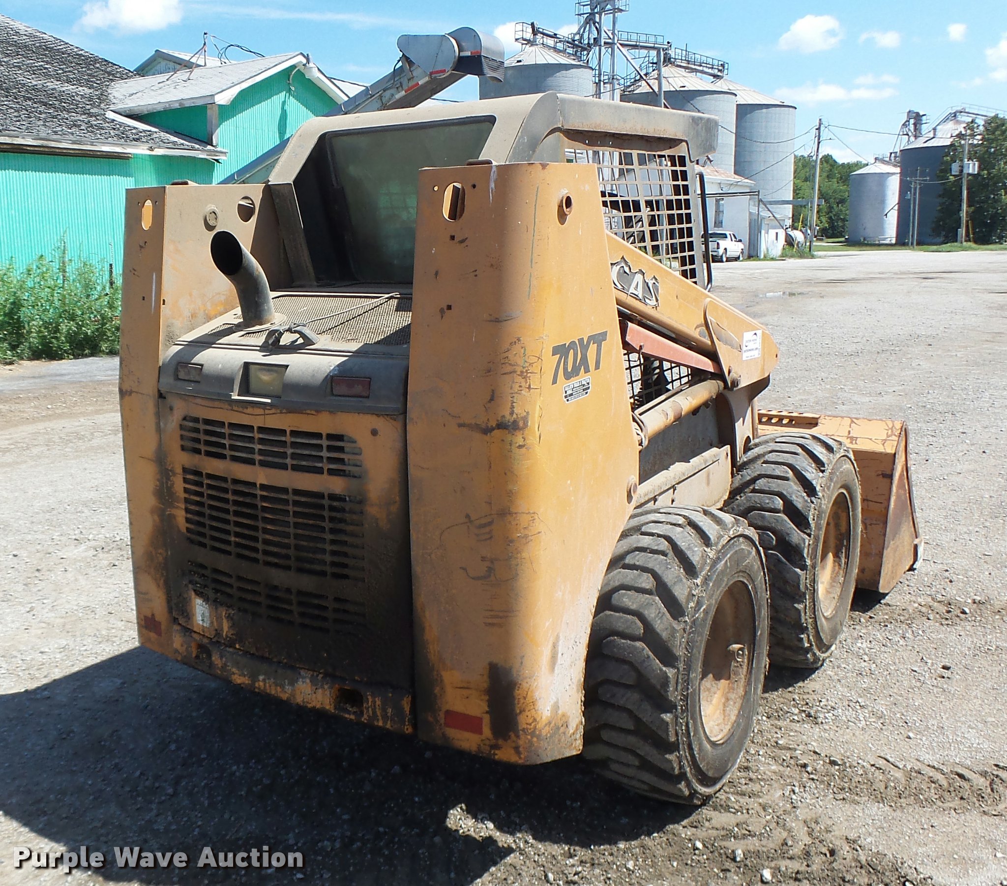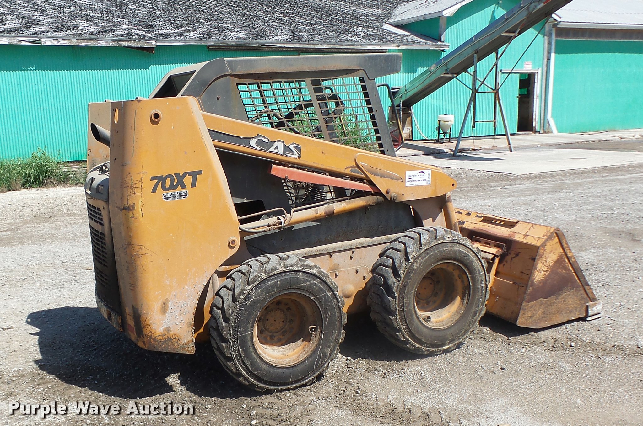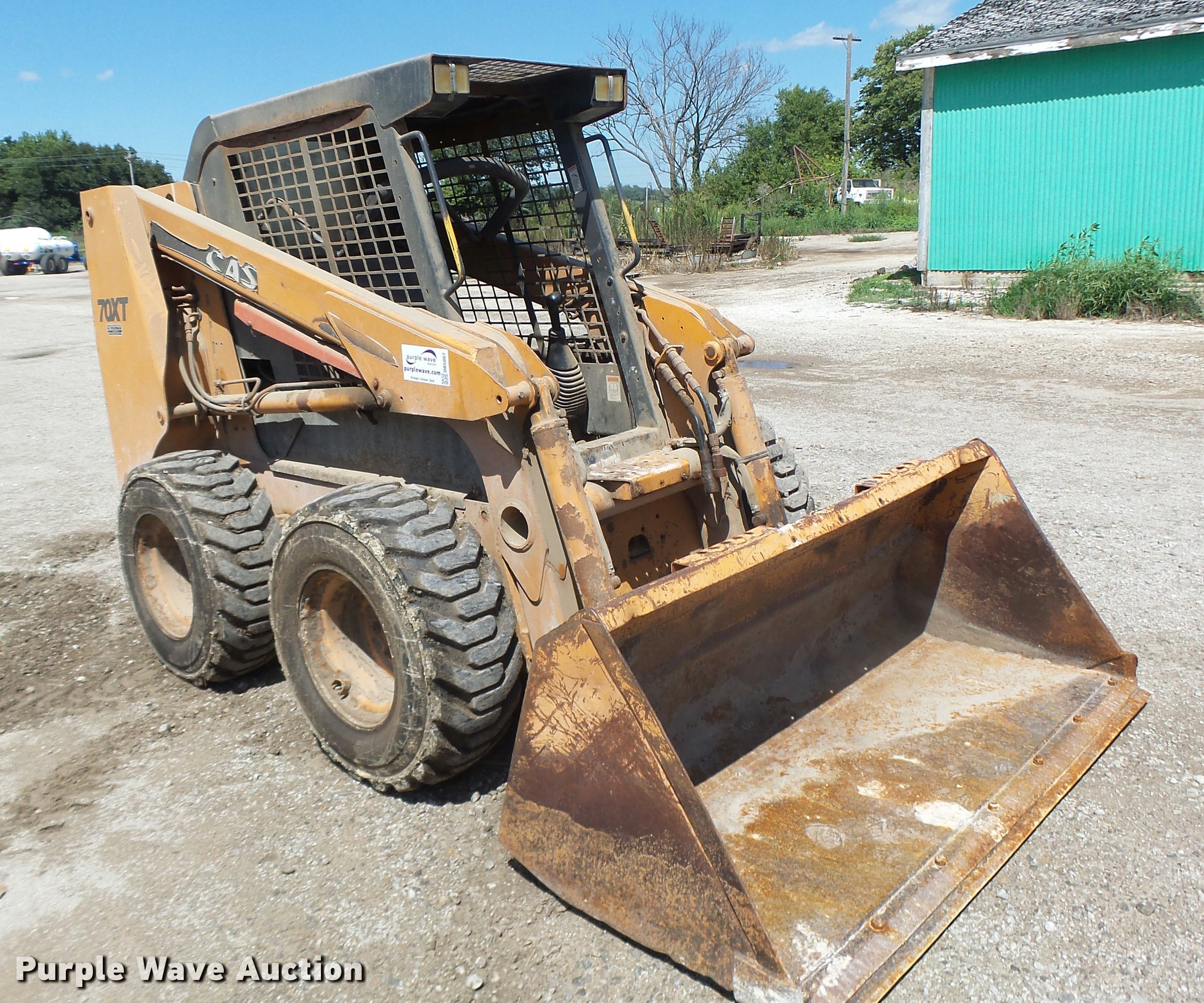 Purple Wave is selling a used Skid Steer Loader in Missouri. This item is a Case 70XT skid steer with the following: 1,588 hours on meter, Four cylinder turbo diesel engine, Hydrostatic transmission, Open station/canopy, Joystick controls, Spring suspension seat, Front work lights, 72"W bucket, Bolt-on cutting edge, Auxiliary hydraulics, 12 x 16.5 tires