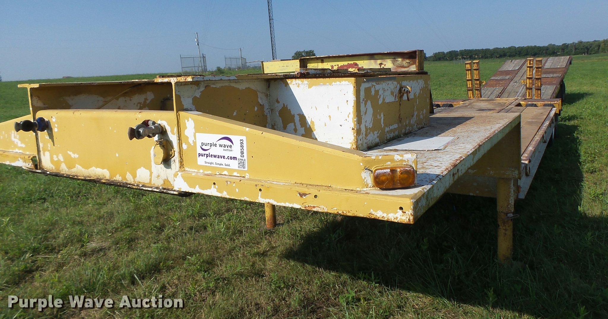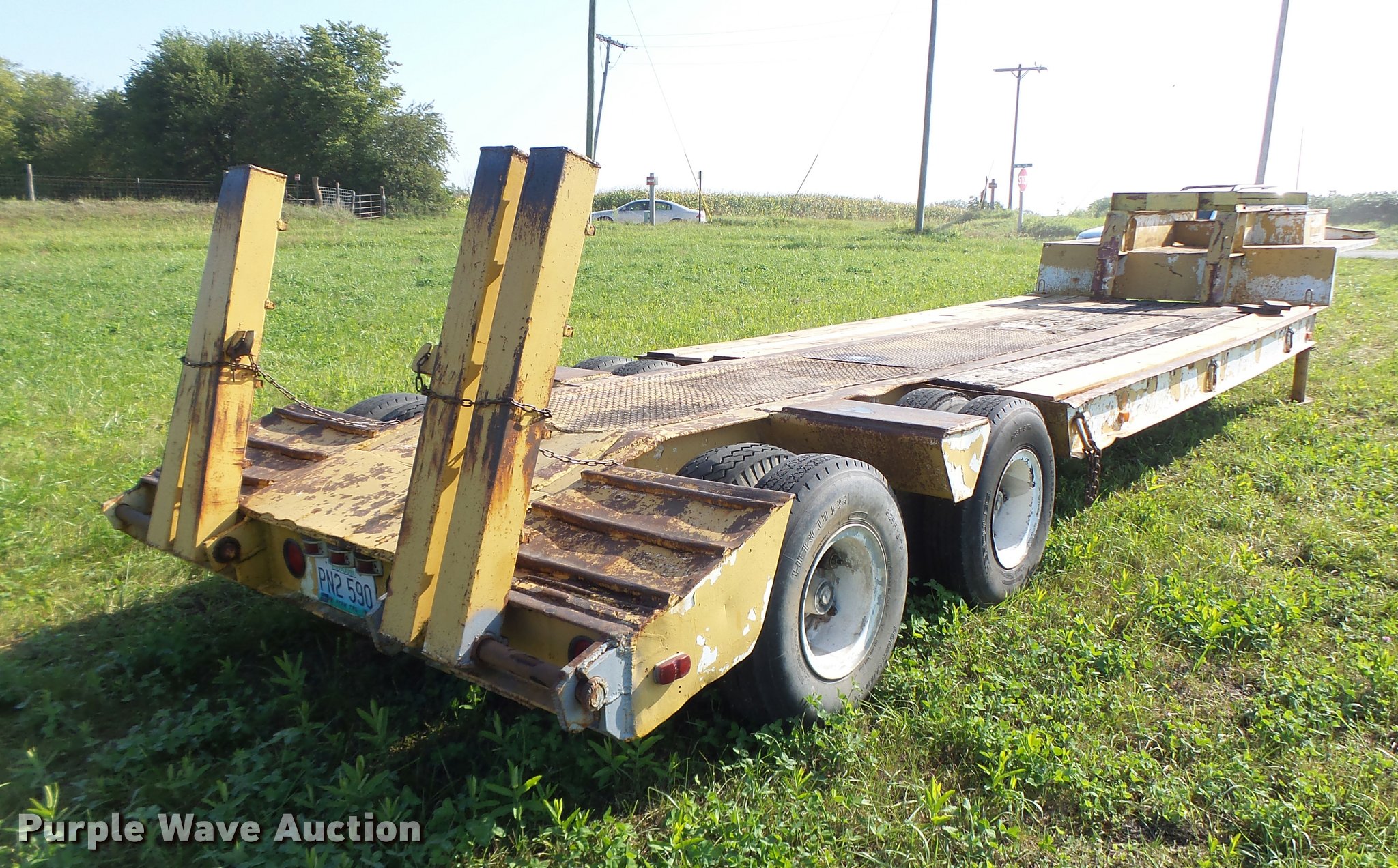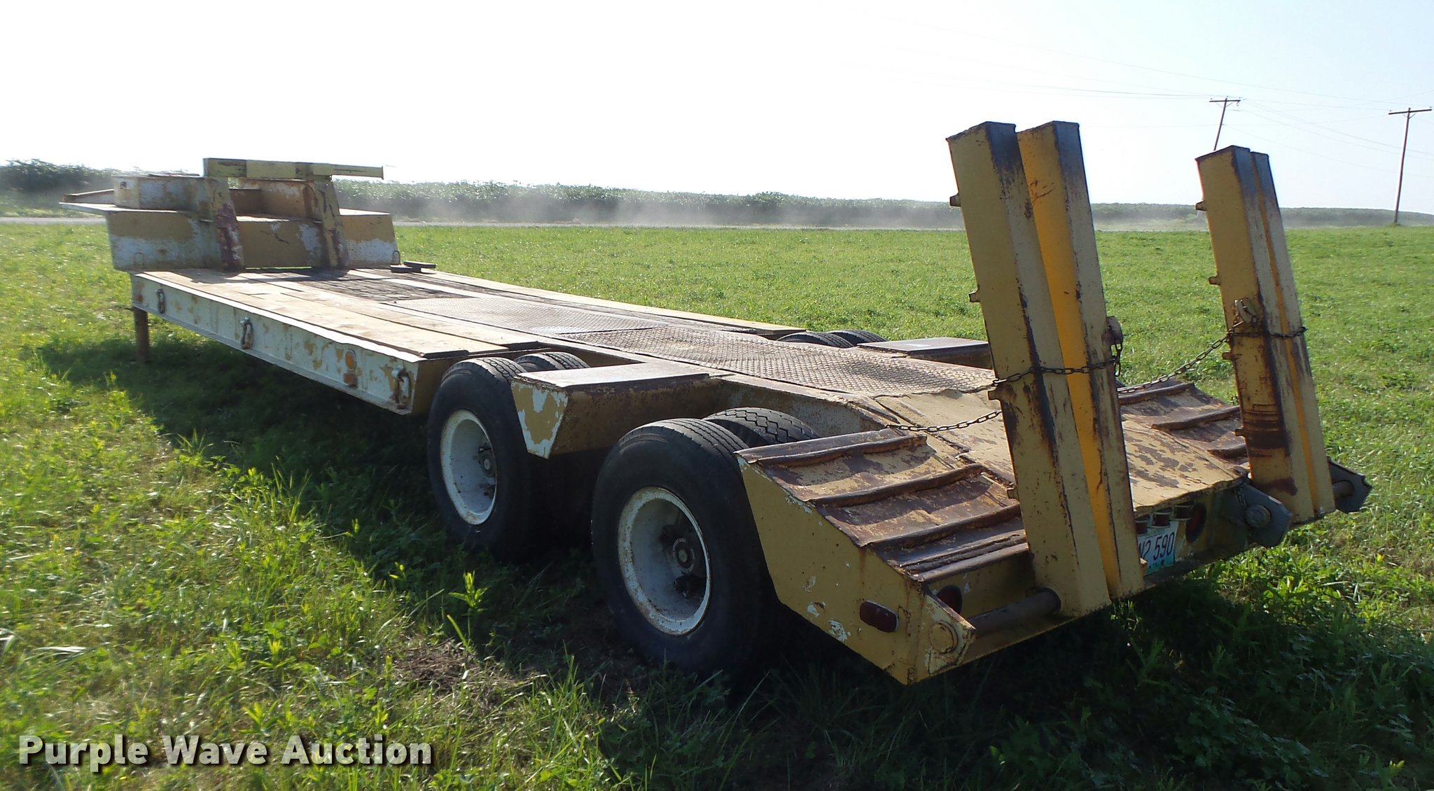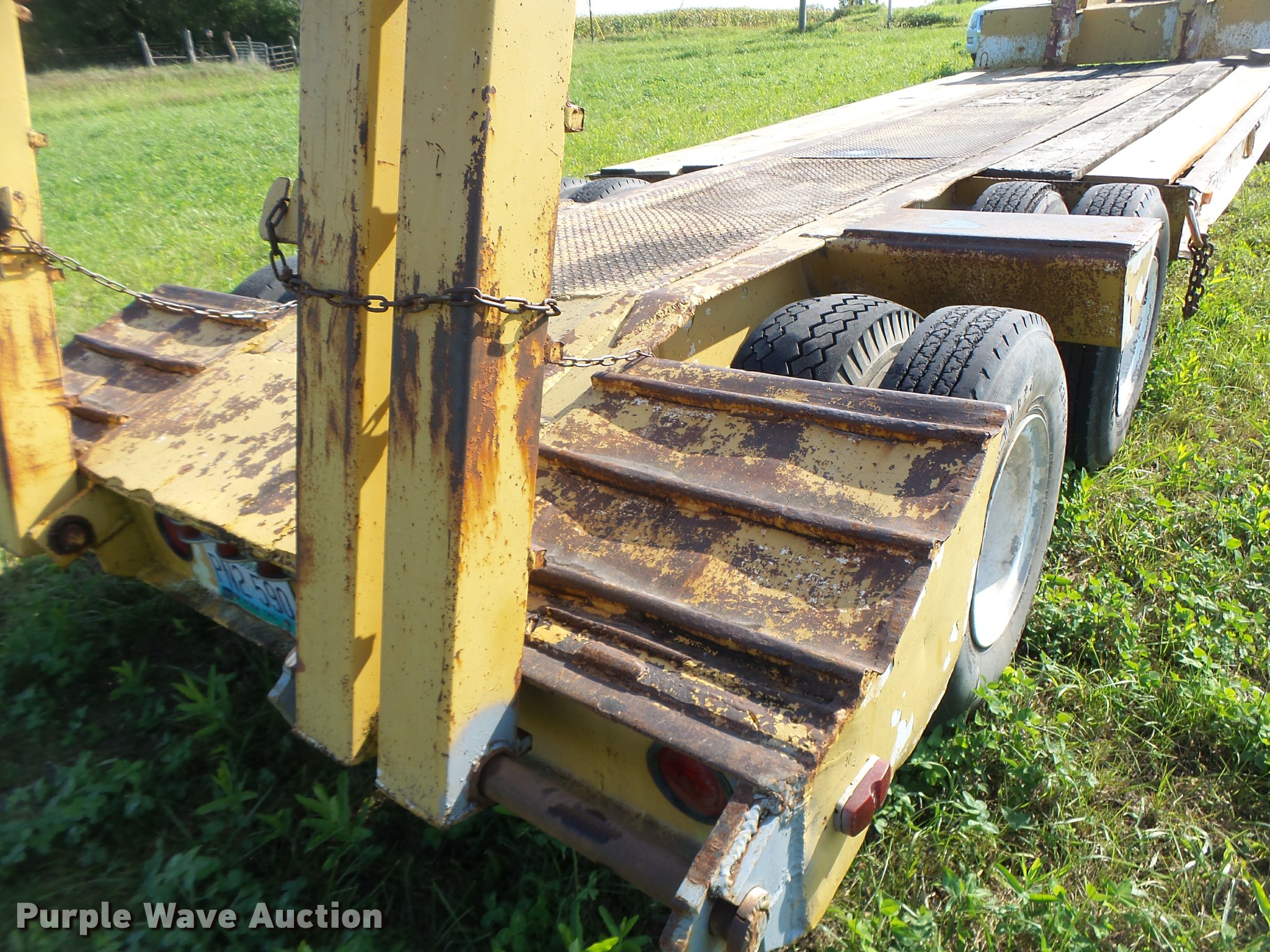 Purple Wave is selling a used Equip. Trailer in Missouri. This item is a 1972 Hyster lowboy equipment trailer with the following: 33.5' overall length, 23'L x 8'W wood deck, 34" tail length, 48" ramps, D-ring tie downs, Toolbox, Dual leg landing gear, Fifth wheel hitch, Spring suspension, Air brakes, Steel wheels, 8.25R15 tires, GVWR 59,000 lbs