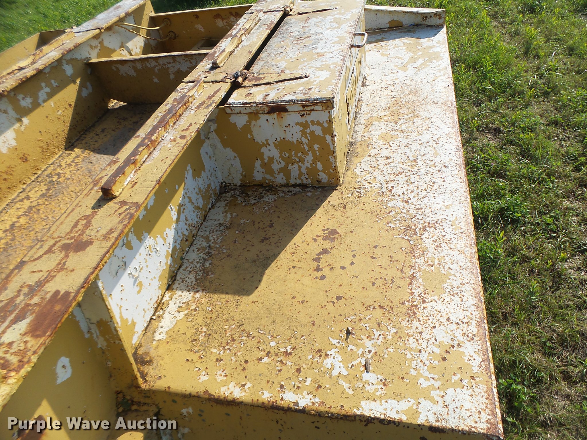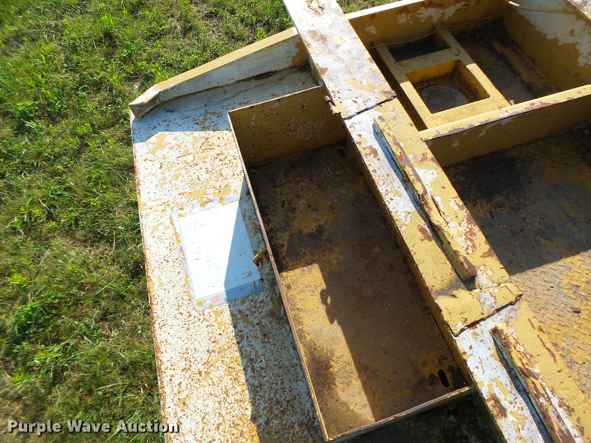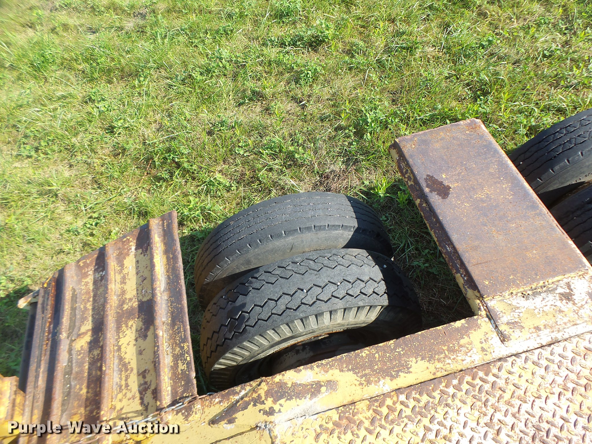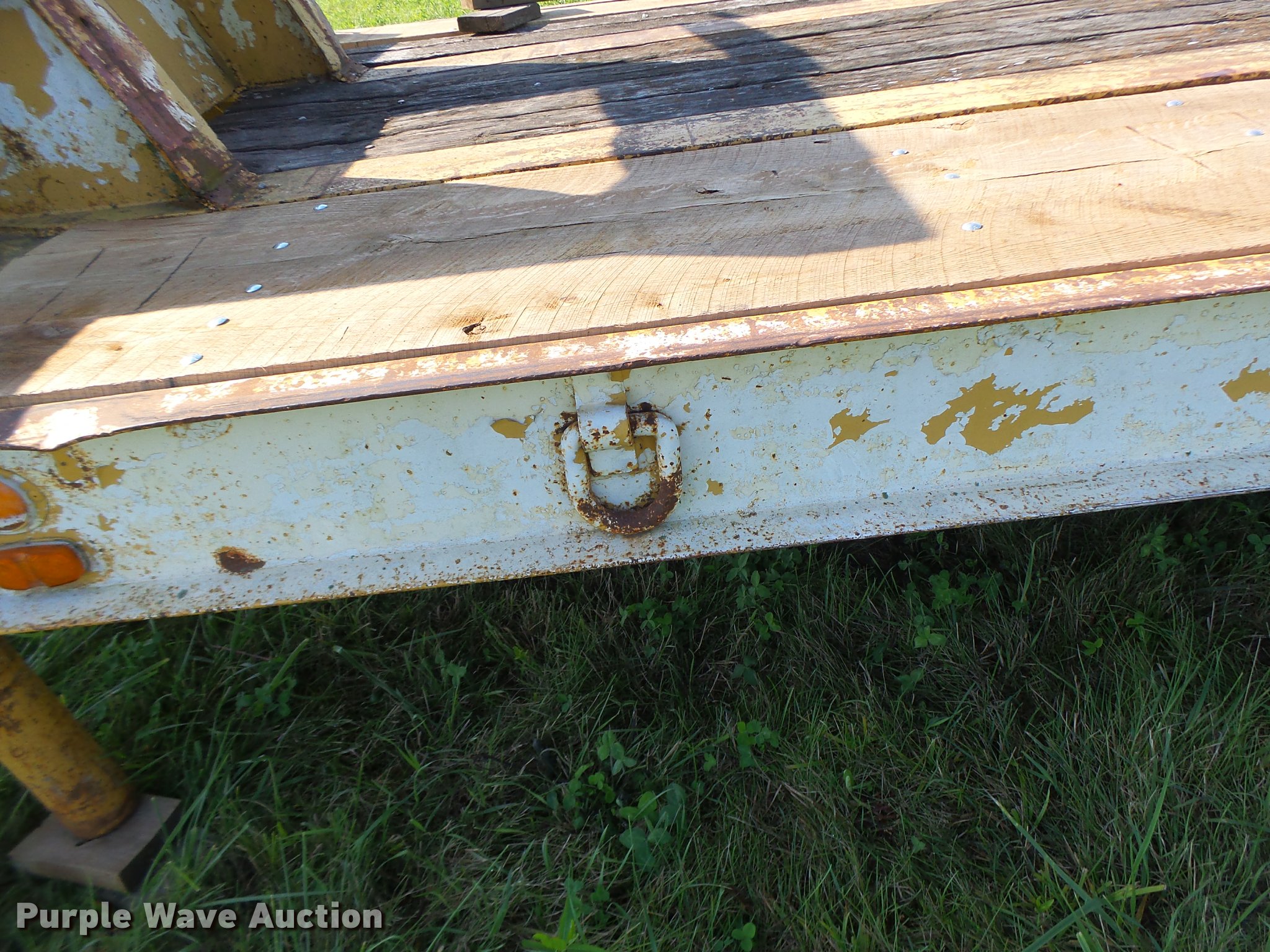 Purple Wave is selling a used Equip. Trailer in Missouri. This item is a 1972 Hyster lowboy equipment trailer with the following: 33.5' overall length, 23'L x 8'W wood deck, 34" tail length, 48" ramps, D-ring tie downs, Toolbox, Dual leg landing gear, Fifth wheel hitch, Spring suspension, Air brakes, Steel wheels, 8.25R15 tires, GVWR 59,000 lbs
