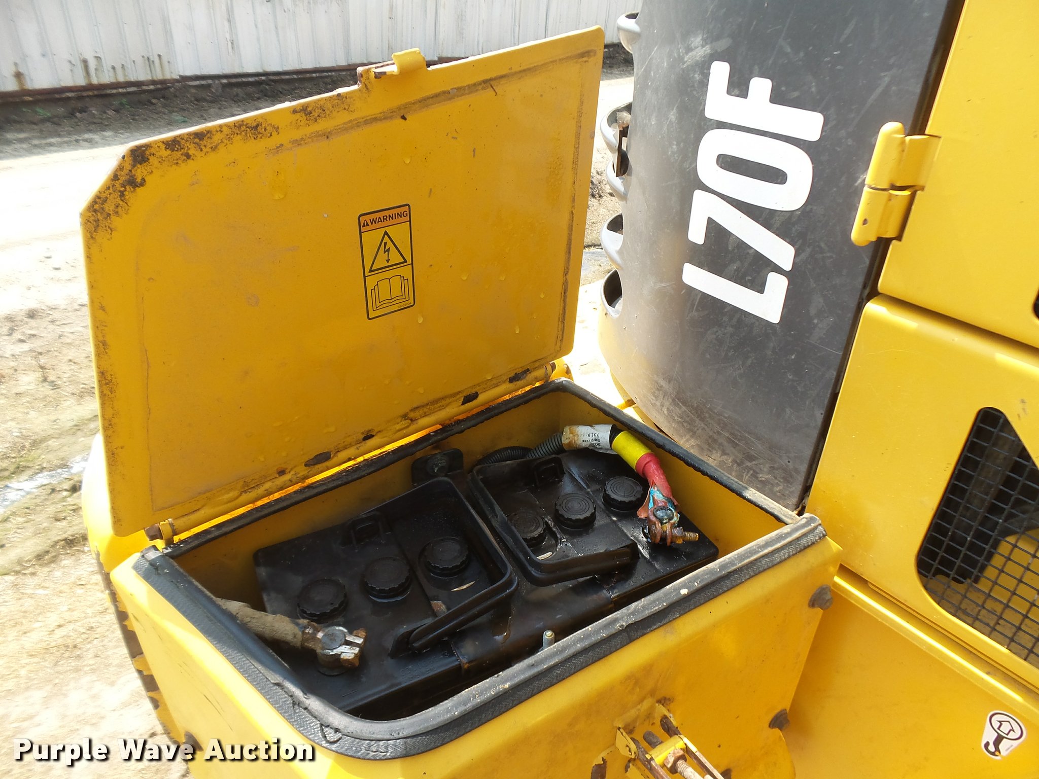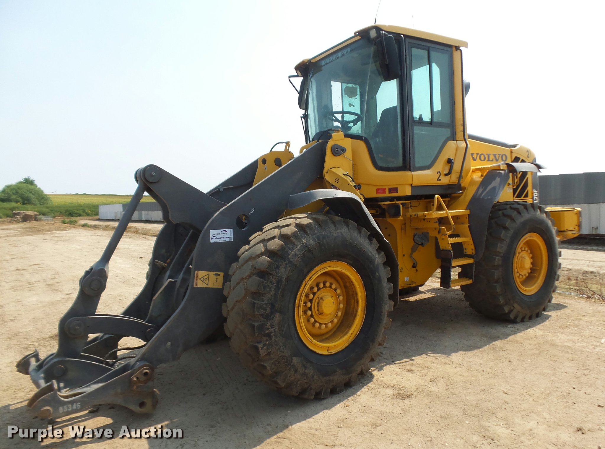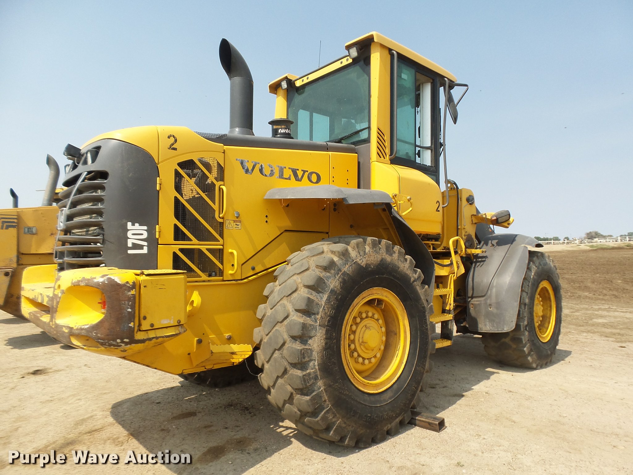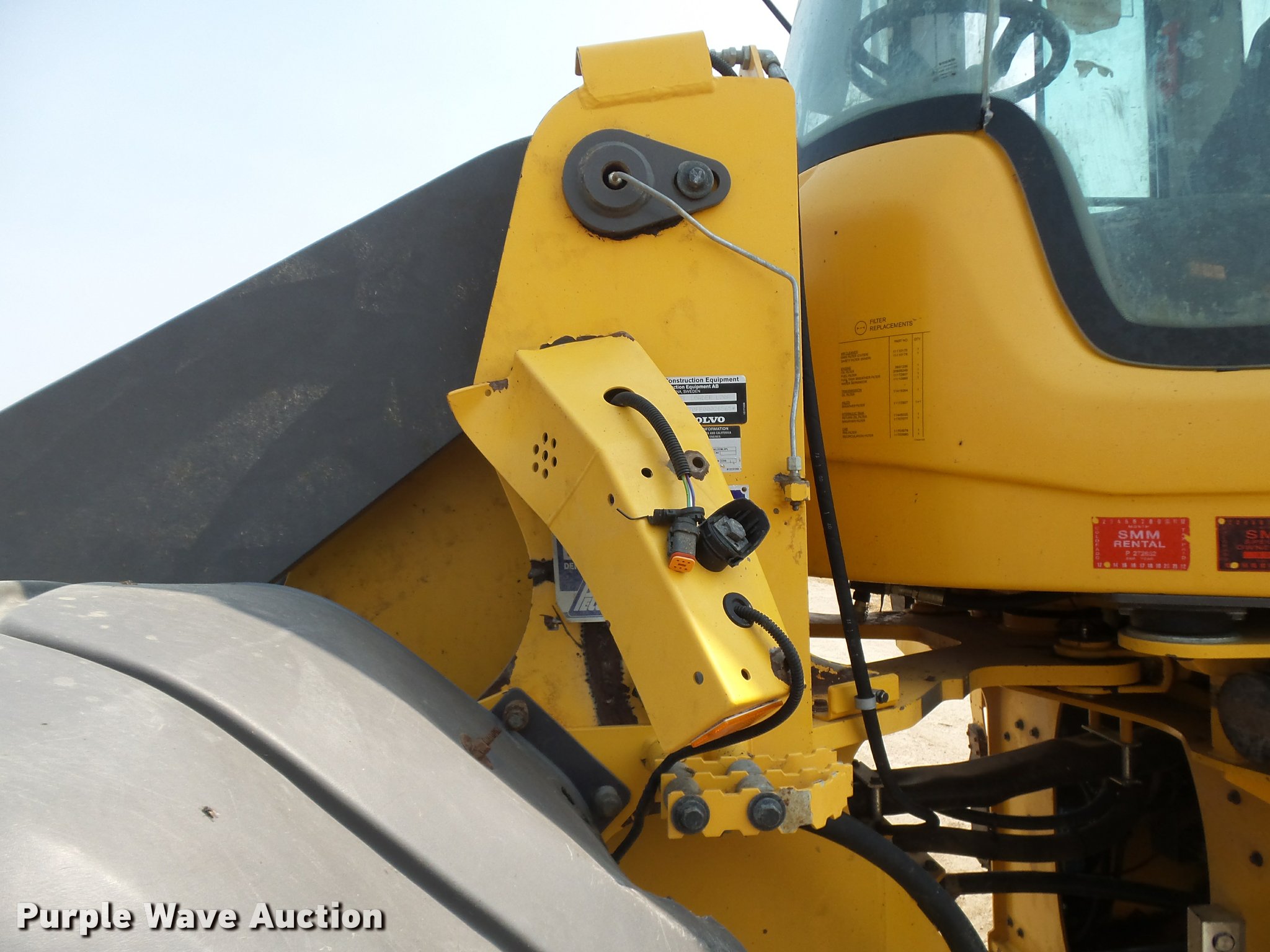 Purple Wave is selling a used Wheel Loader in Colorado. This item is a 2011 Volvo L20F wheel loader with the following: 16,219 hours on meter, Deutz D6ELBE3 5.7L six cylinder turbo diesel engine, 146 HP, Powershift transmission, 4F-4R gears, Differential lock, Enclosed cab, AC and heat, Tilt steering wheel, Air suspension seat, Wipers, Front and rear work lights, Backup alarm, Block heater, Self-leveling bucket, Hydraulic quick coupler, Counterweights, Solideal 20.5-25 tires, Non-operational engine, Serial VCE0L70FE00026565