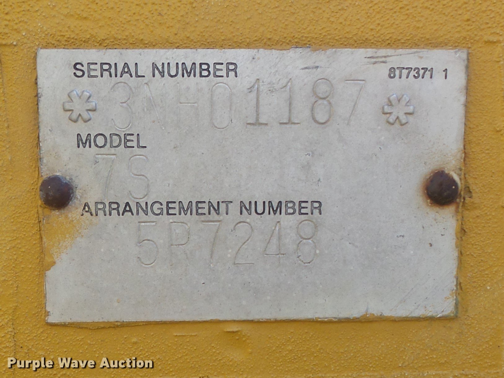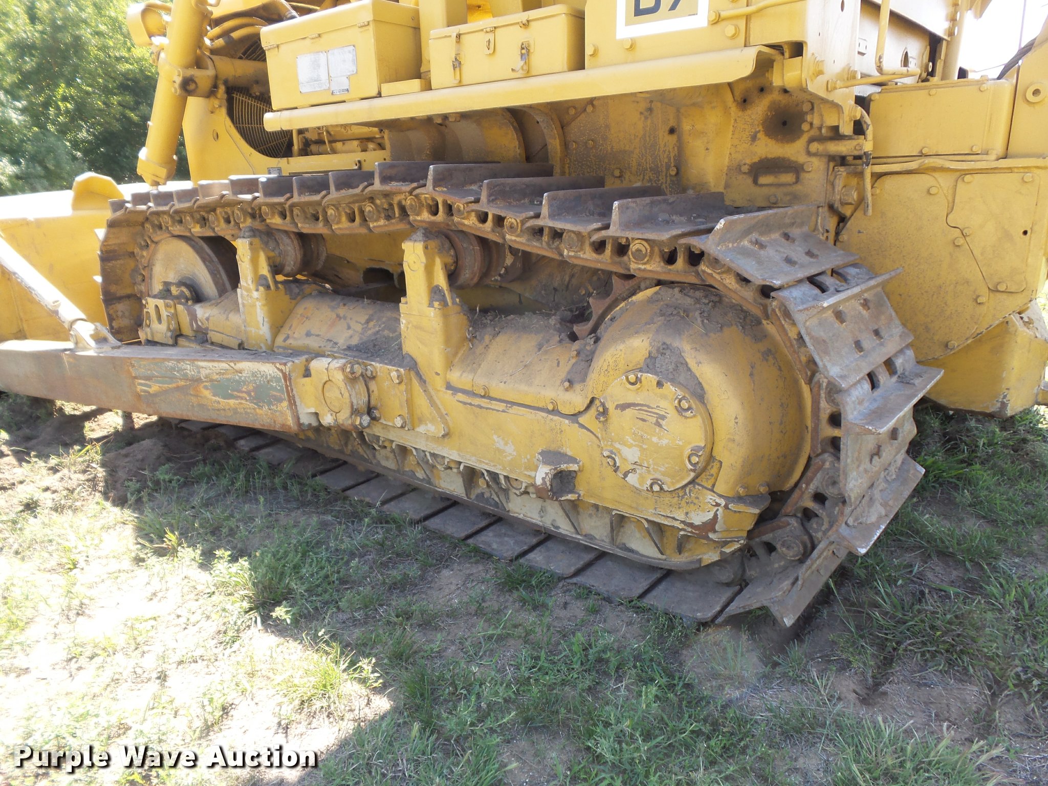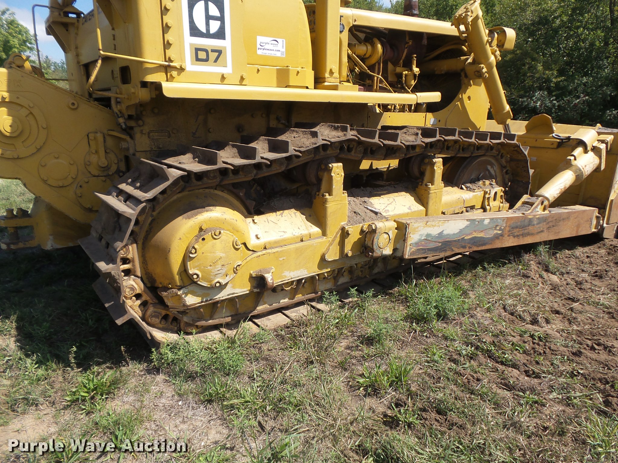Purple Wave is selling a used Crawler Dozer in Illinois. This item is a 1972 Caterpillar D7F military dozer with the following: 193 hours on meter, Caterpillar 3306B-DI six cylinder turbo diesel engine, 189 HP, Direct injection fuel system, Serial 08Z61267, Powershift transmission, 3F-3R gears, OROPS, Front and rear work lights, Differential steering, 143"W single tilt straight dozer blade, Model 7S, Serial 3NH01187, Arrangment no. 5R7248, Hyster D7K winch, 60,000 lbs capacity, 1" cable, Serial E77M1536P, Rear draw bar, Six bottom rollers, Track guards, 22"W single grouser track pads, Serial 61G00014