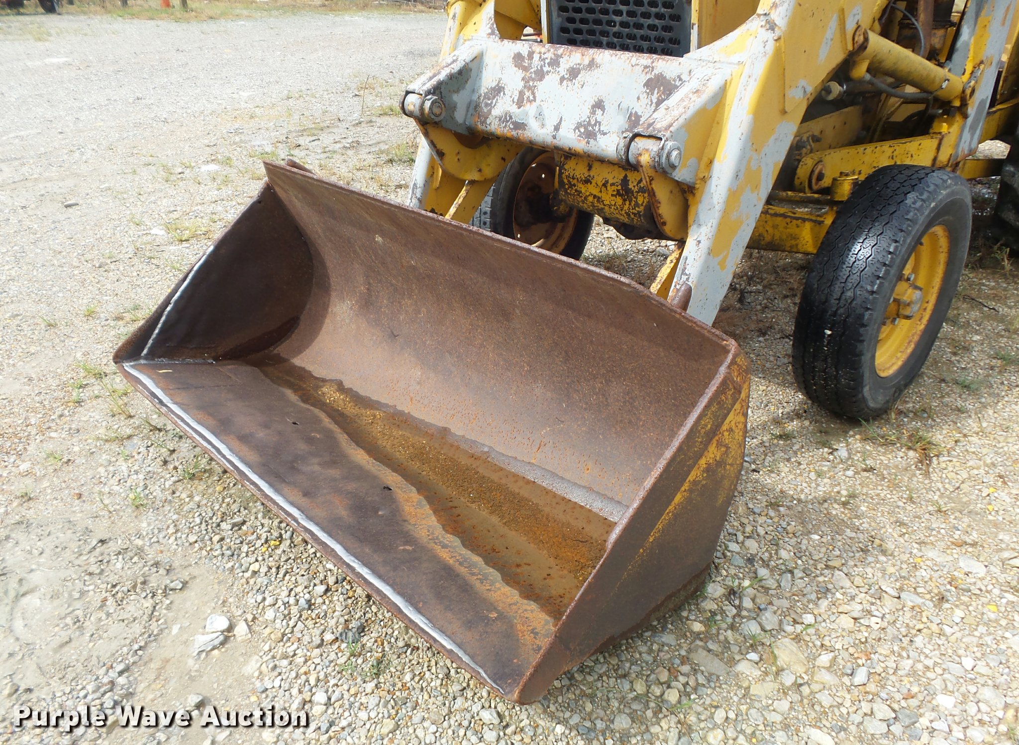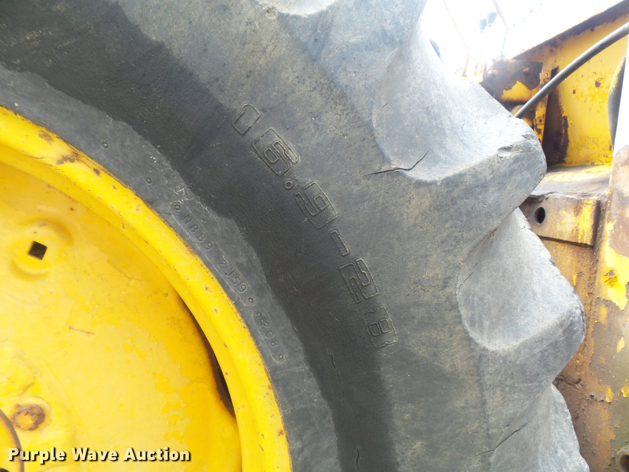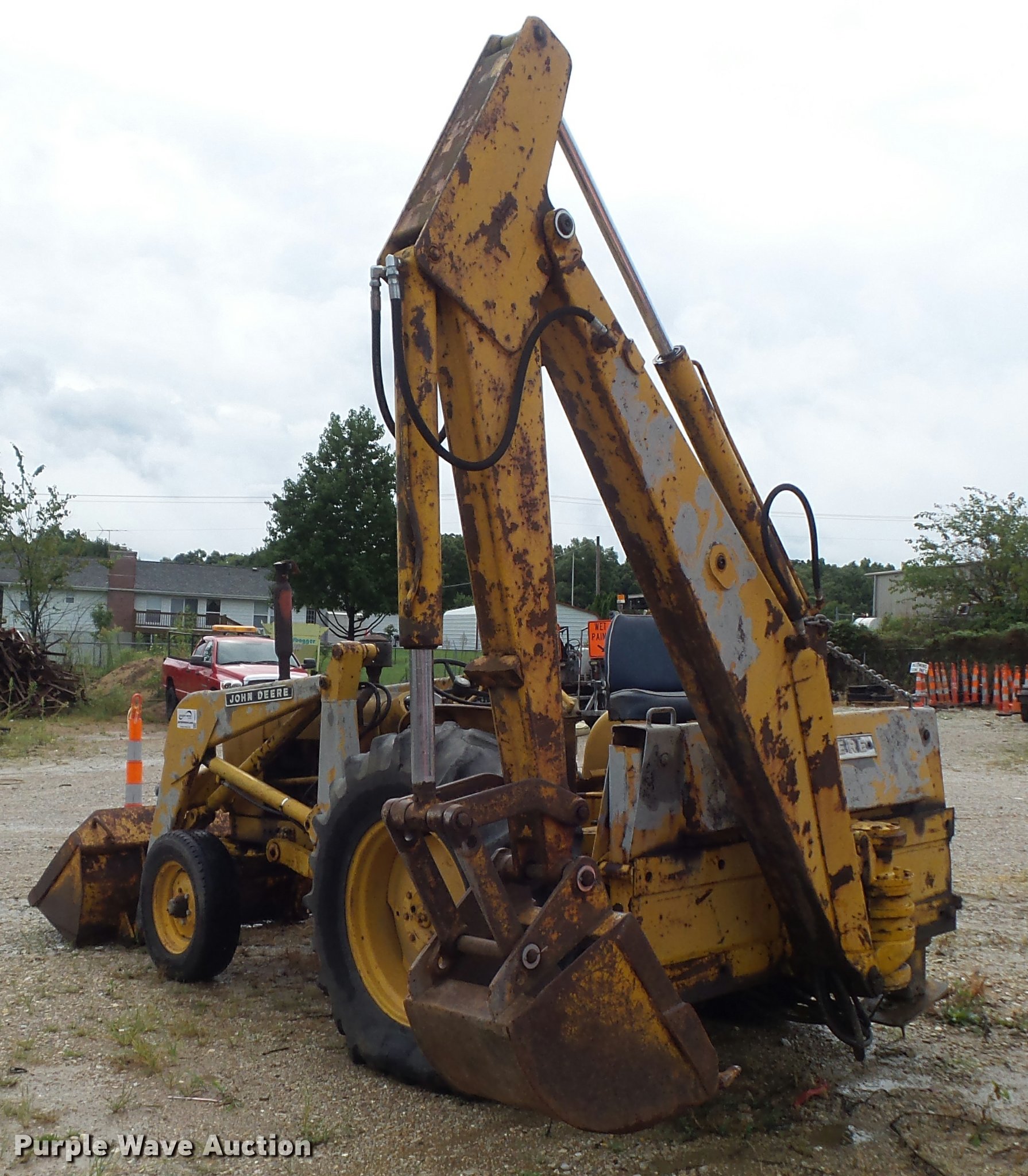 Purple Wave is selling a used Tractor Loader Backhoe in Missouri. This item is a John Deere 2010 industrial tractor backhoe with the following: John Deere HA165-G four cylinder gas engine, Manual transmission, 8F-3R gears, John Deere 720 loader, 65"W bucket, Joystick controls, John Deere 51 backhoe, 18"W four tooth bucket, Serial 51-394, 84" wheelbase, LT225/75R16 front tires, 16.9-28 rear tires, Dead battery