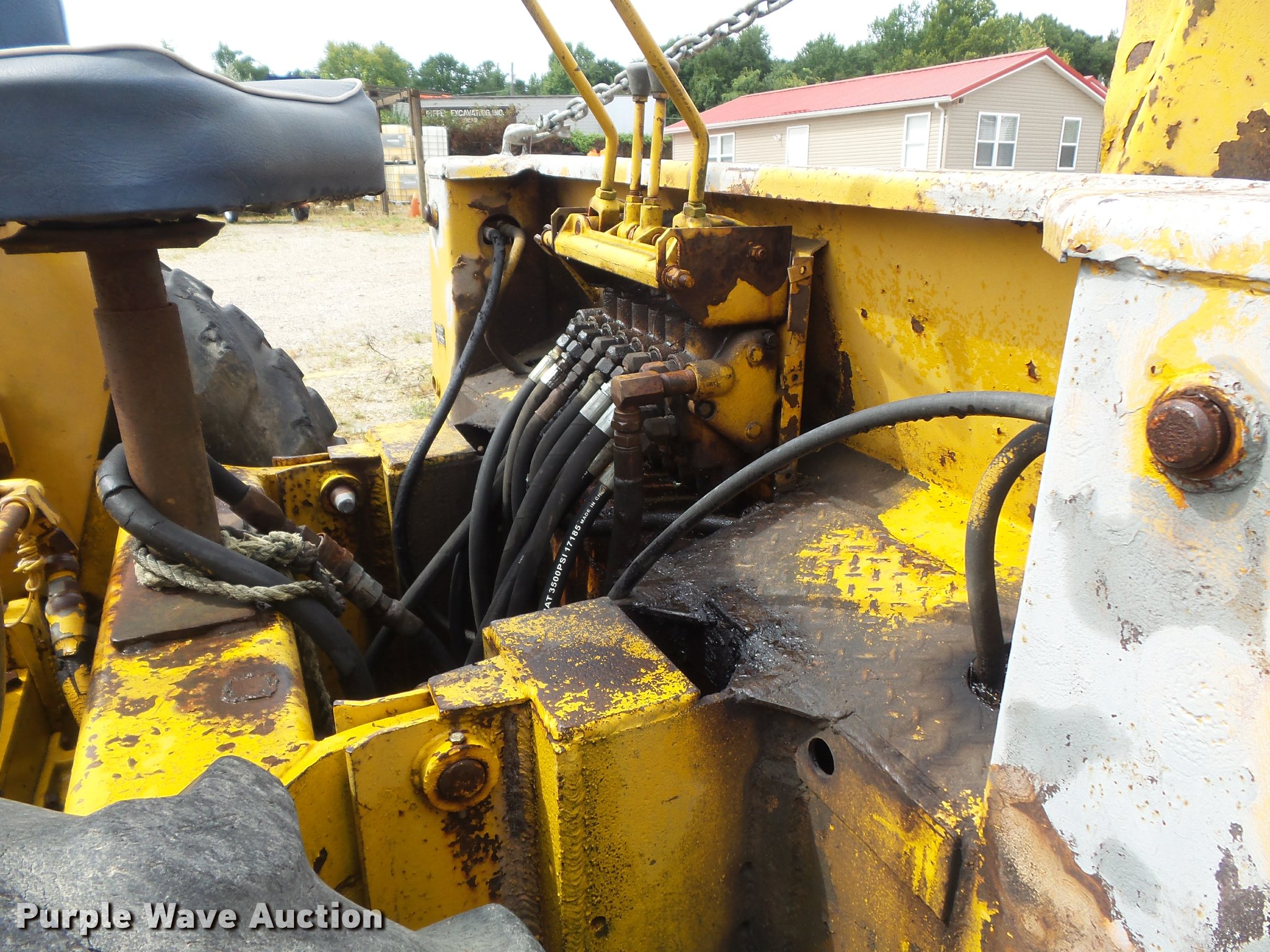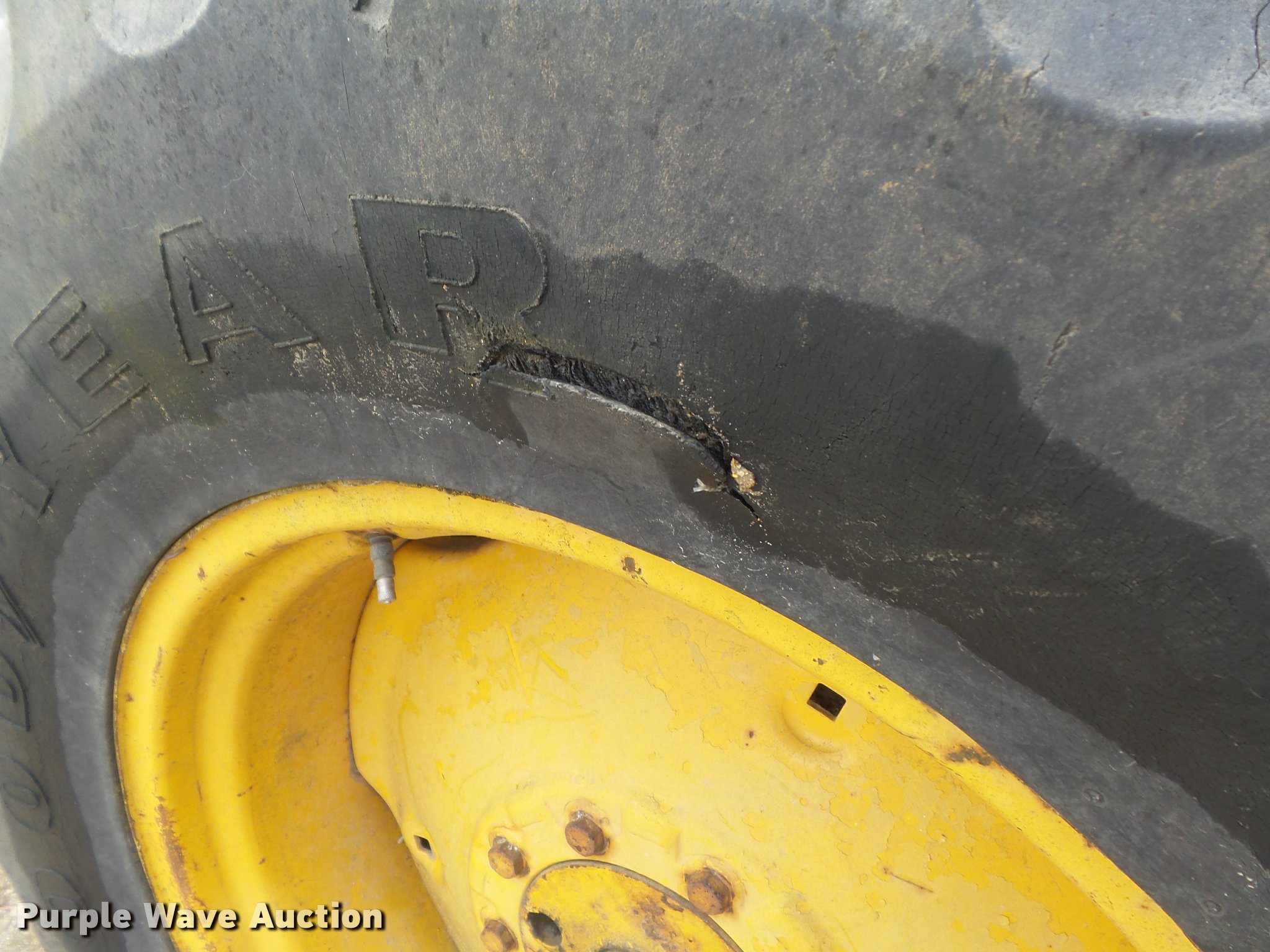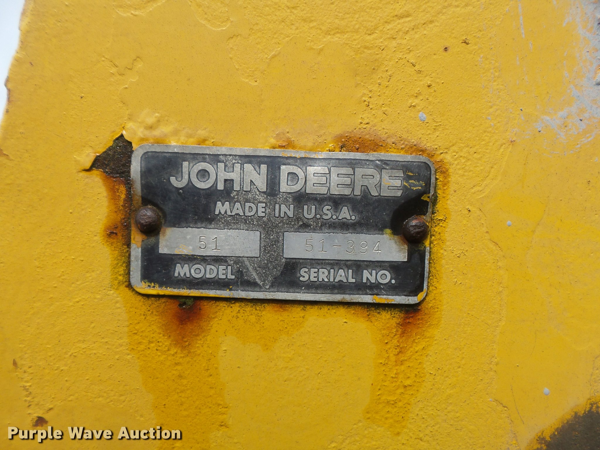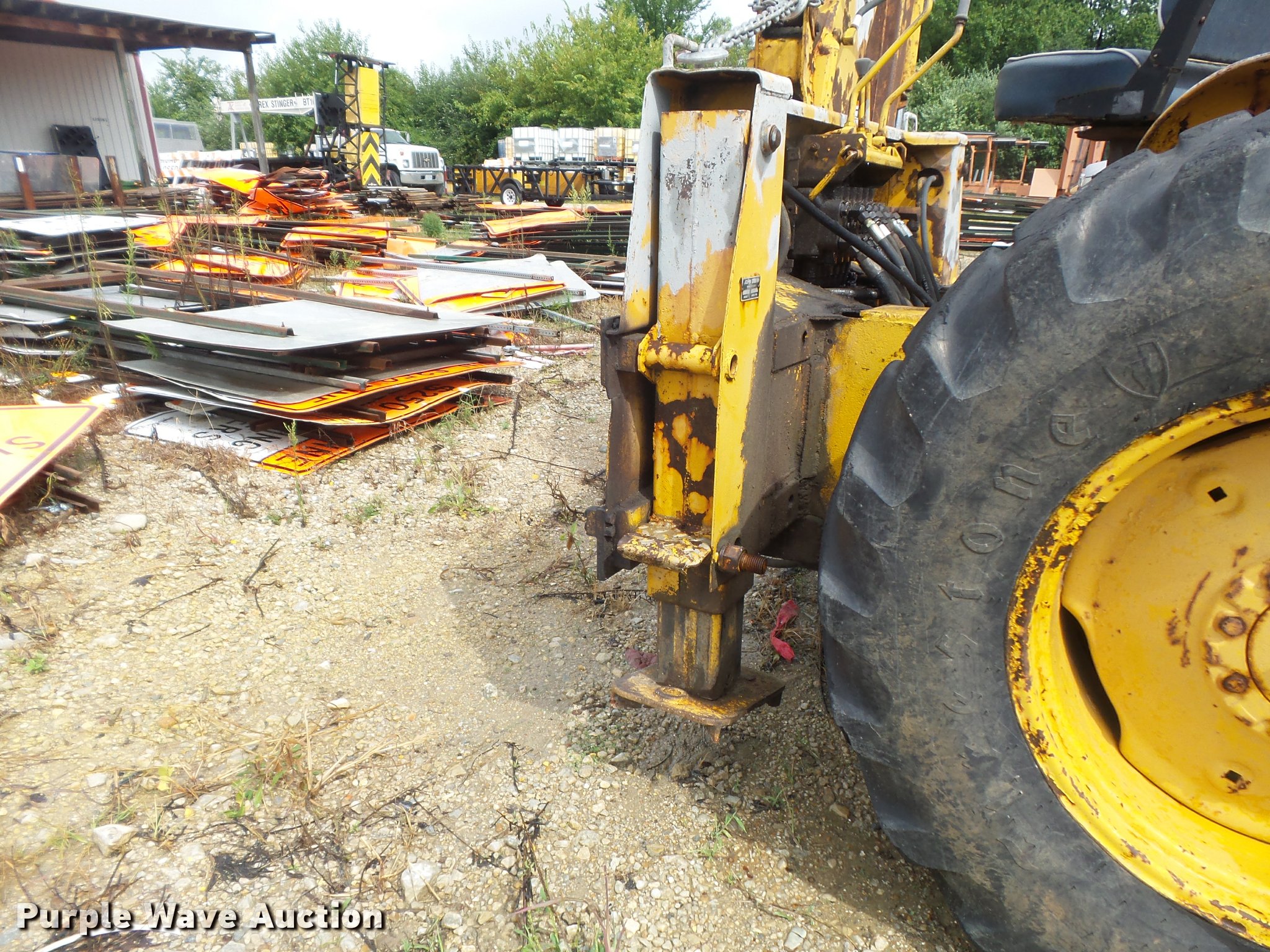Purple Wave is selling a used Tractor Loader Backhoe in Missouri. This item is a John Deere 2010 industrial tractor backhoe with the following: John Deere HA165-G four cylinder gas engine, Manual transmission, 8F-3R gears, John Deere 720 loader, 65"W bucket, Joystick controls, John Deere 51 backhoe, 18"W four tooth bucket, Serial 51-394, 84" wheelbase, LT225/75R16 front tires, 16.9-28 rear tires, Dead battery