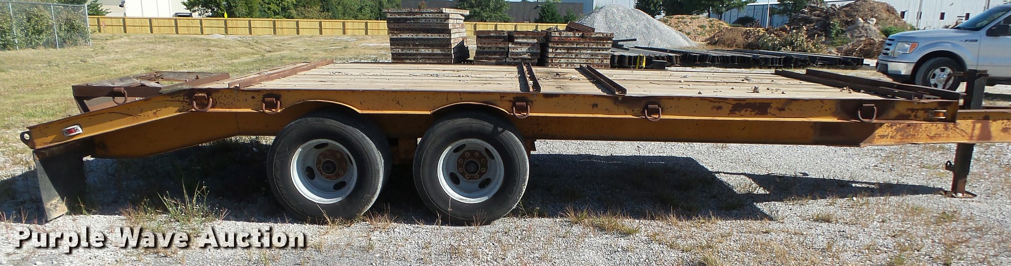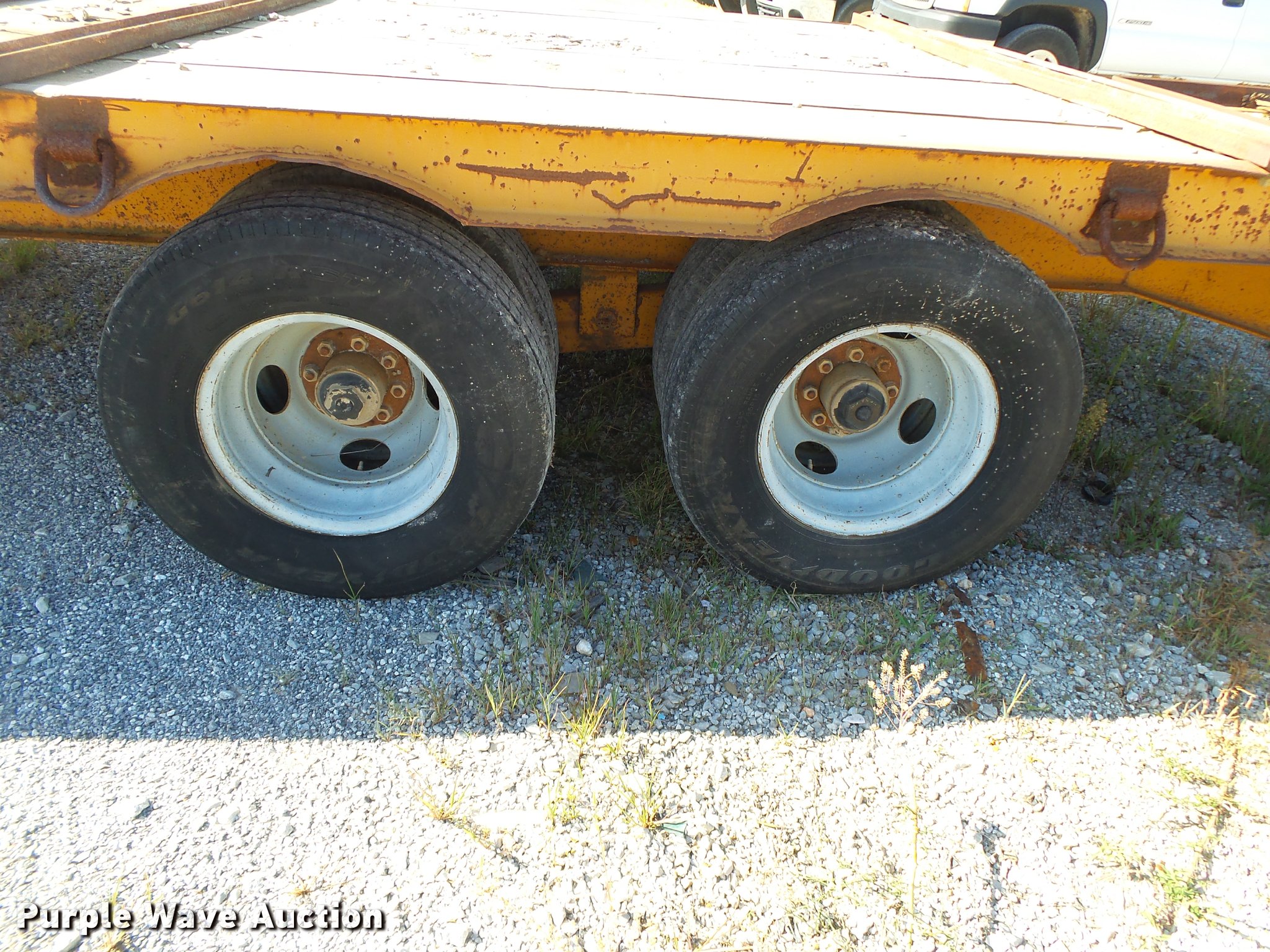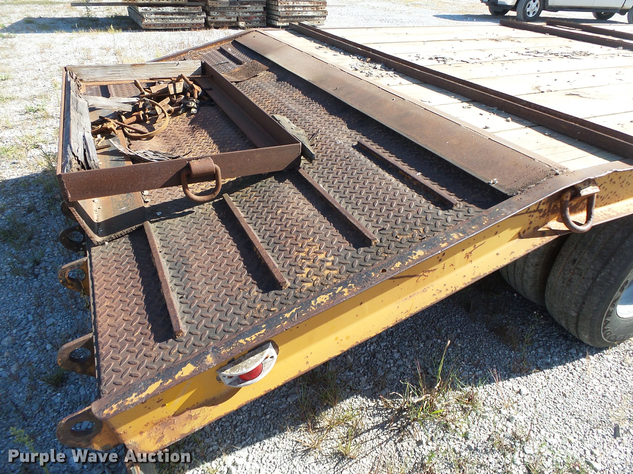 Purple Wave is selling a used Equip. Trailer in Arkansas. This item is a 1986 Holden ID02020 equipment trailer with the following: 26' overall length, 20'L x 96"W wood deck, 36" floor height, 46"L beavertail, D-ring tie downs, Single leg landing gear, Pintle hitch, Tandem axle, Spring suspension, Electric brakes, Steel wheels, LT235/85R16 tires, GVWR 20,000 lbs, Unit# BC5980